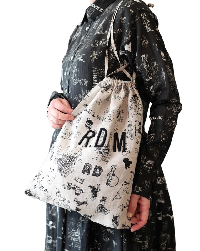 R&D.M.Co- no.7959a GRAFFITI DRAWSTRING BAG (L)Flax