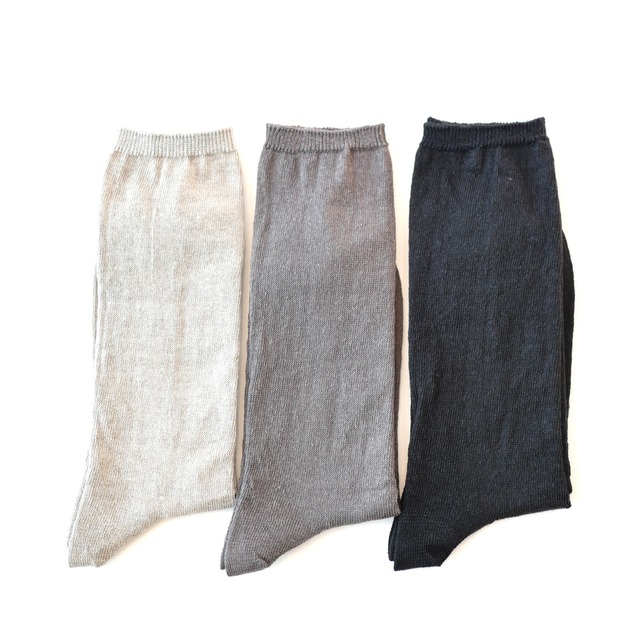毛羽が少なく光沢感のあるリネン素材です。リネン独自のシャリ感やハリコシを損なわないよう、丁寧に糸染めをしています。シンプルな形と清涼感のある履き心地です。 linen90% nylon5% polyurethane5% 22-24cm 近藤ニット 日本製 *こちらの商品は原則ポストに投函する配送方法の「ネコポス」でのお届けになります。配送日時の指定はできません。