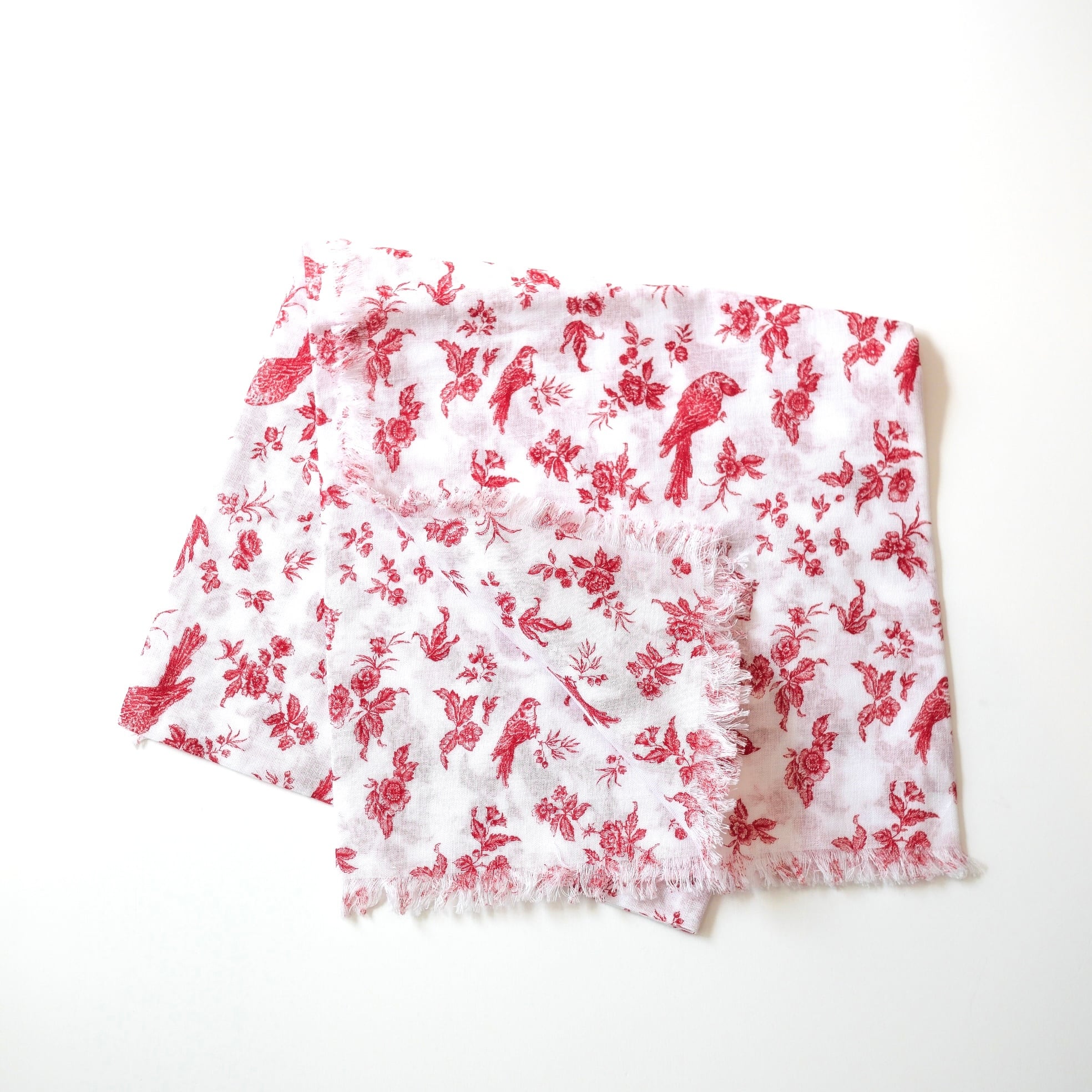 R&D.M.Co- no.6773b GARDEN GAUZE SHAWL White×Red