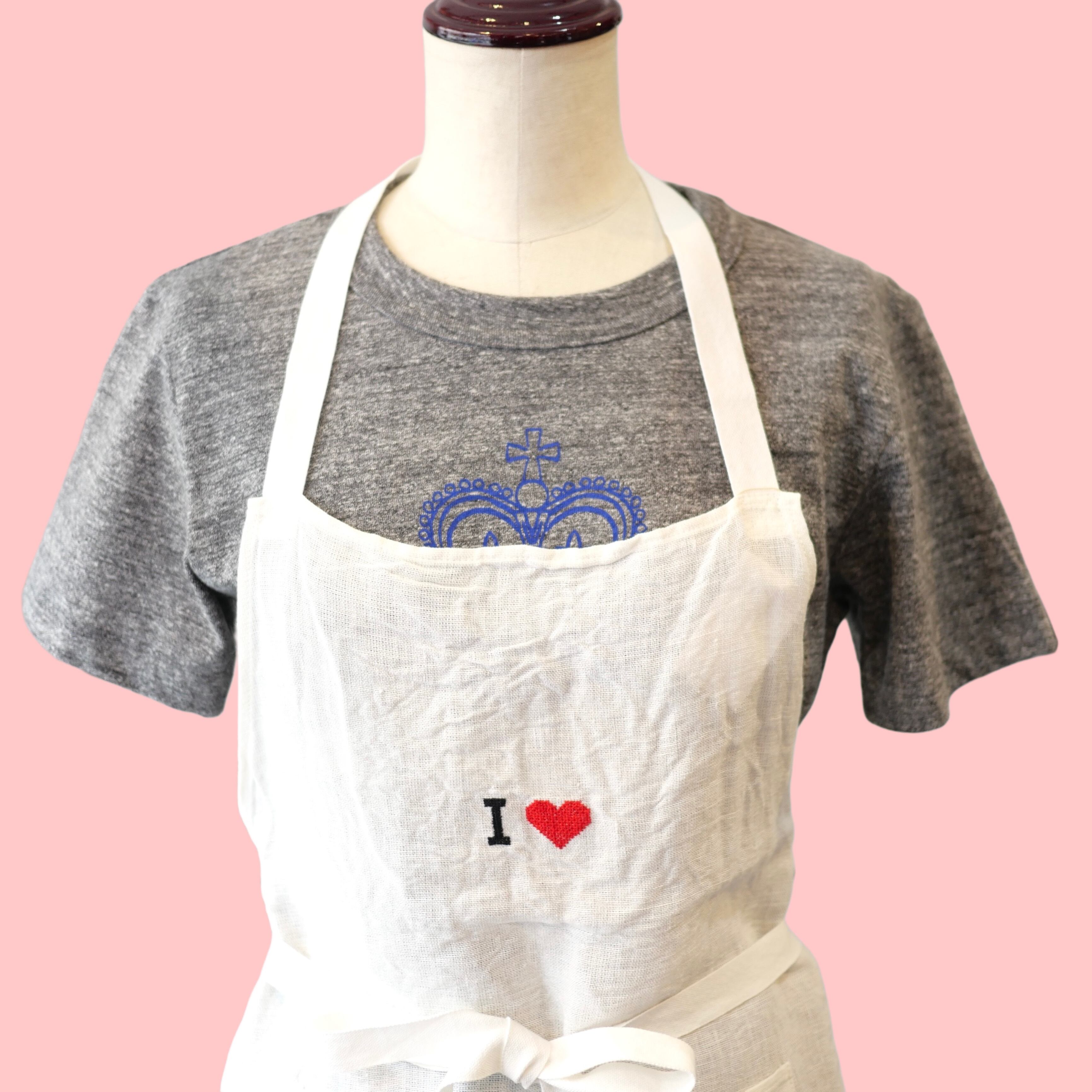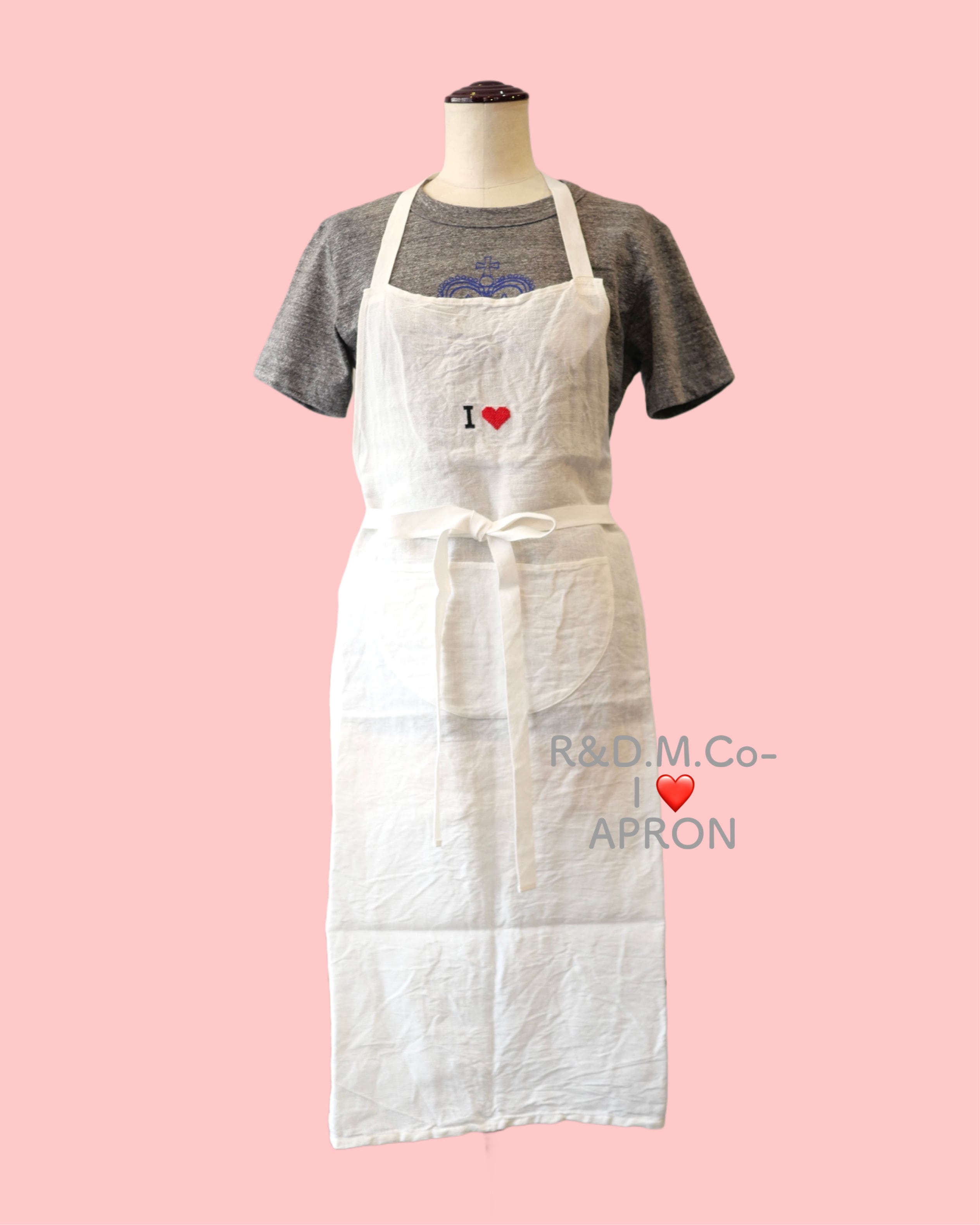 今季は「I❤️」の刺繍が可愛いリネンのエプロン。1日着用しても肩が凝らない軽いリネンのエプロンは根強い人気の、ざらっとしたリネンの感触が心地よいシリーズです。