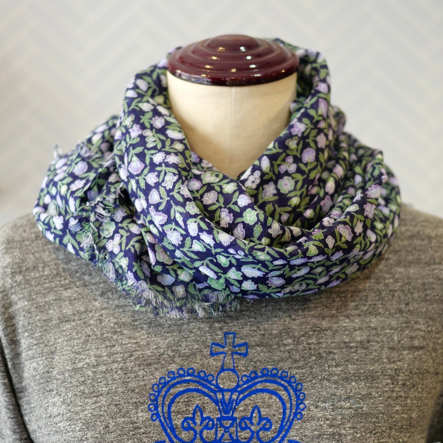 R&D.M.Co- no.5839c COTTAGE FLOWER GAUZE SHAWL Summer (Navy)