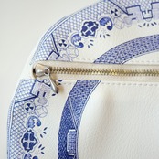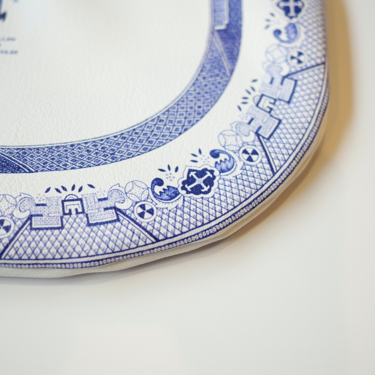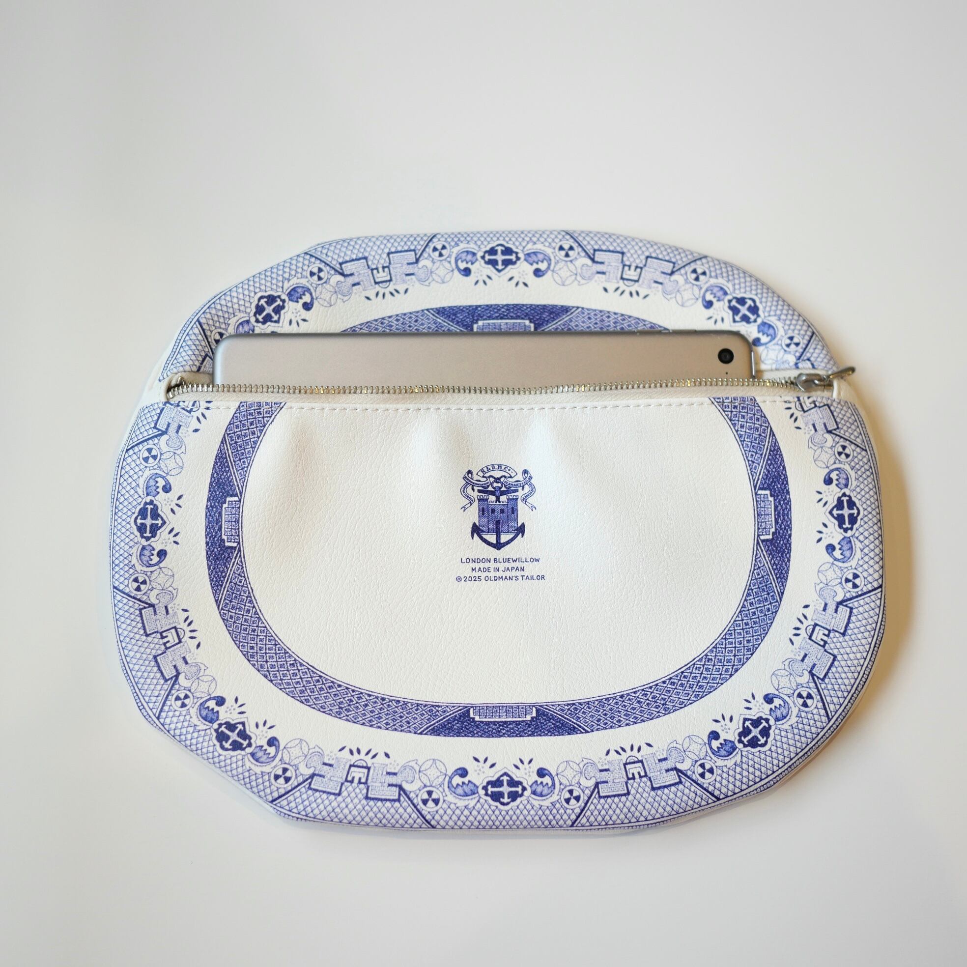 ブルーウイロー柄のポーチシリーズにプレート型が登場です。裏側のファスナーから物を入れられるので表側は本当にミールプレートのよう。タブレットminiサイズががすっぽり入るサイズ感です。厚みが無いのでバックから覗く感じも可愛いです。
