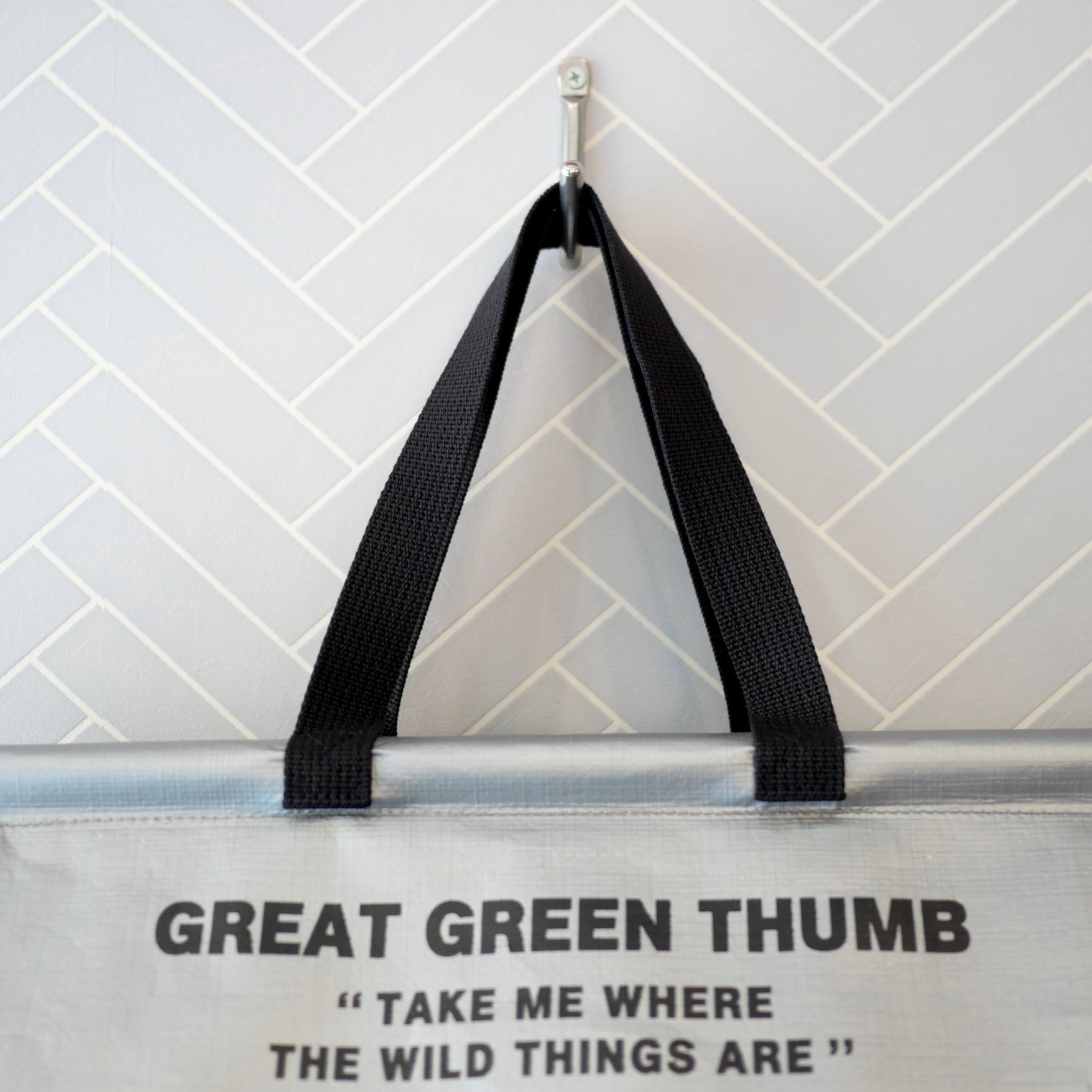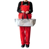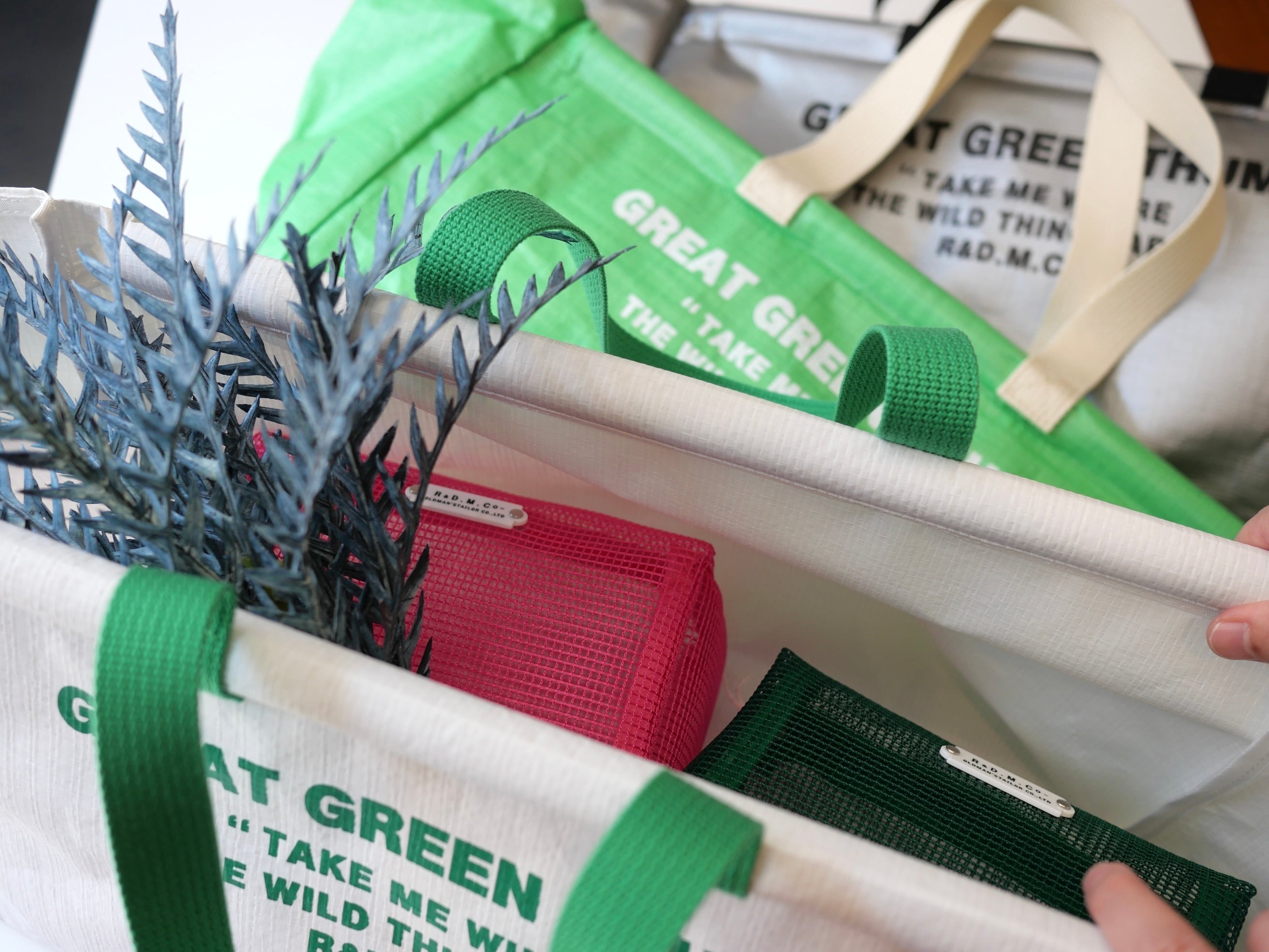 R&D.M.Co- フラワーマーケットバッグ。ポリウレタン素材で開け口が広いバッグです。花束がそのまま入りそうな横幅があり、容量もたっぷり。濡れても拭き取ることができる丈夫な素材です。持ち手と共に芯が縫い付けてあるので、形崩れなくお持ちいただけます。お買い物用バッグに、スポーツ用にもおすすめです。