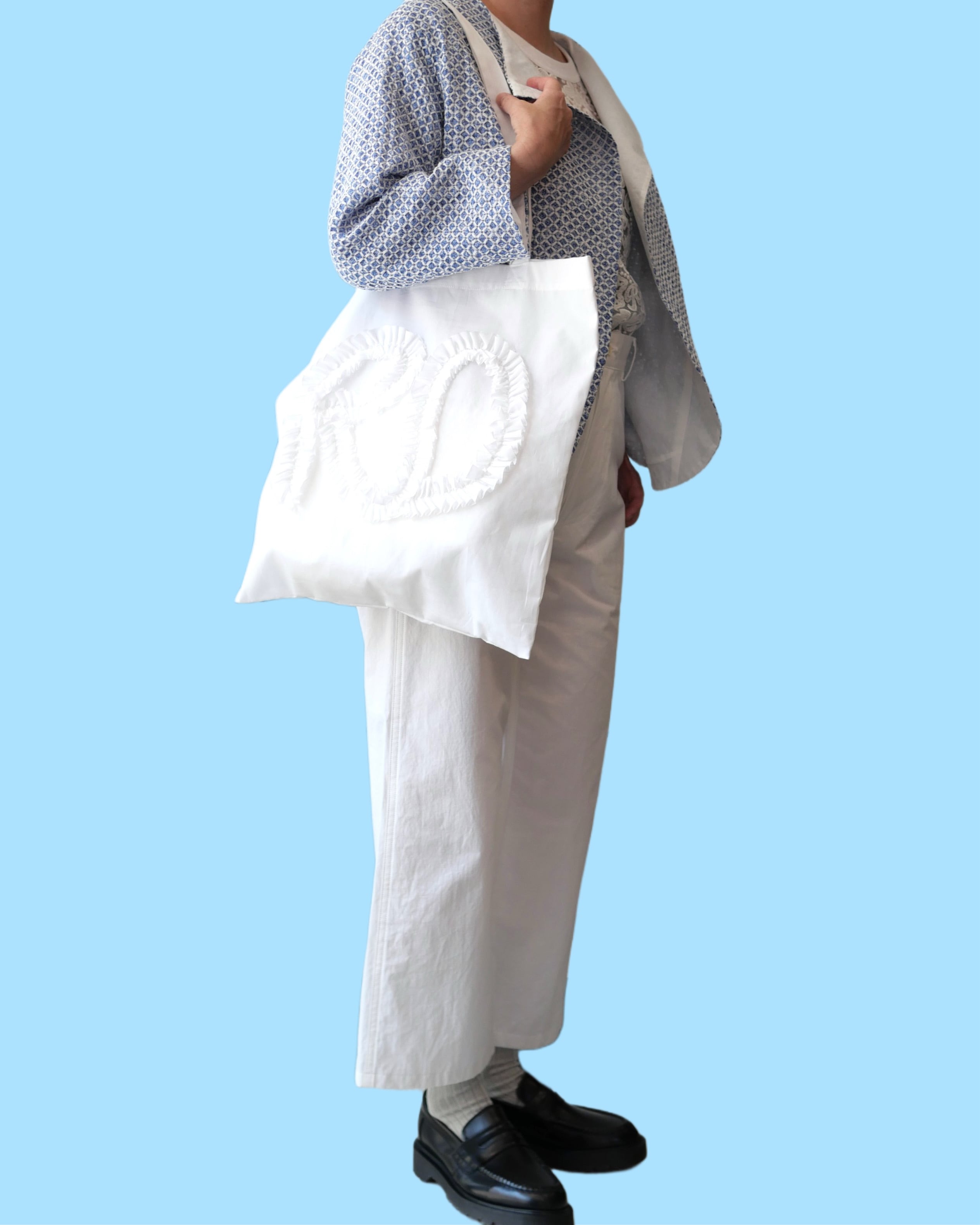 R&D.M.Co- no.7625a RD FRILL EMBROIDERY TOTE BAG White