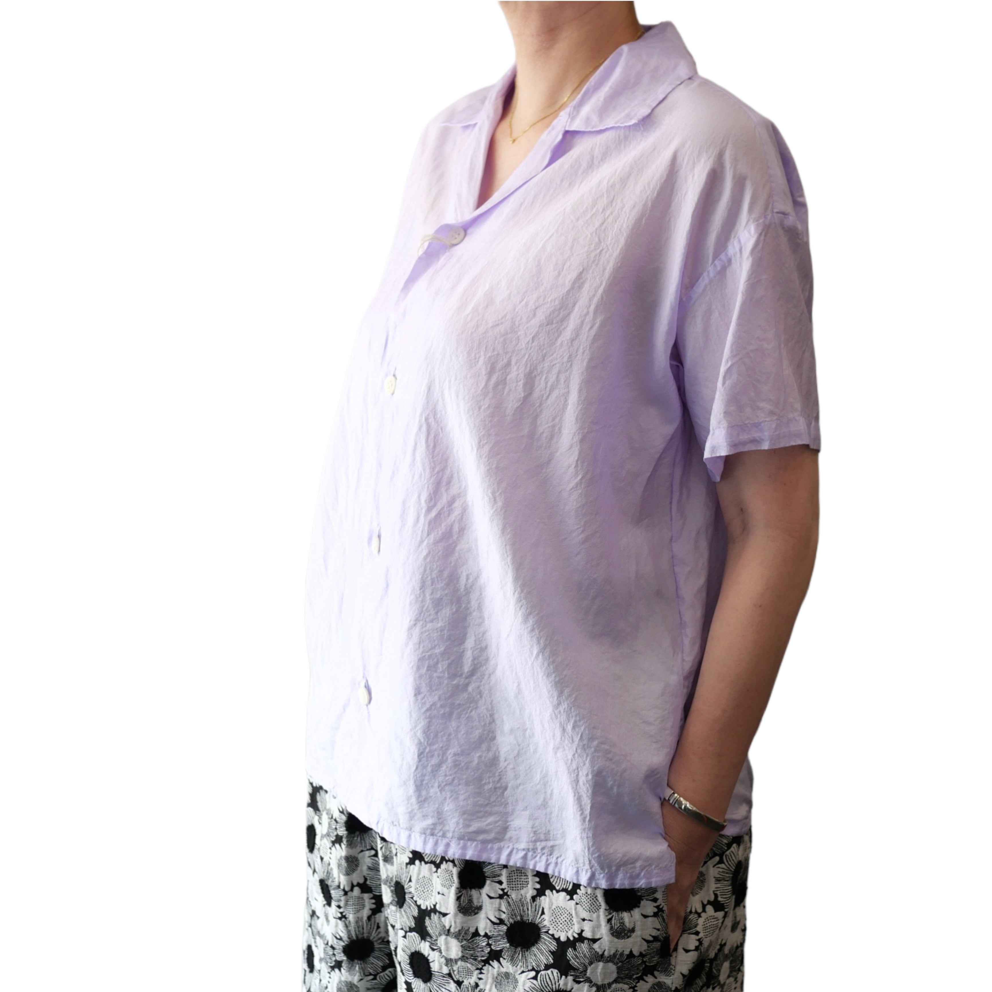 R&D.M.Co- no.6786c SILK OPEN COLLAR SHIRT Lilac