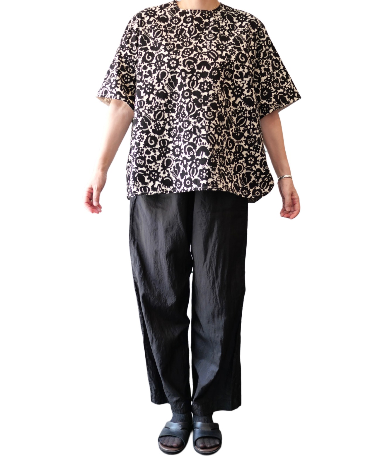R&D.M.Co- no.7159 MONO TRICK PRINT PULLOVER SHIRT Black
