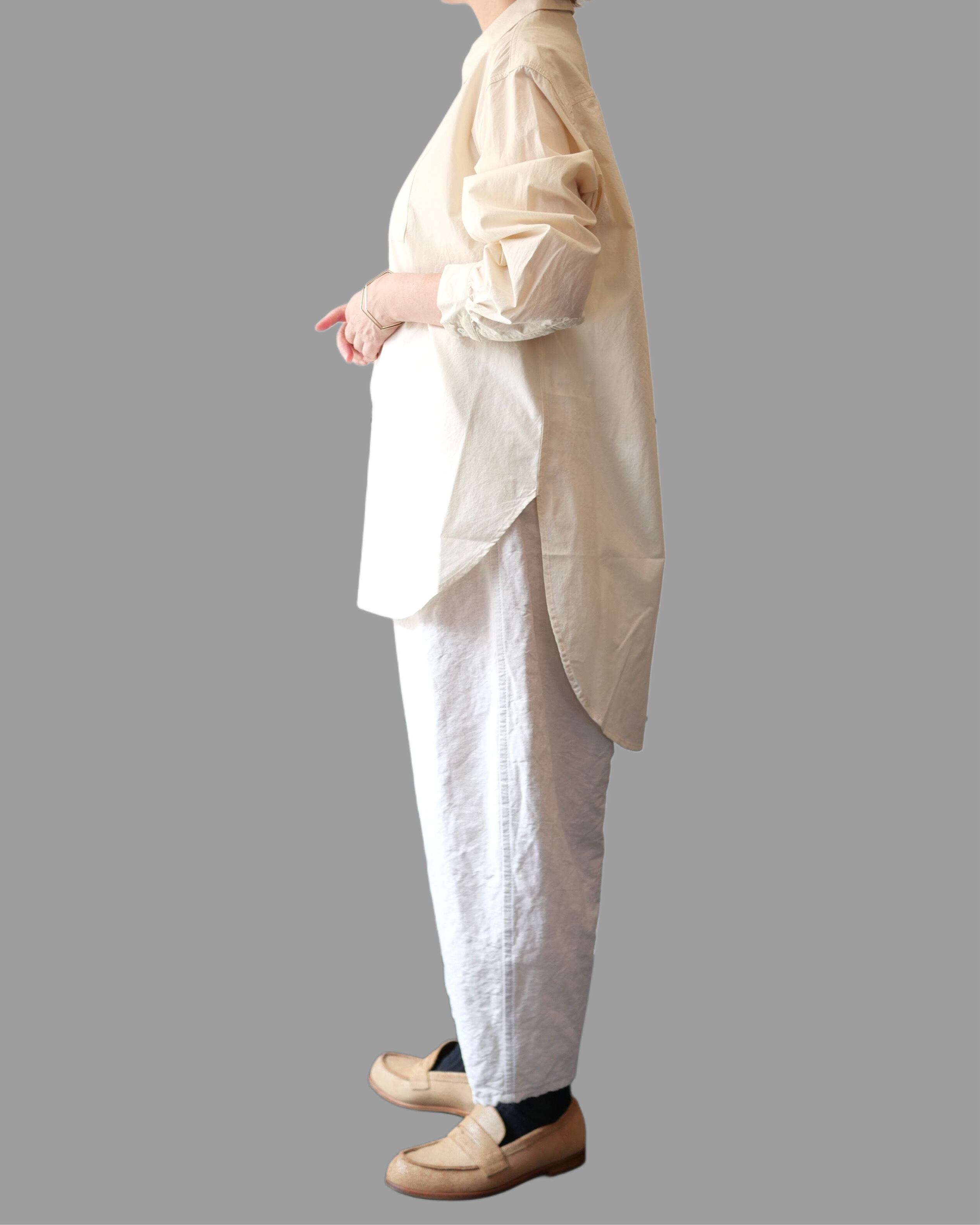 オーガニックコットンとコットンヘンプ混紡糸の高密度素材を使用したスワローテイルシャツです。