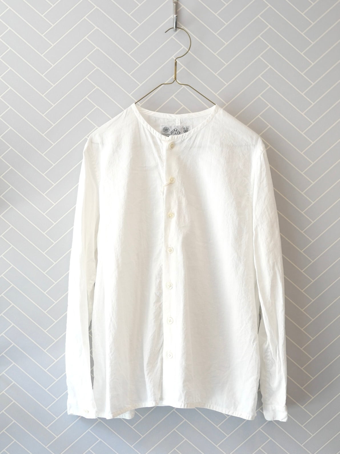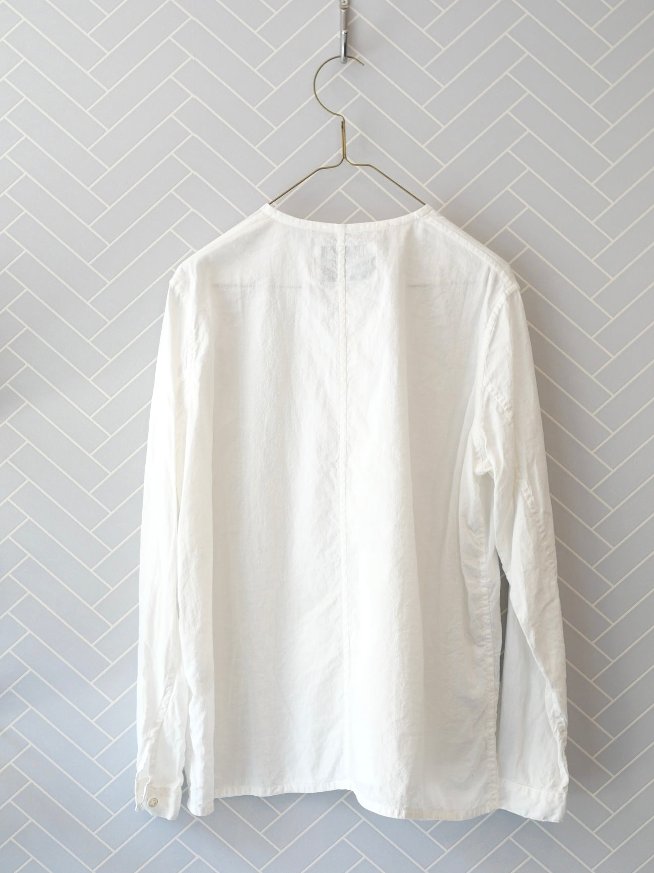 R&D.M.Co- 麻とコットンを使ったノーカラーシャツジャケット。