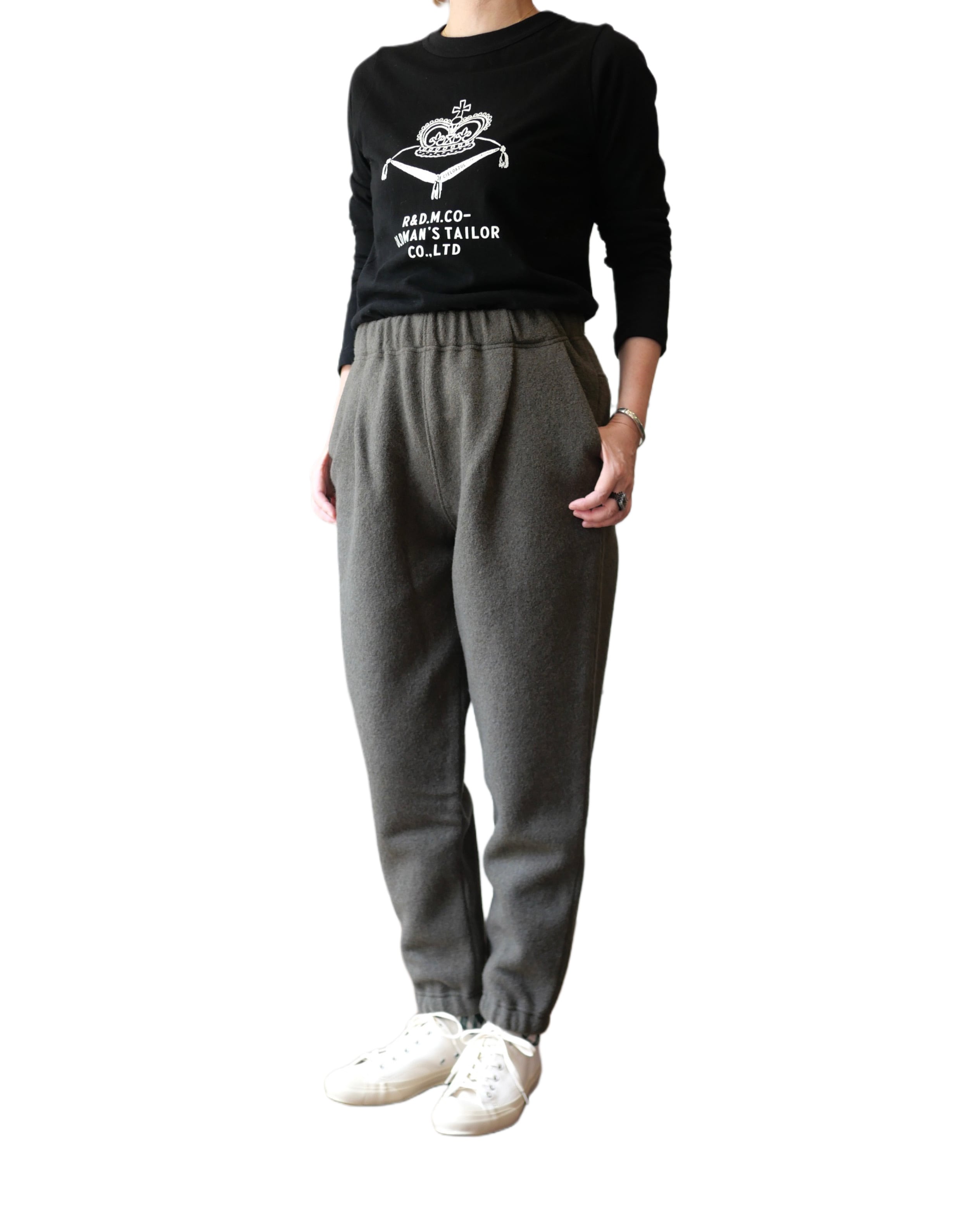 evam eva 冬の定番アイテム プレスウールシリーズからジョガータイプのウールパンツが新入荷しました。しっかりと厚みがある暖かい圧縮ウールを使用しています。