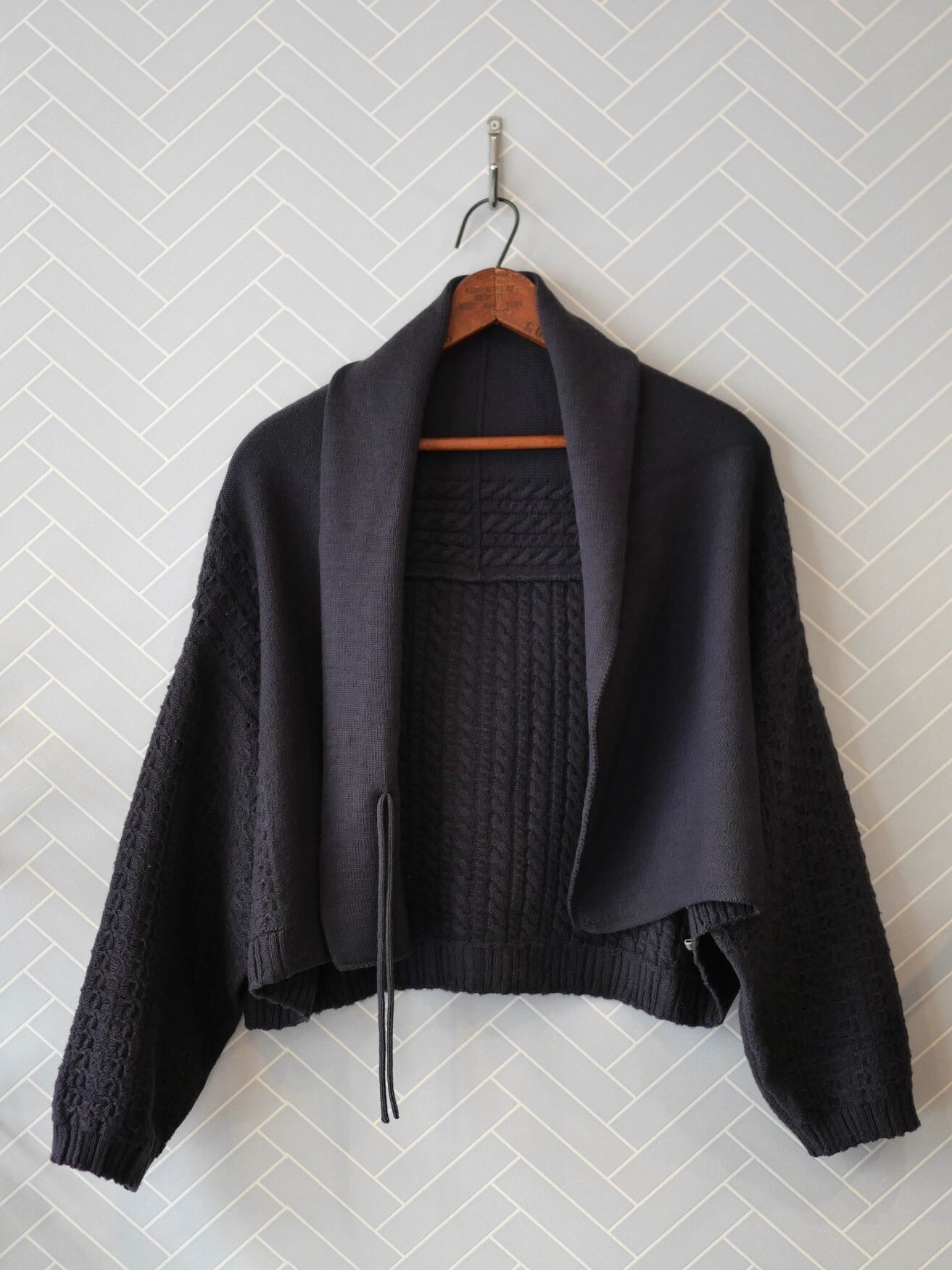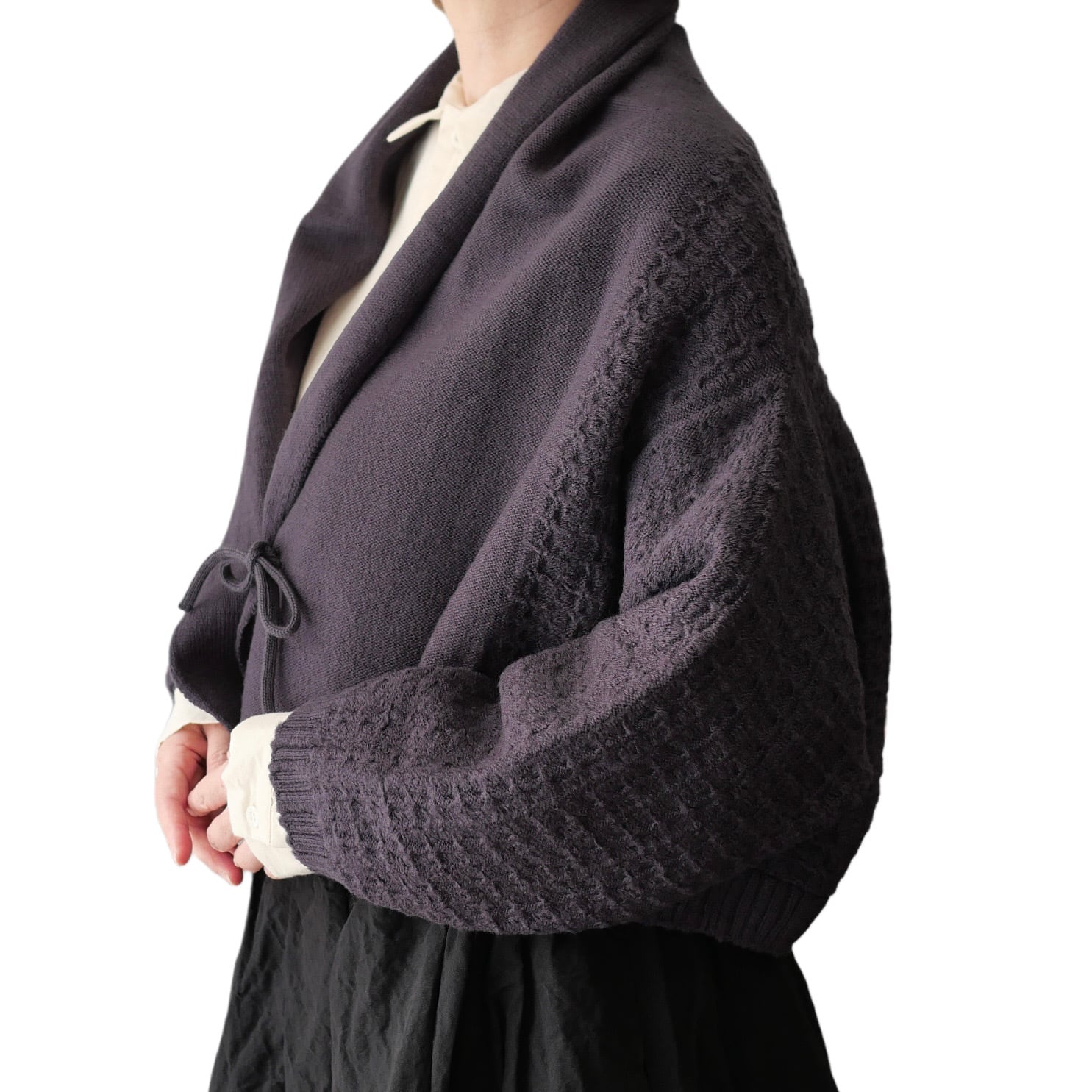 上下を変えて2wayでお使いいただけるボレロ風カーディガン。肩周りの編み目が変わりますので、それぞれ印象を変えてコーディネートをお楽しみいただけます。