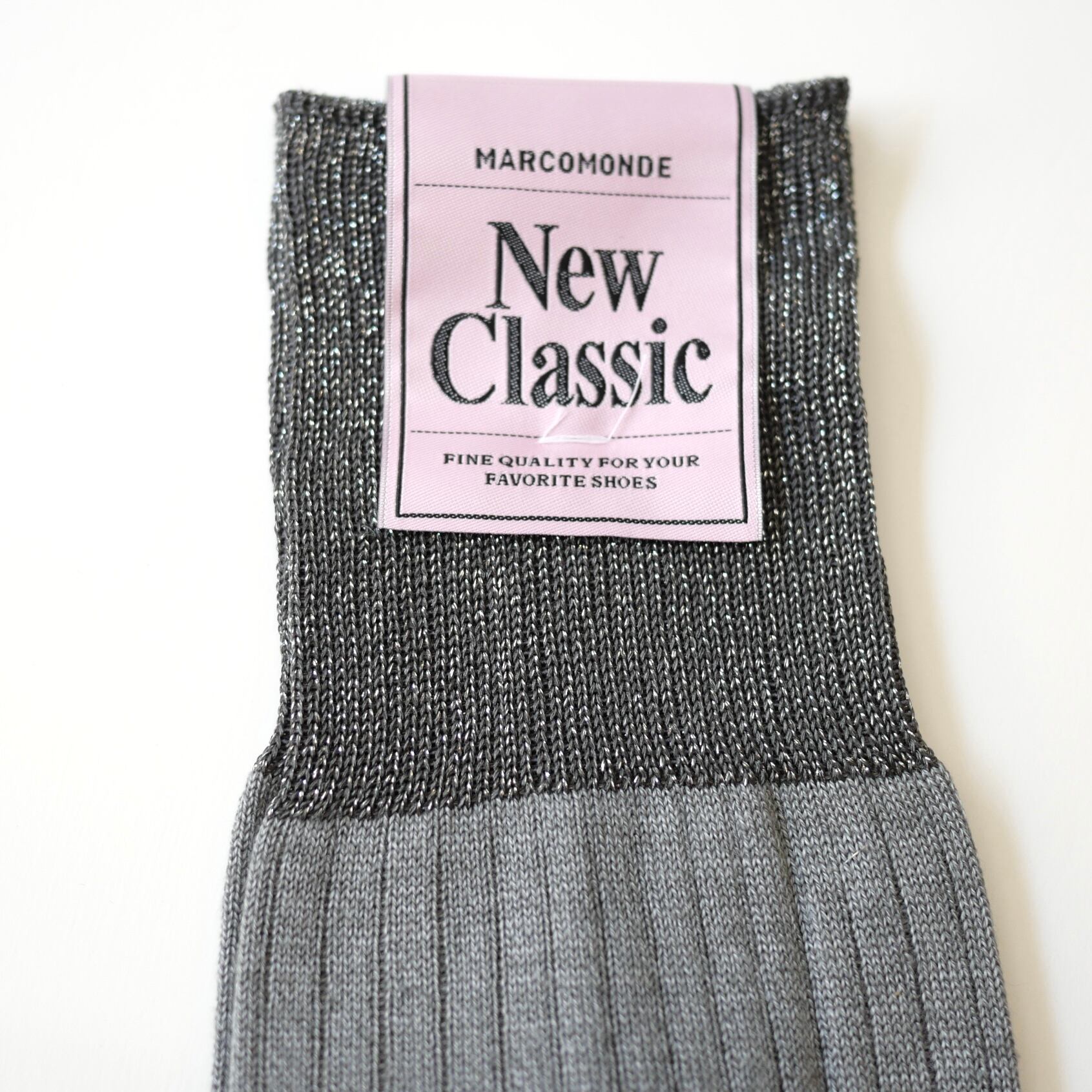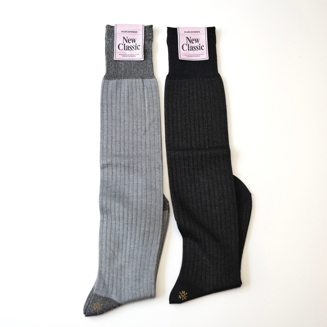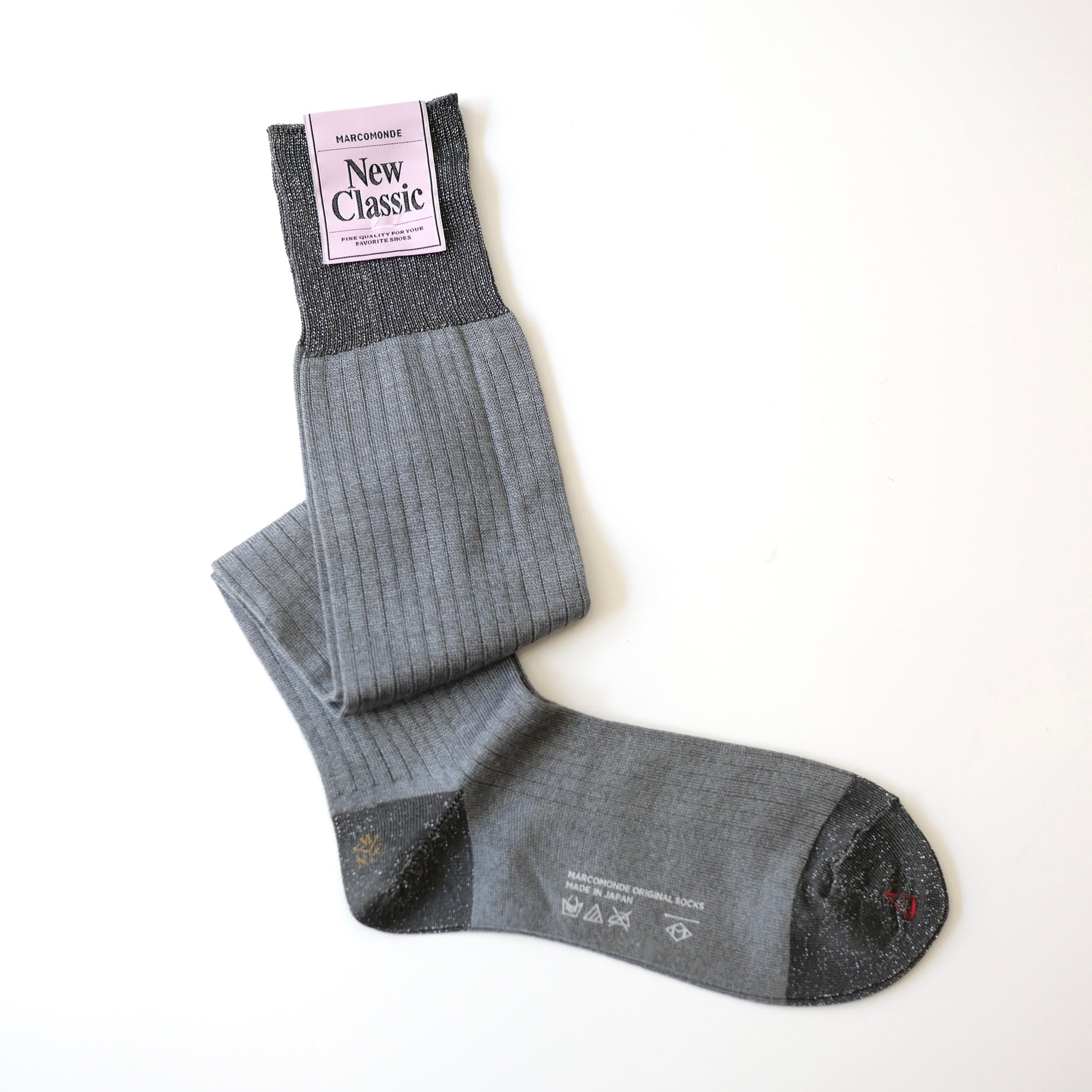 ラメがポイントのウール混のハイソックス。レッグウォーマーと重ねたり、ロングブーツと合わせてラメをちらっと覗かせるのも素敵です。