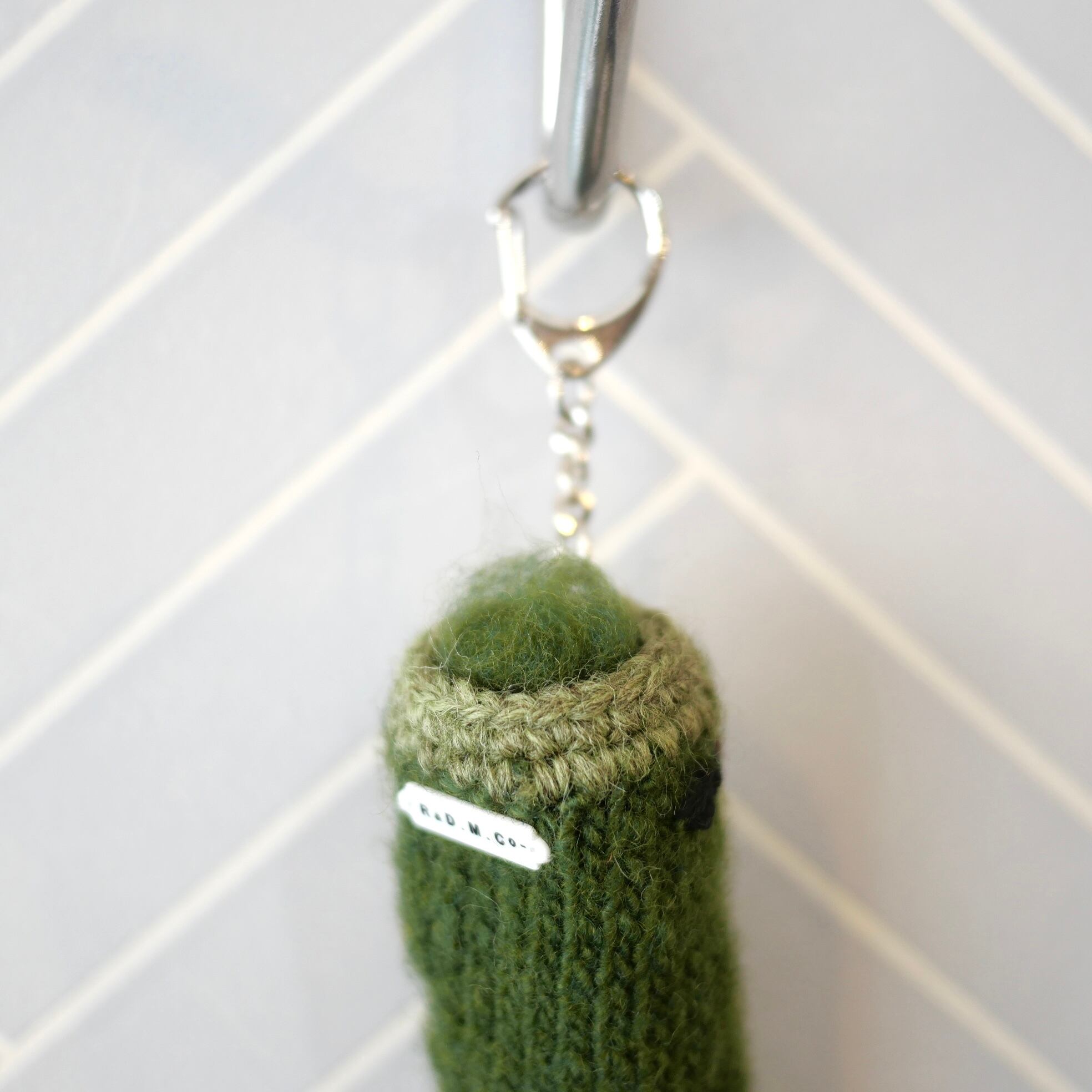 ニットの手編みで作られたグリーンブーツ。温かみを感じられるR&D.M.Co-らしい可愛いデザインです。キーホルダーだけではなく、バックなどにつけても可愛いです。