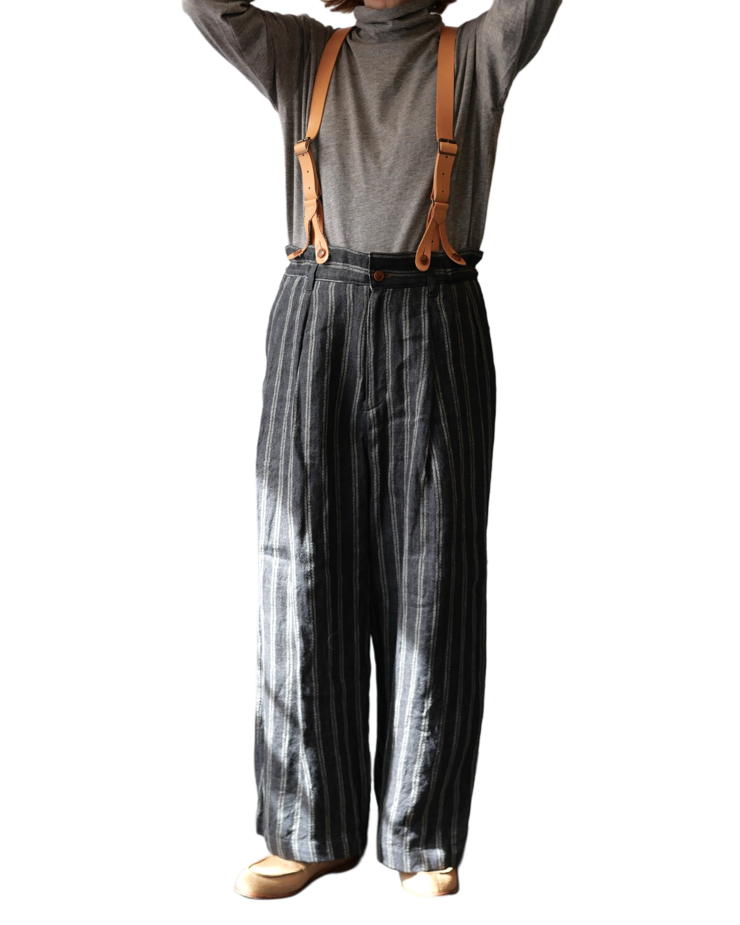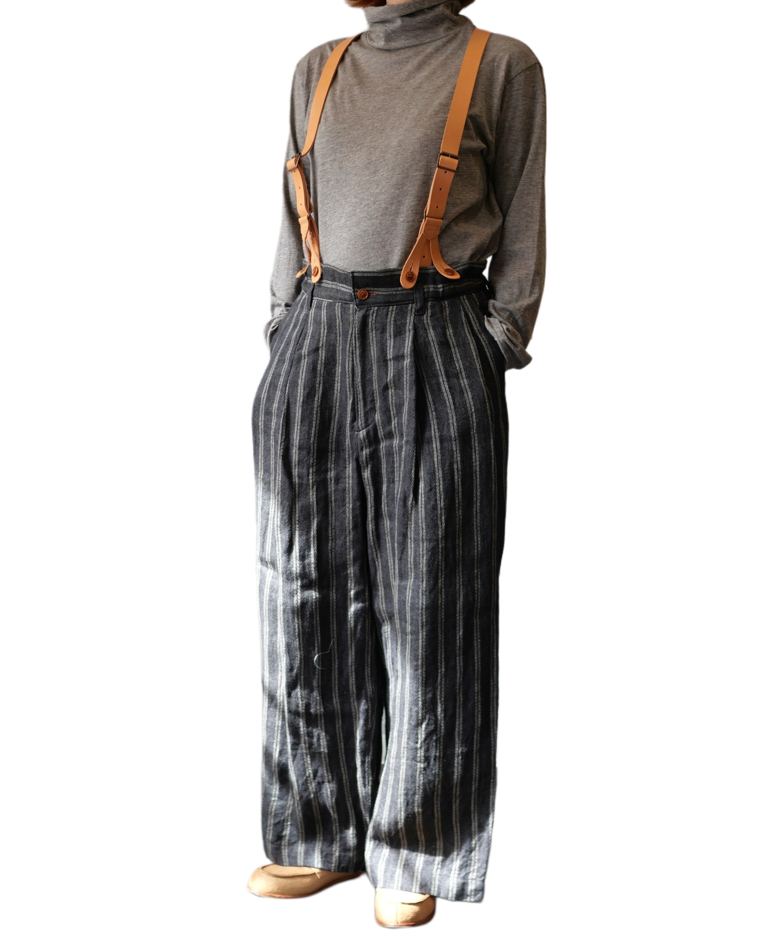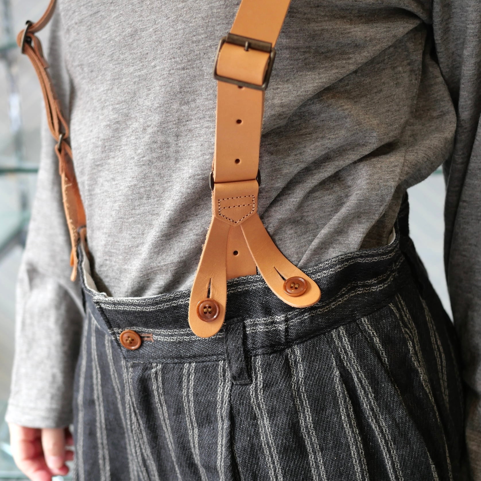 サスペンダー(別売り)をつけたコーディネートもおすすめです。
