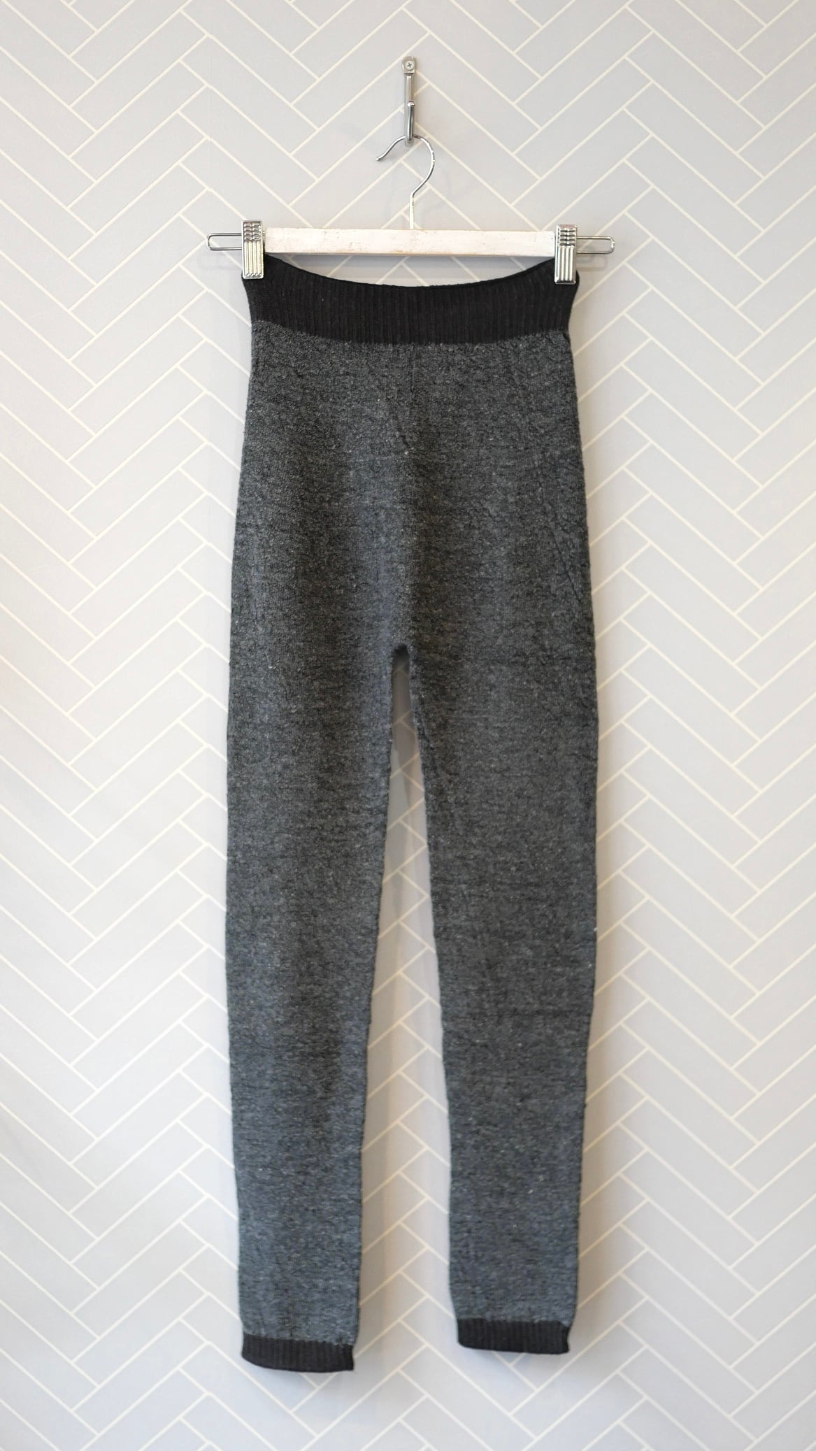 適度なフィット感のあるニットレギンス。ホールガーメントの編み機を使用いるため、縫製はぎがありません。そのためよく伸びて締めつけ感のない履き心地です。シーズンレスでお使いいただける素材ですが、しっかりとした厚みがありますので秋冬の着こなしに最適です。
