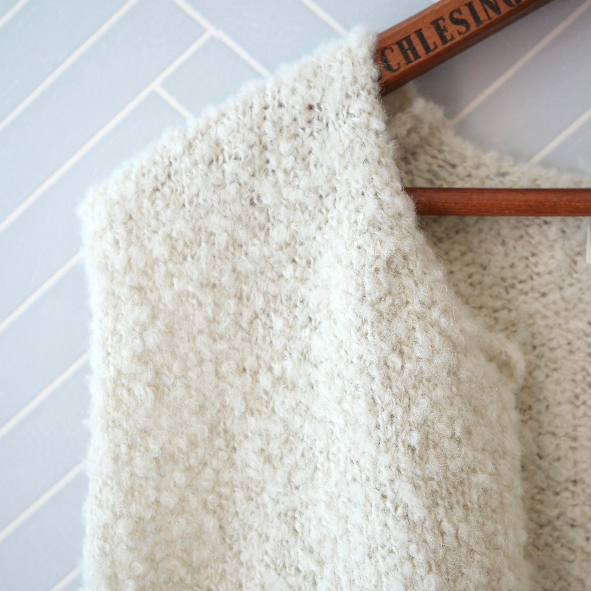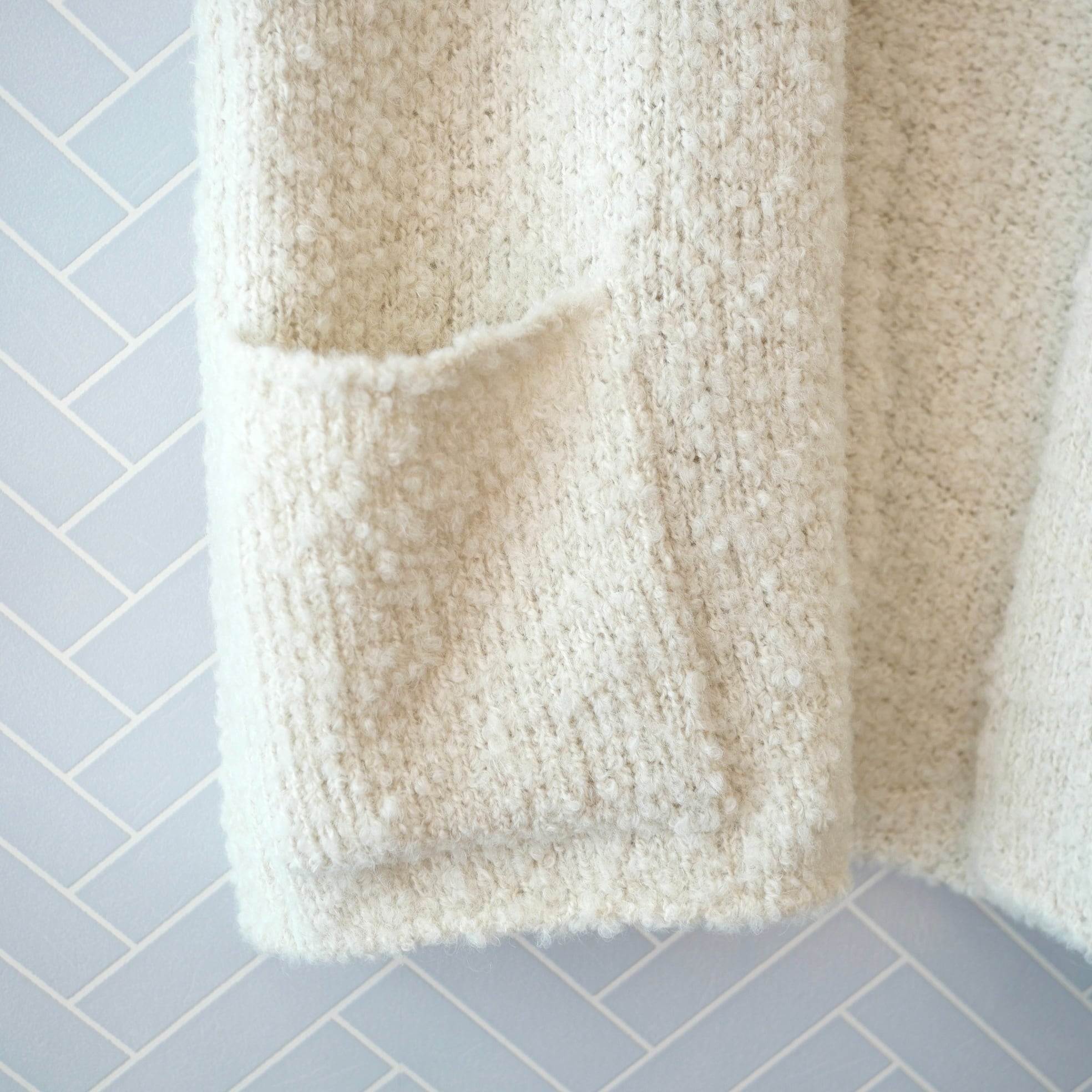 アルパカとウールを組み合わせたもこもことボリュームのある素材。その素材感はシンプルな装いにも華やかさを添え、コーディネートのアクセントとして冬の装いを彩るアイテムです。