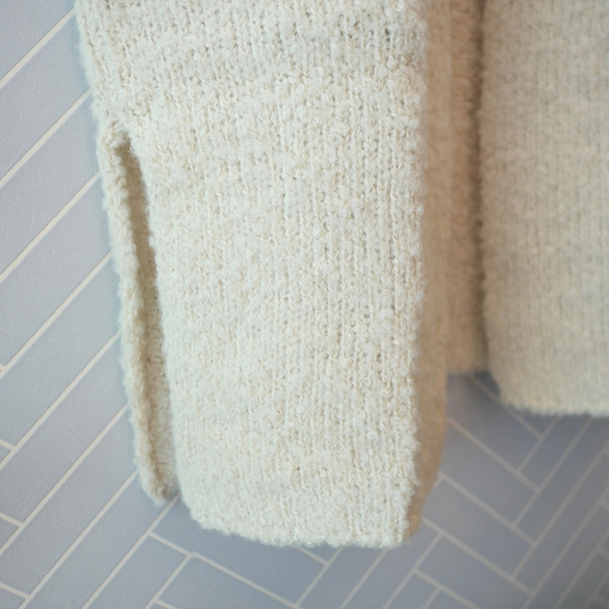 アルパカとウールを組み合わせたもこもことボリュームのある素材。その素材感はシンプルな装いにも華やかさを添え、コーディネートのアクセントとして冬の装いを彩るアイテムです。