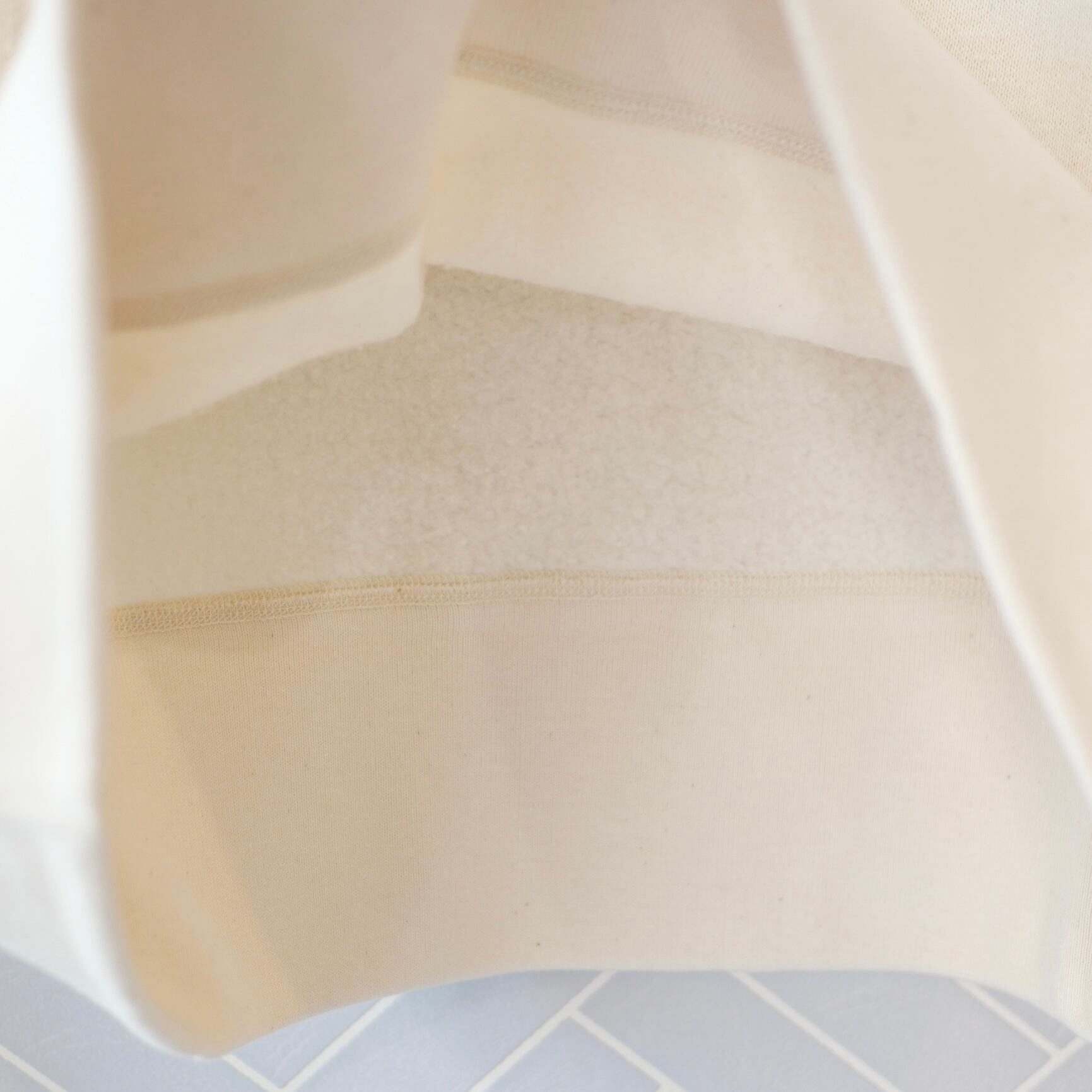 R&D.M.Co- 柔らかな肌触りの裏起毛スウェット。厚過ぎず、ふんわりとした着心地。肩周り、アームが大きすぎず、すっきりとしたシルエットです。春のコートやジャケット、サロペットのインナーにも使いやすいシンプルなデザインです。