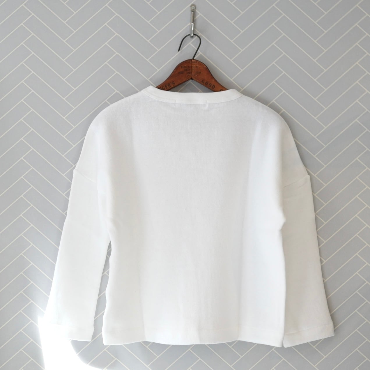 R&D.M.Co- シンプルなロゴのスウェット。優しい肌触りの裏起毛素材です。人気のドロップショルダースウェットは、肩幅、身幅がゆったりめ、アーム周りも動きやすい形です。