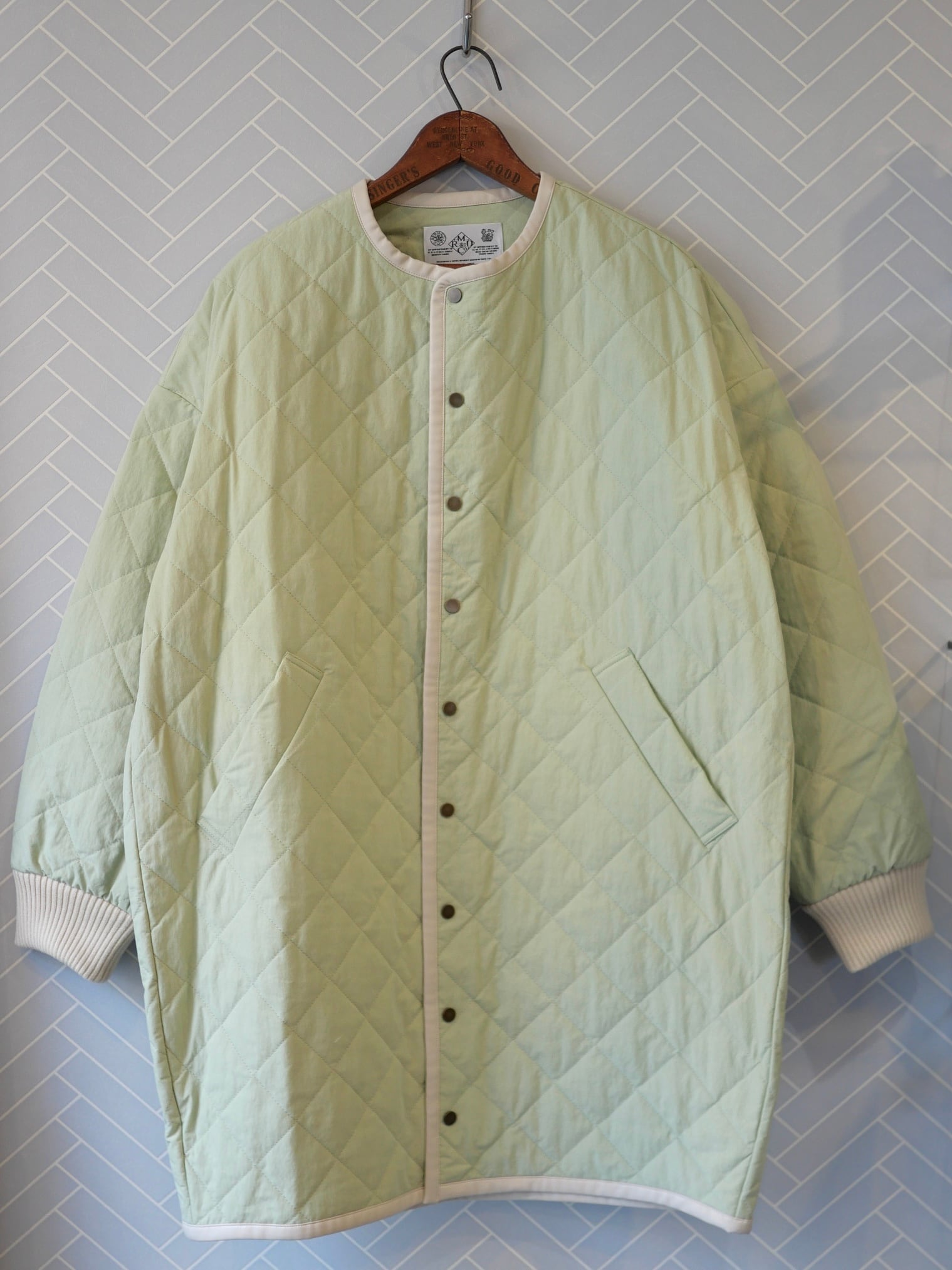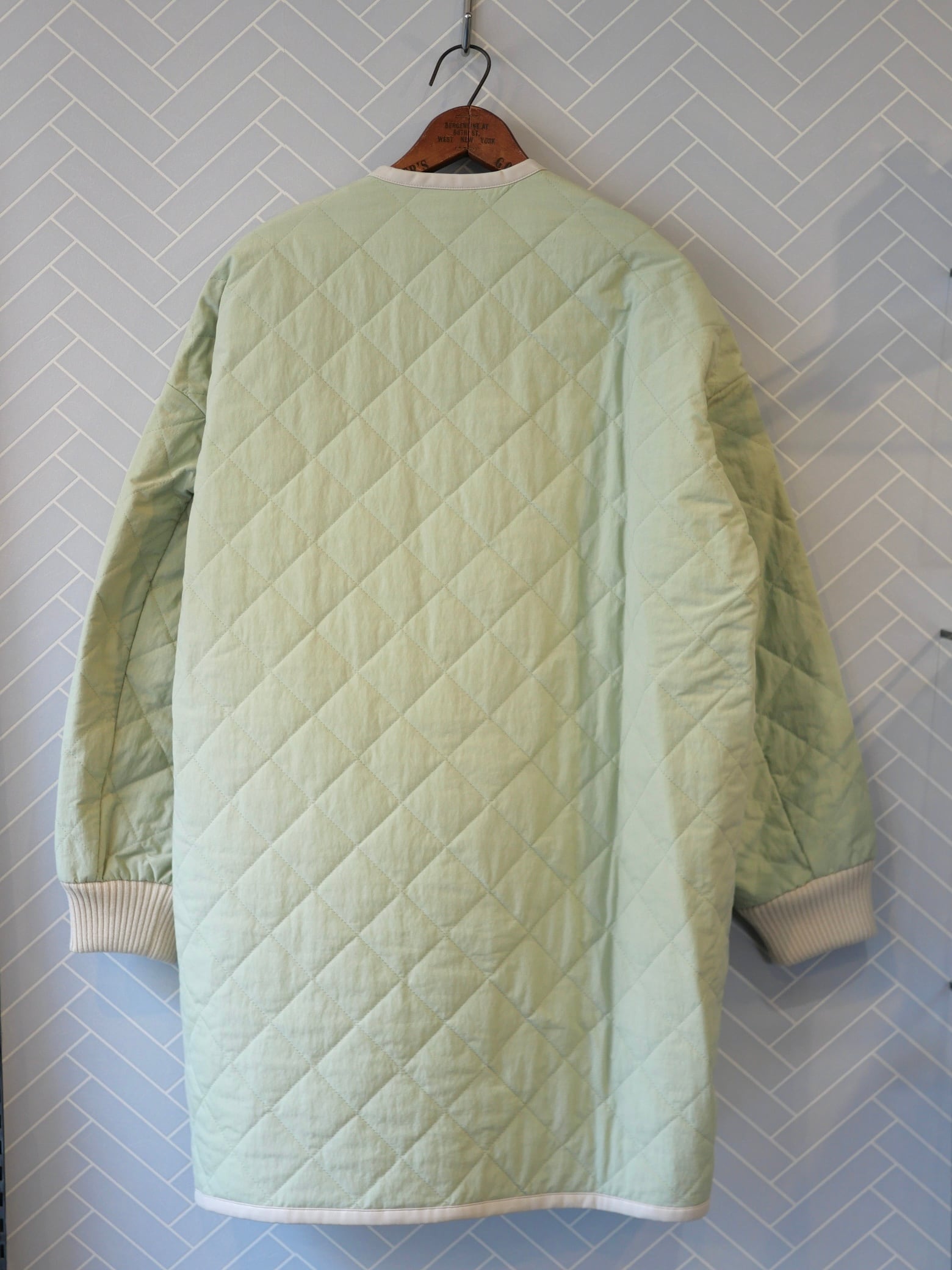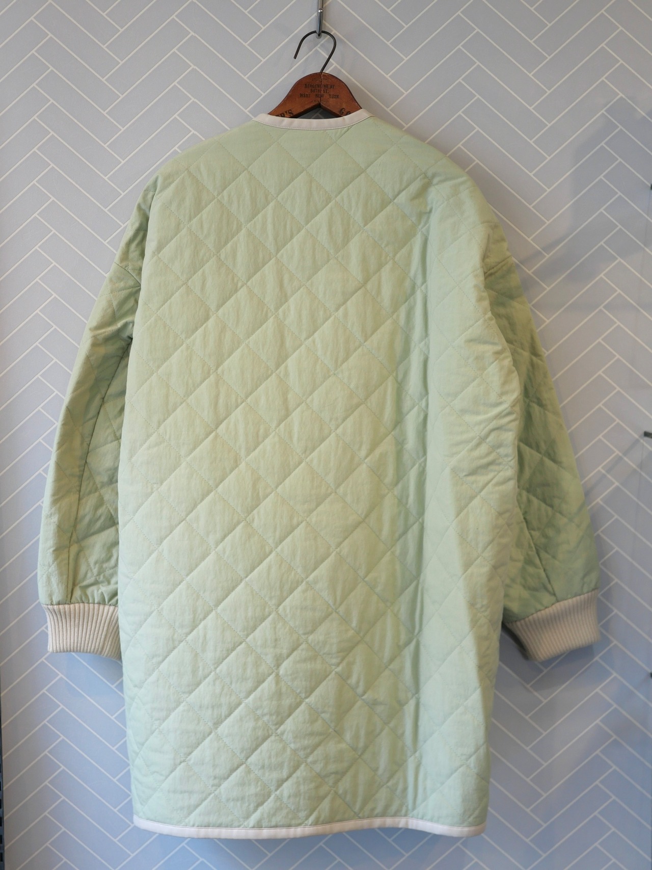 R&D.M.Co-定番のキルティングコート。人気のハーフサイズはゆったりシルエットで可愛いデザインです。ボトムもパンツ、スカートどちらも合わせやすく色んな方に着ていただけるコートです。軽くて肩も凝らない着心地が人気の理由。毎日来ていただける暑過ぎない暖かさも好ましい現代のアウターです。
