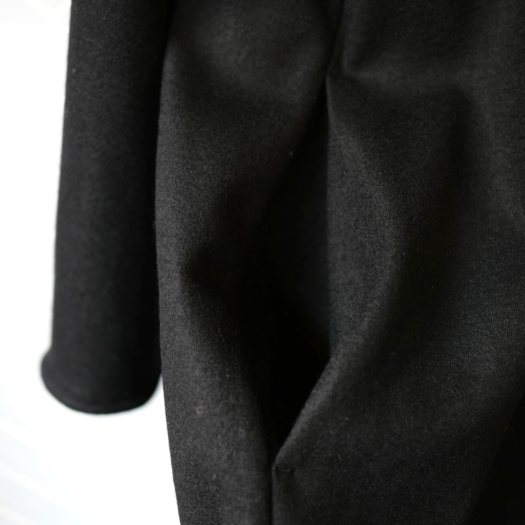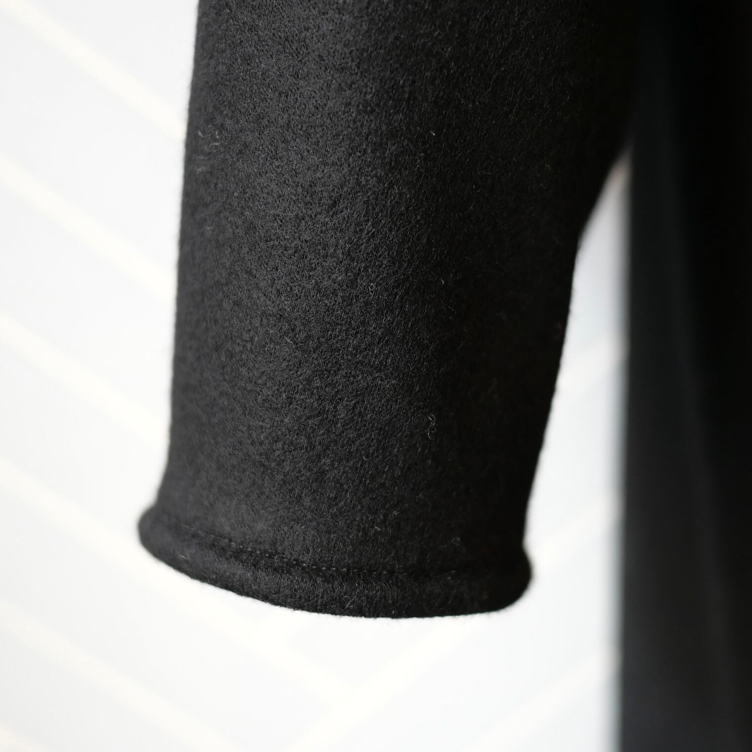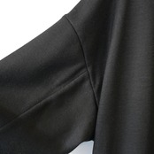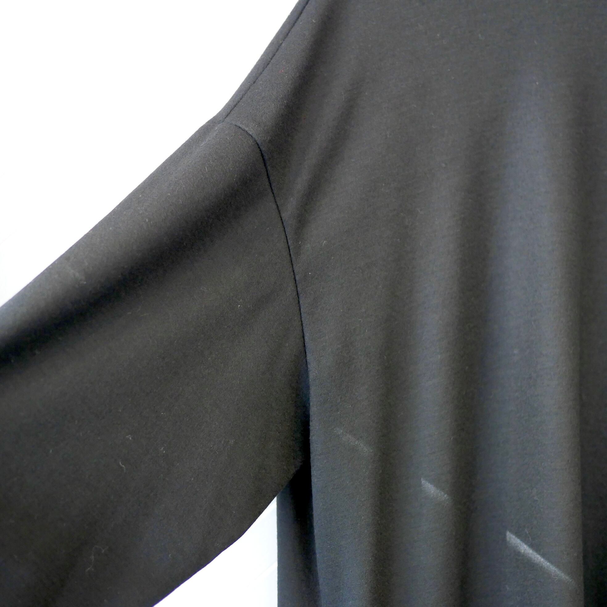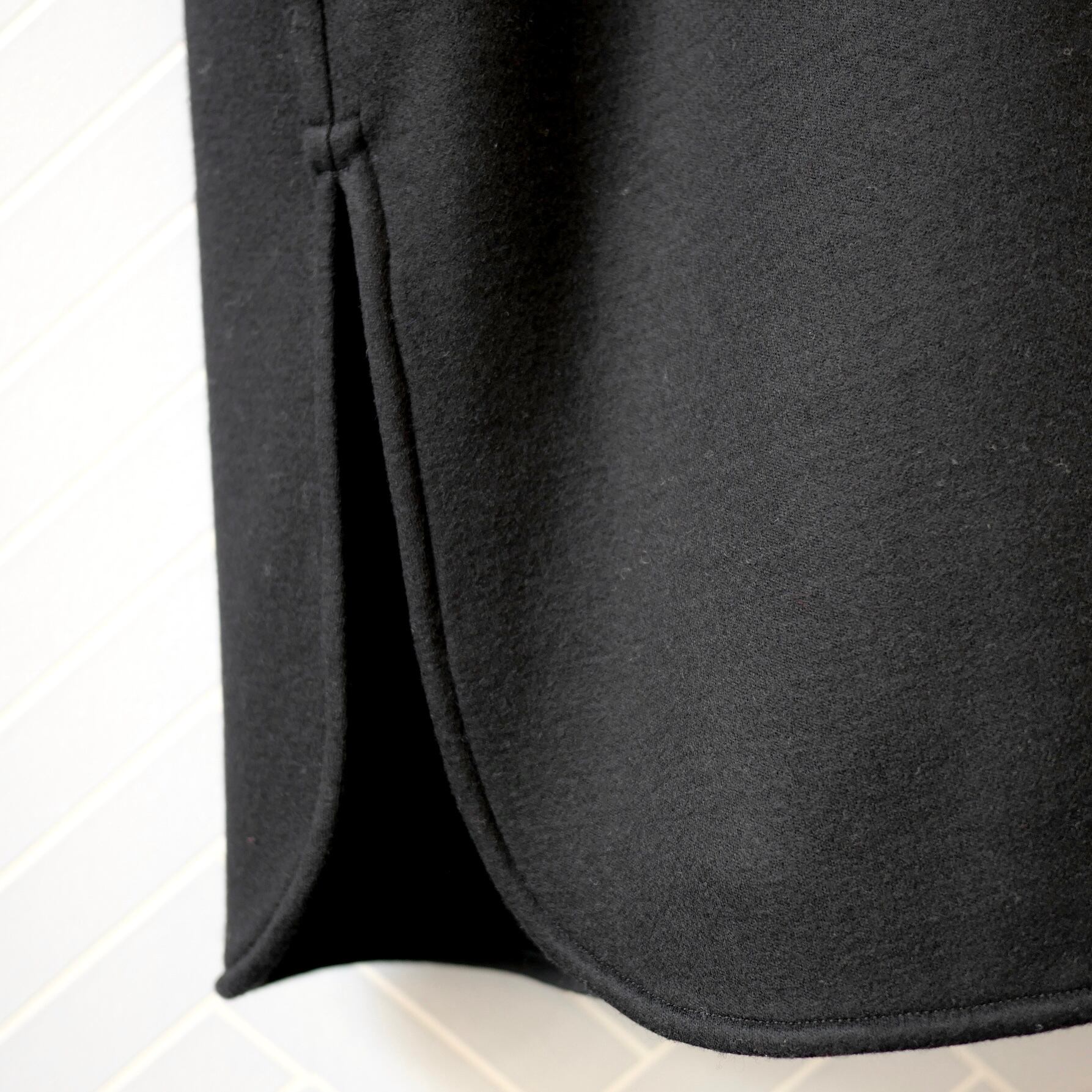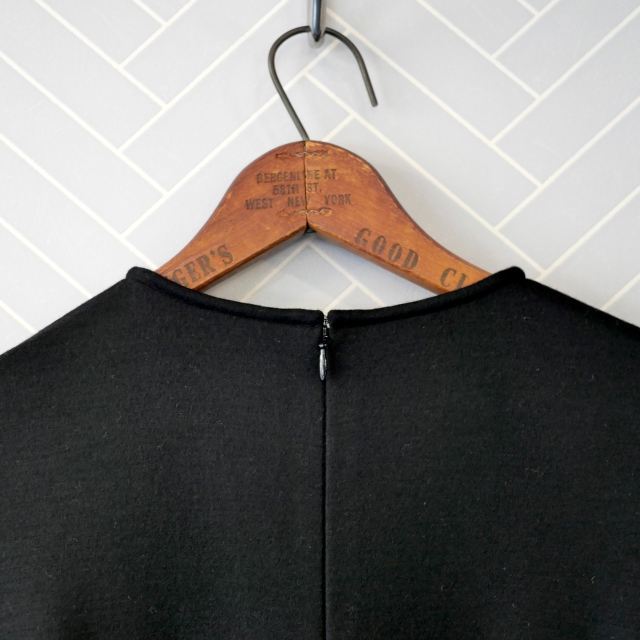 伸縮性のある厚手のジャージ素材「ウールミドルスムース」生地のプルオーバードレス。すぽっと着られるのに、後ろファスナーで閉めるので首周りが綺麗に見えます。全体的にゆったりしていますが着てみるとすっきり見えるのが嬉しい。普段使いはもちろん、急な冠婚葬祭にもお使いいただけるブラックワンピースです。ご自宅でもお洗濯可能で非常に扱いやすいシリーズです。