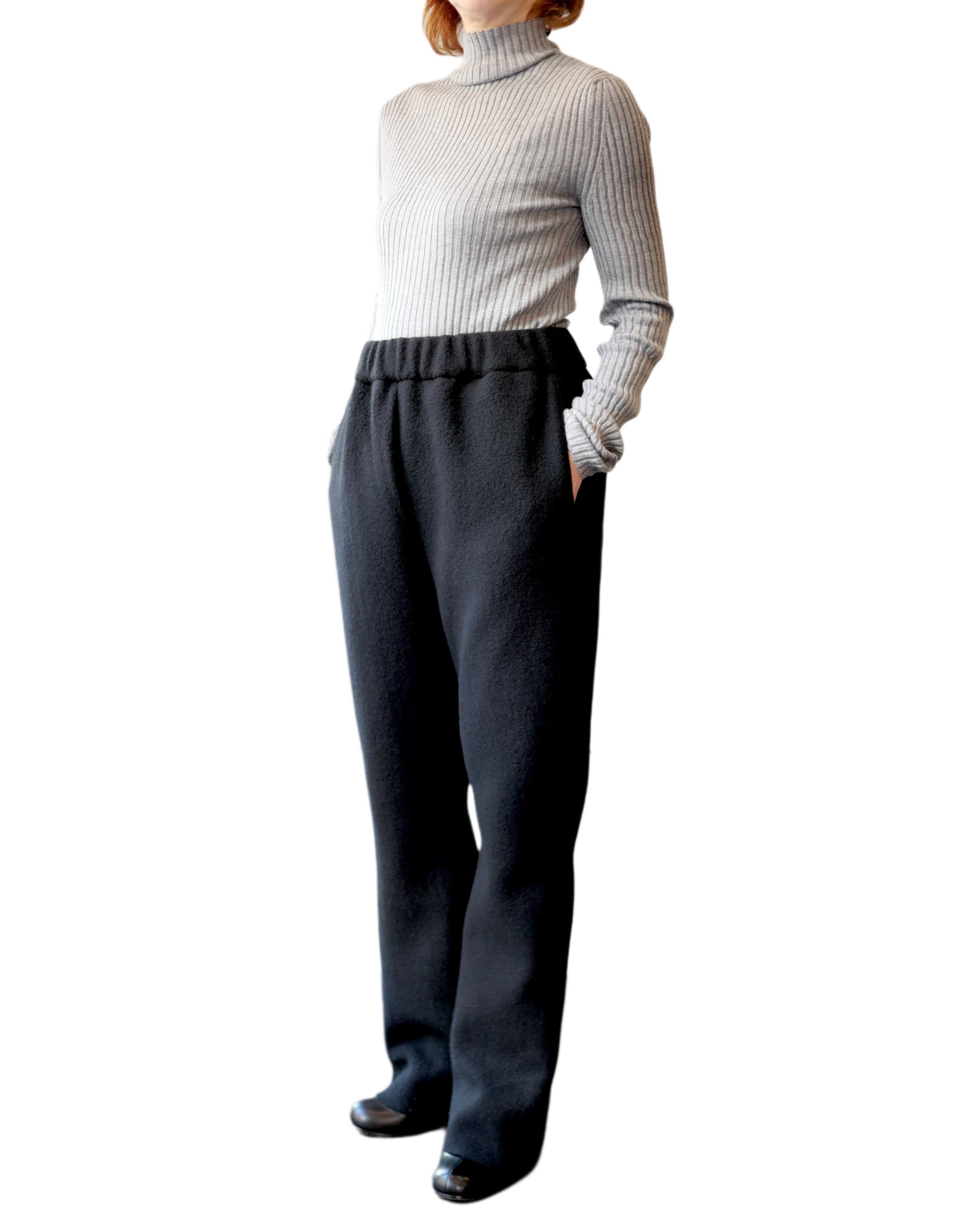 R&D.M.Co- no.7809d WOOL FELT FLARE PANTS Black