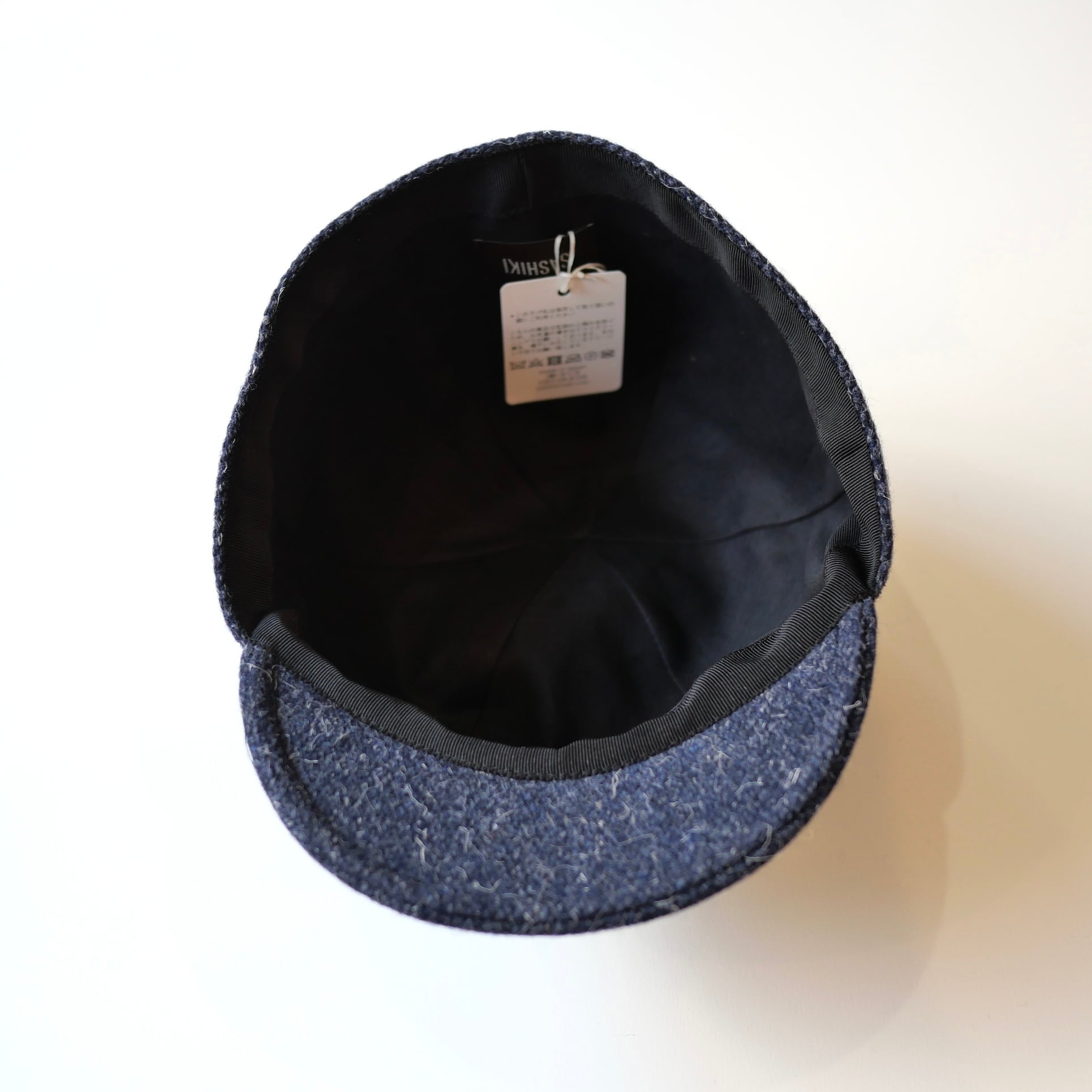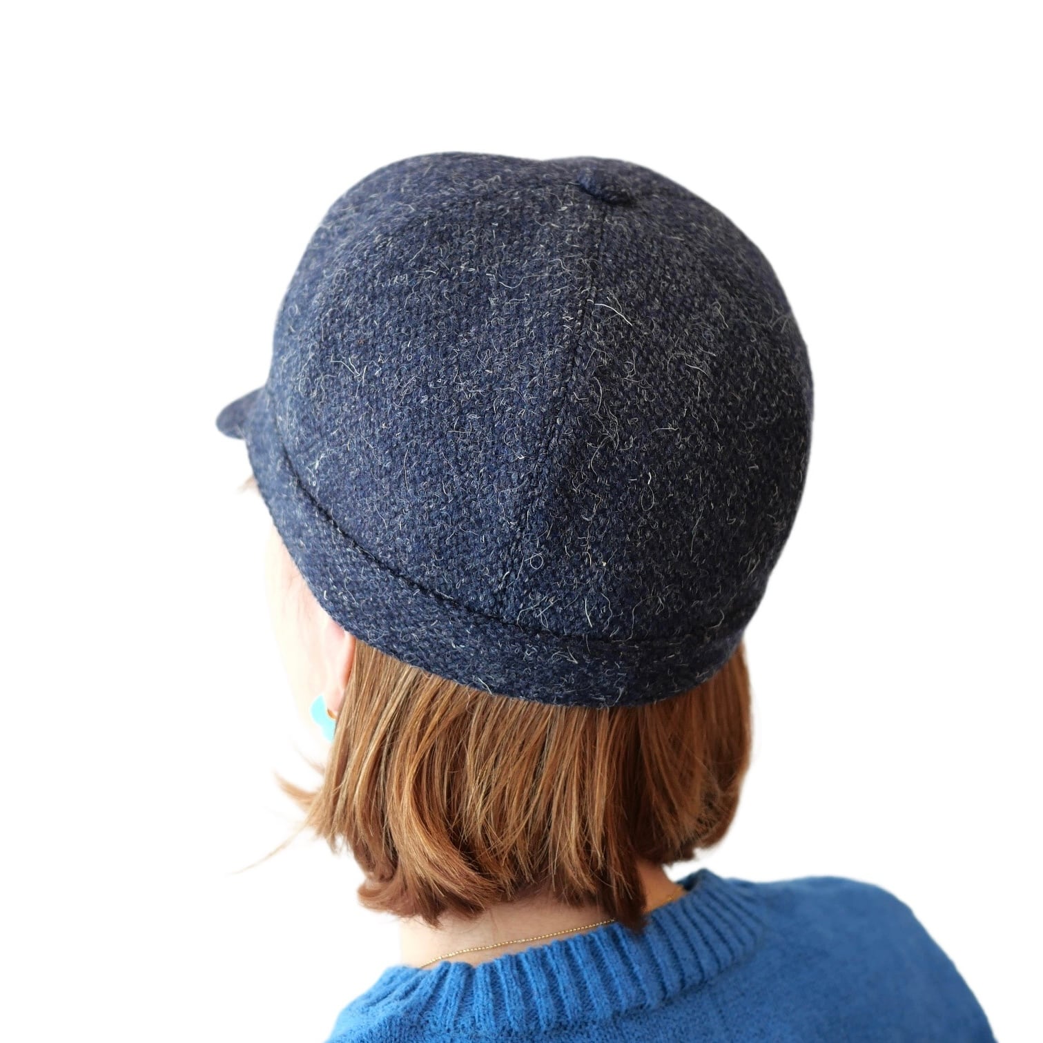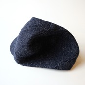深めな被り心地で、大人っぽくマニッシュな印象に。カジュアルになりすぎず、堅苦しくない使いやすいアイテムです。ネイビーミックスウール素材が個性的です。