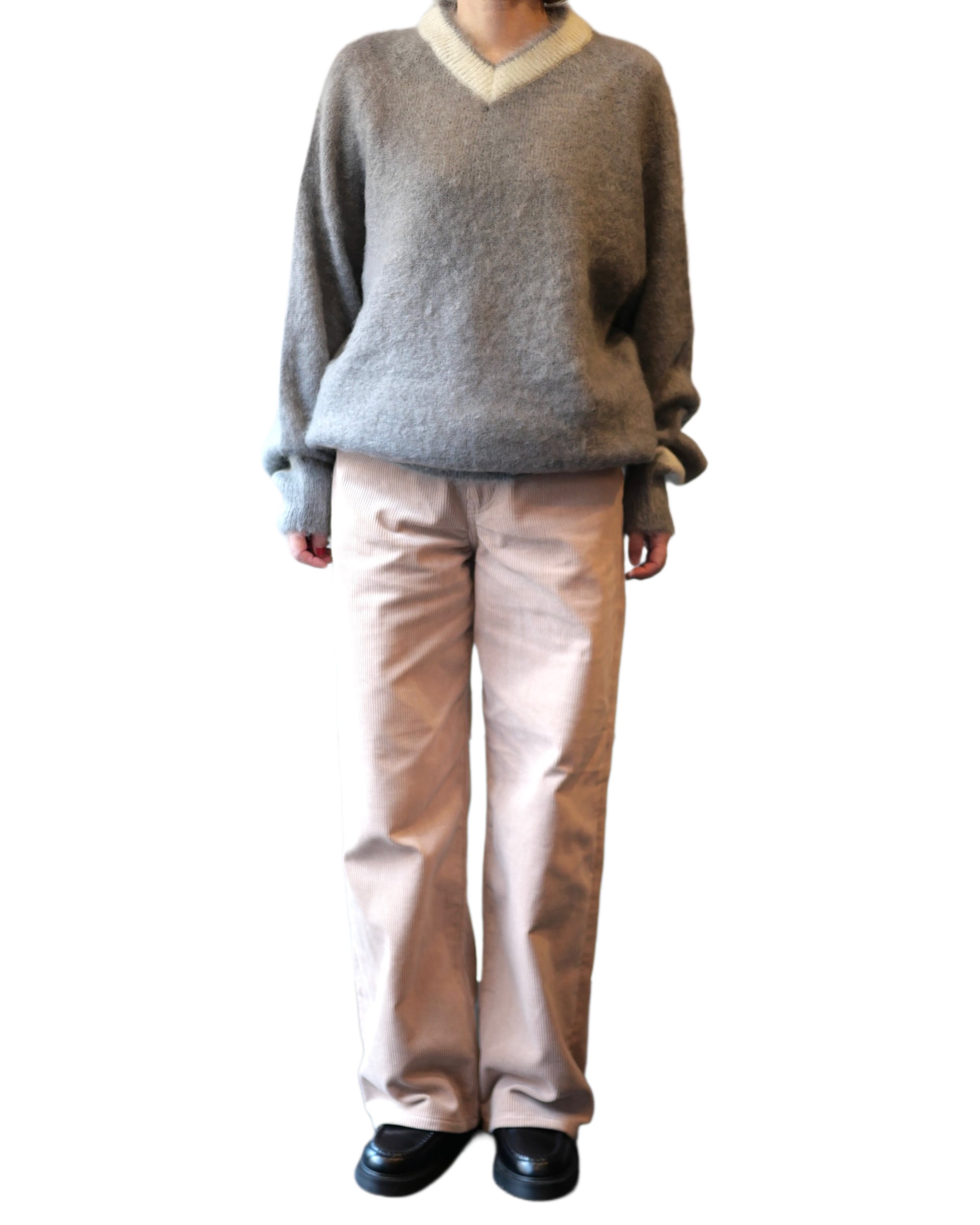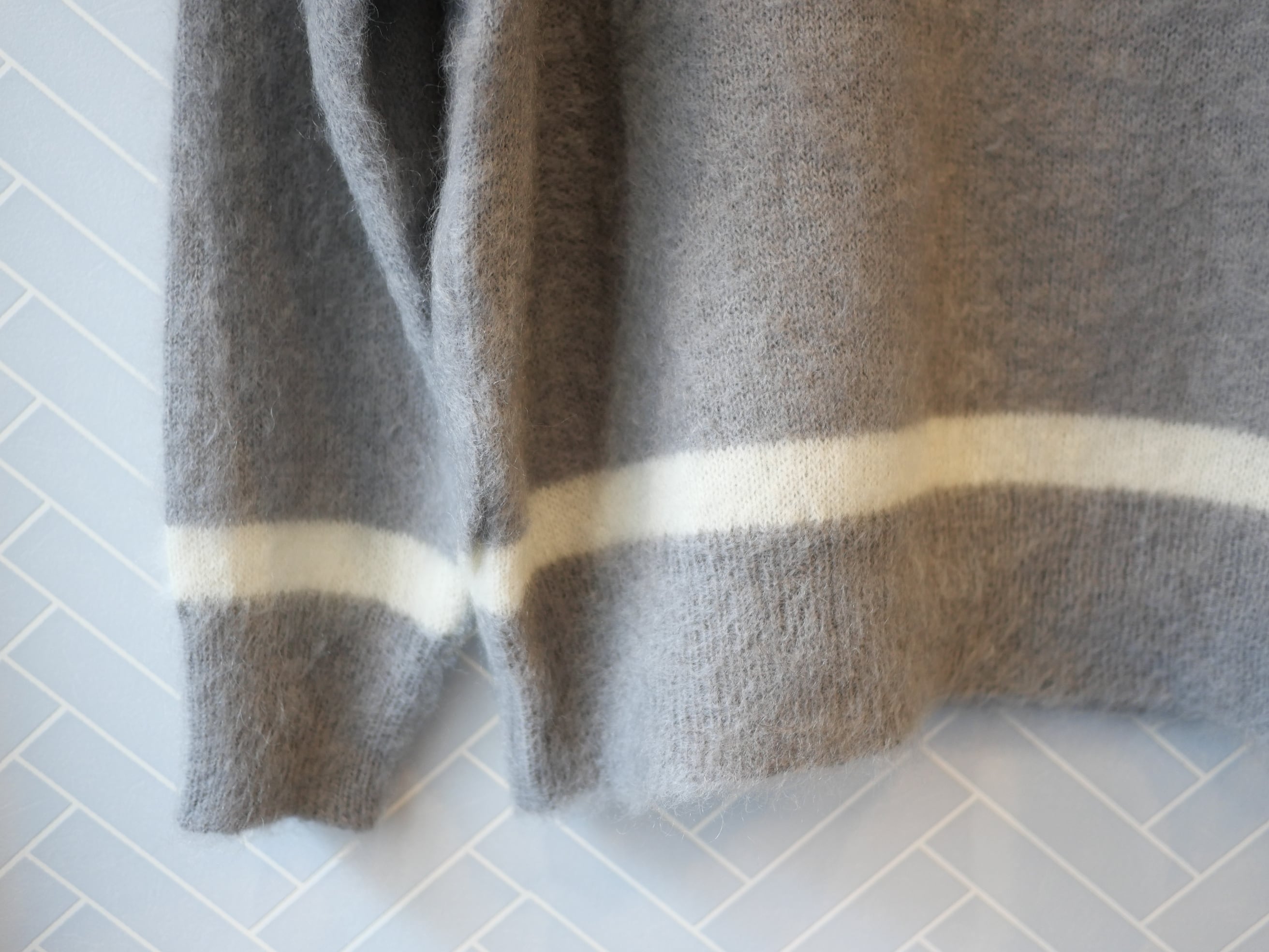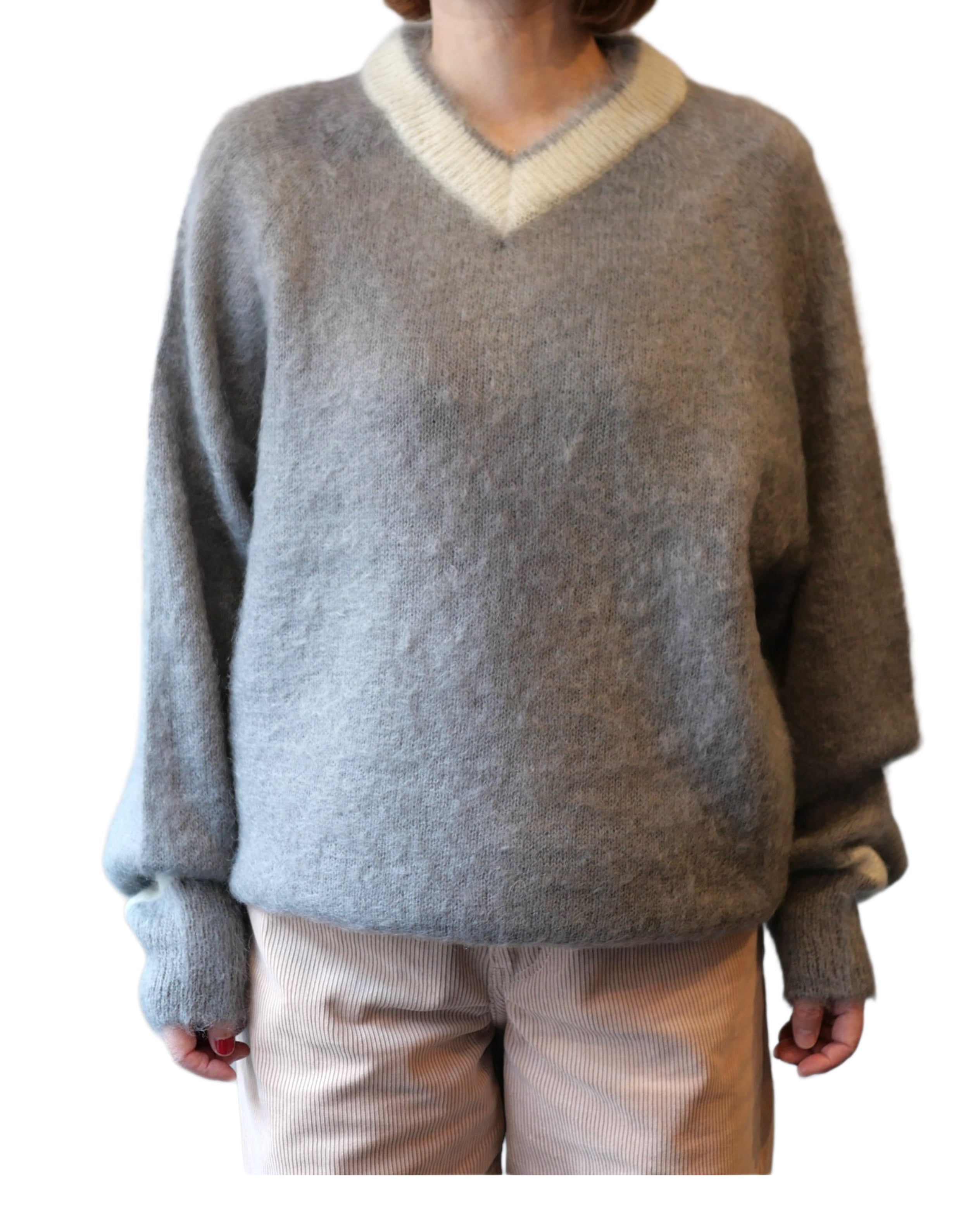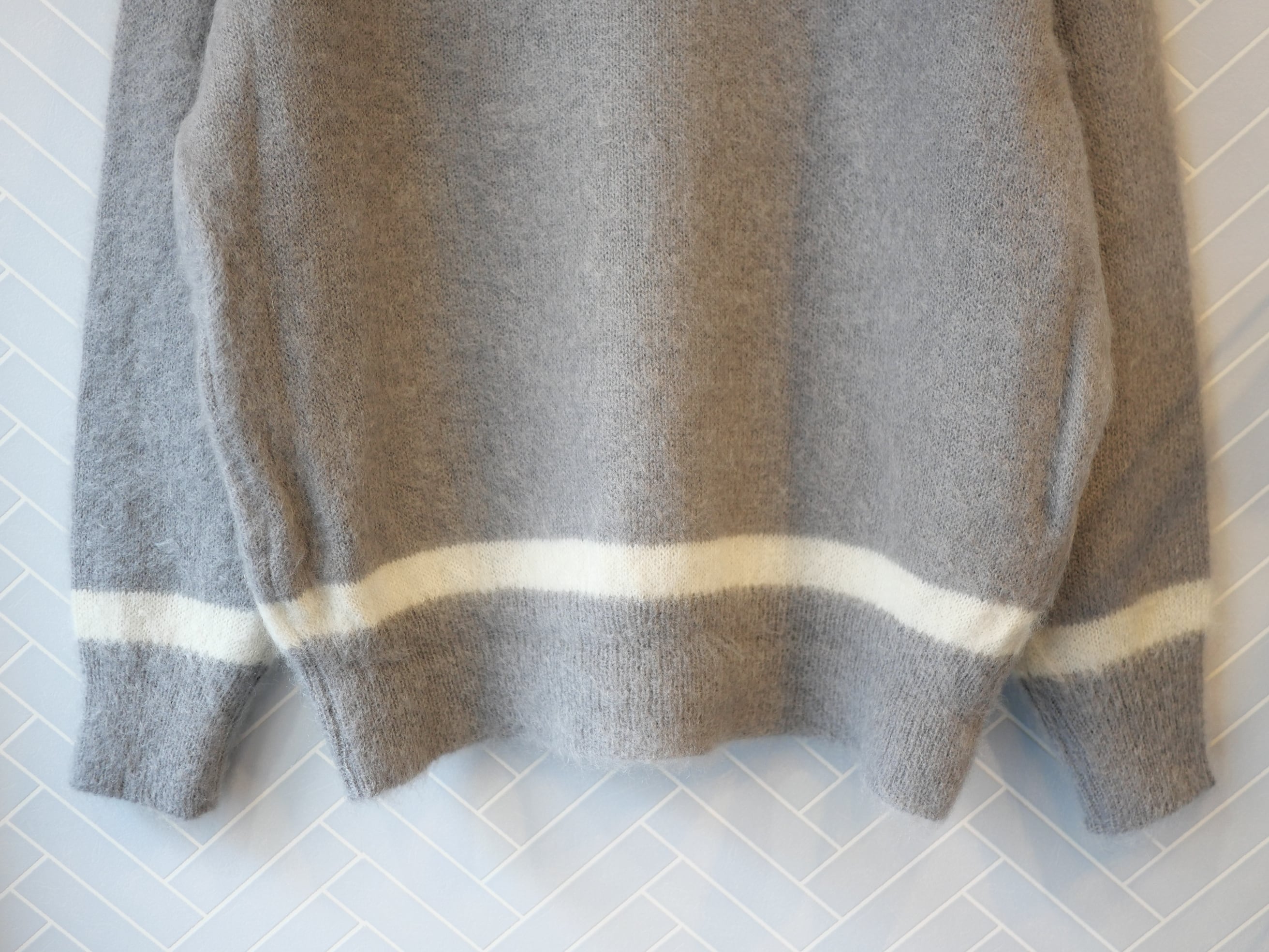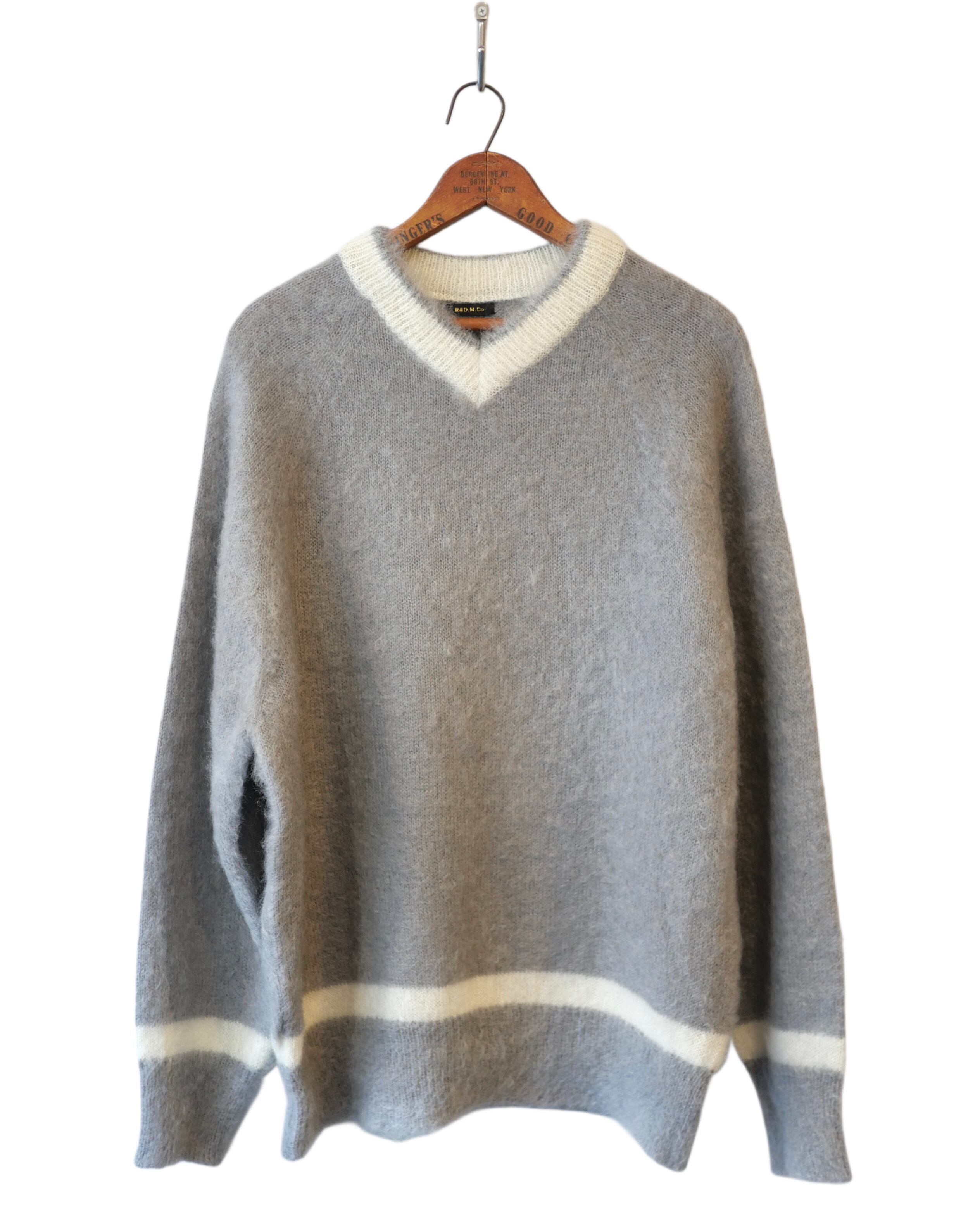 R&D.M.Co- no.7827c MOHAIR CRICKET SWEATER Gray×White