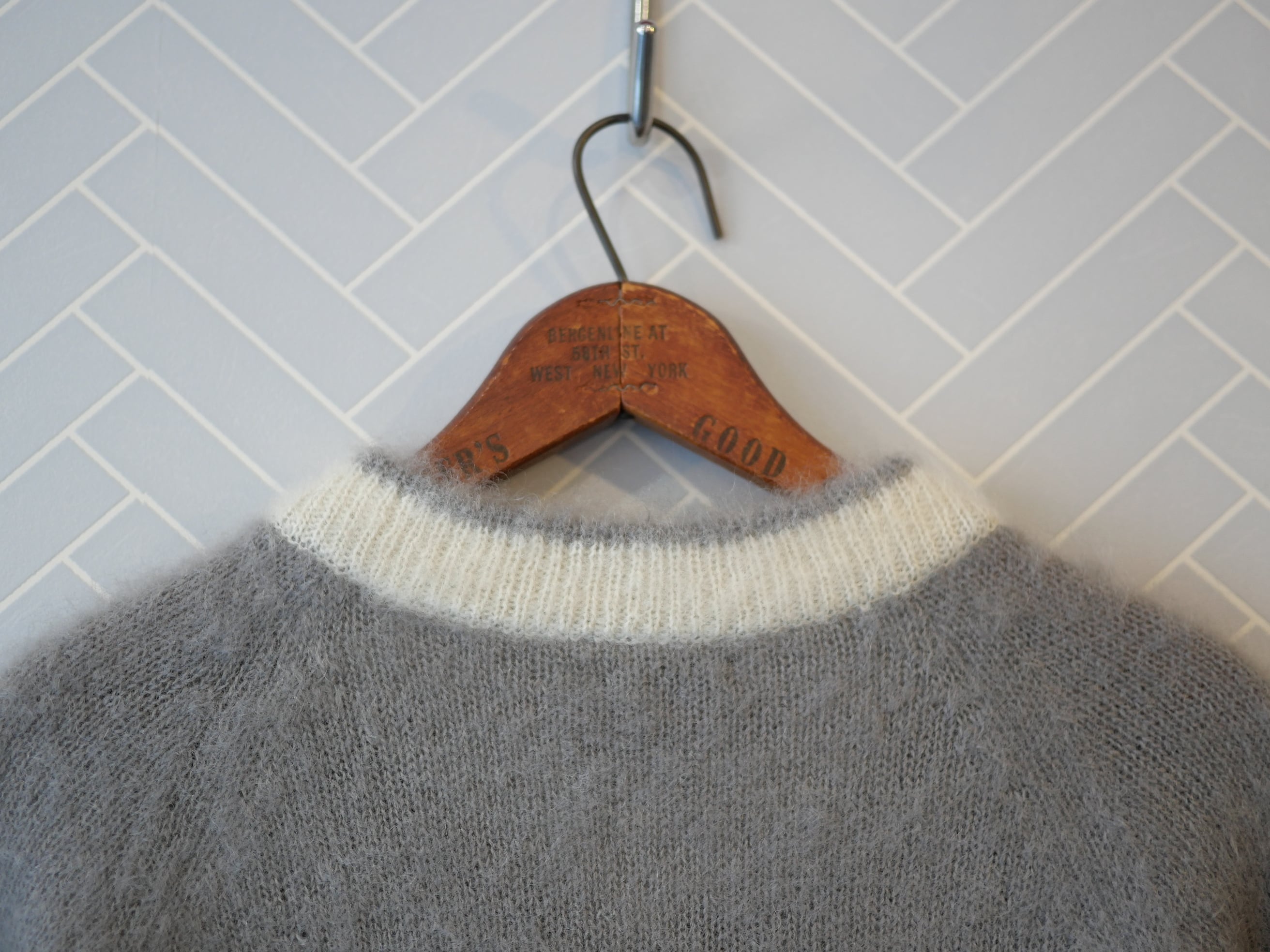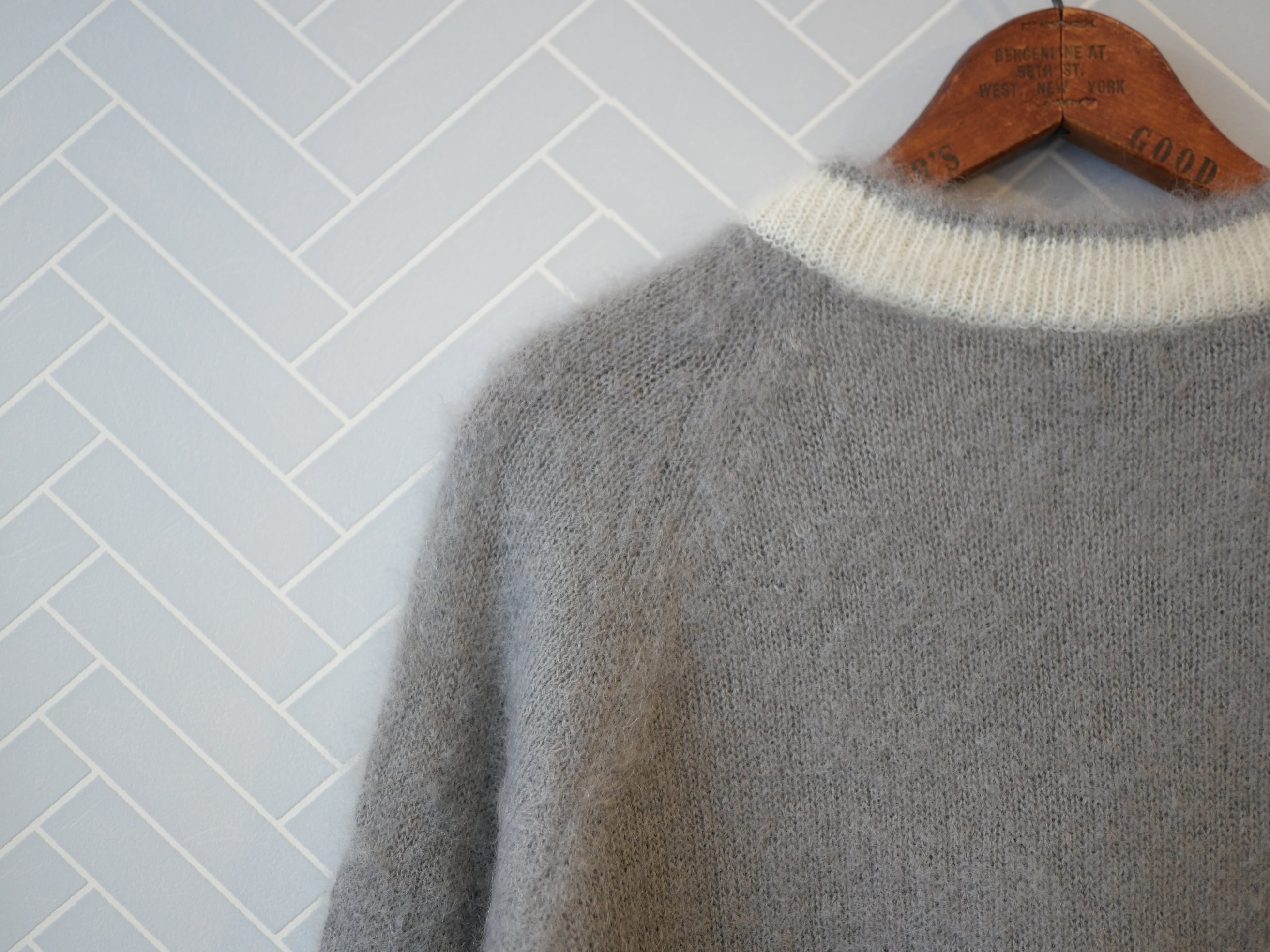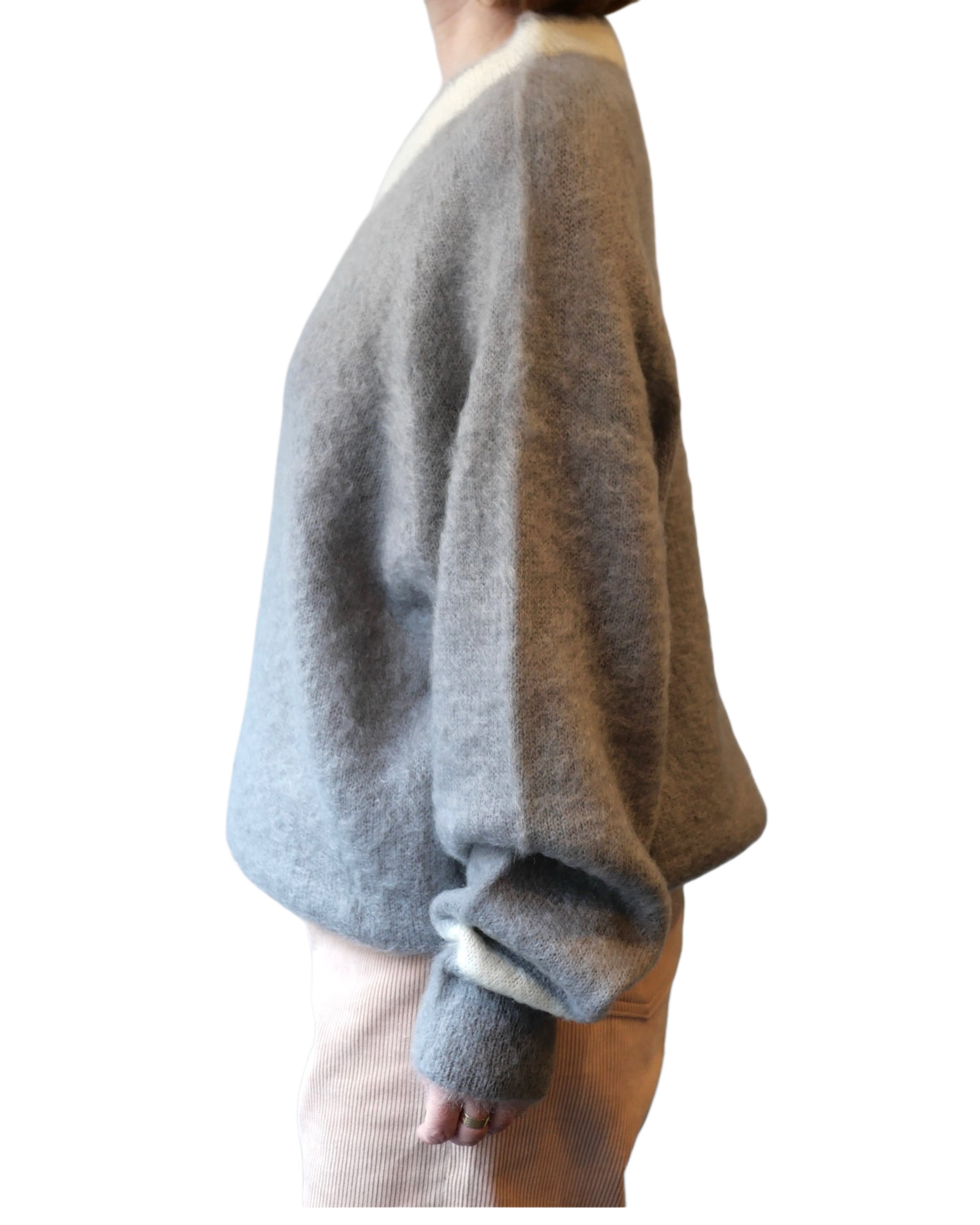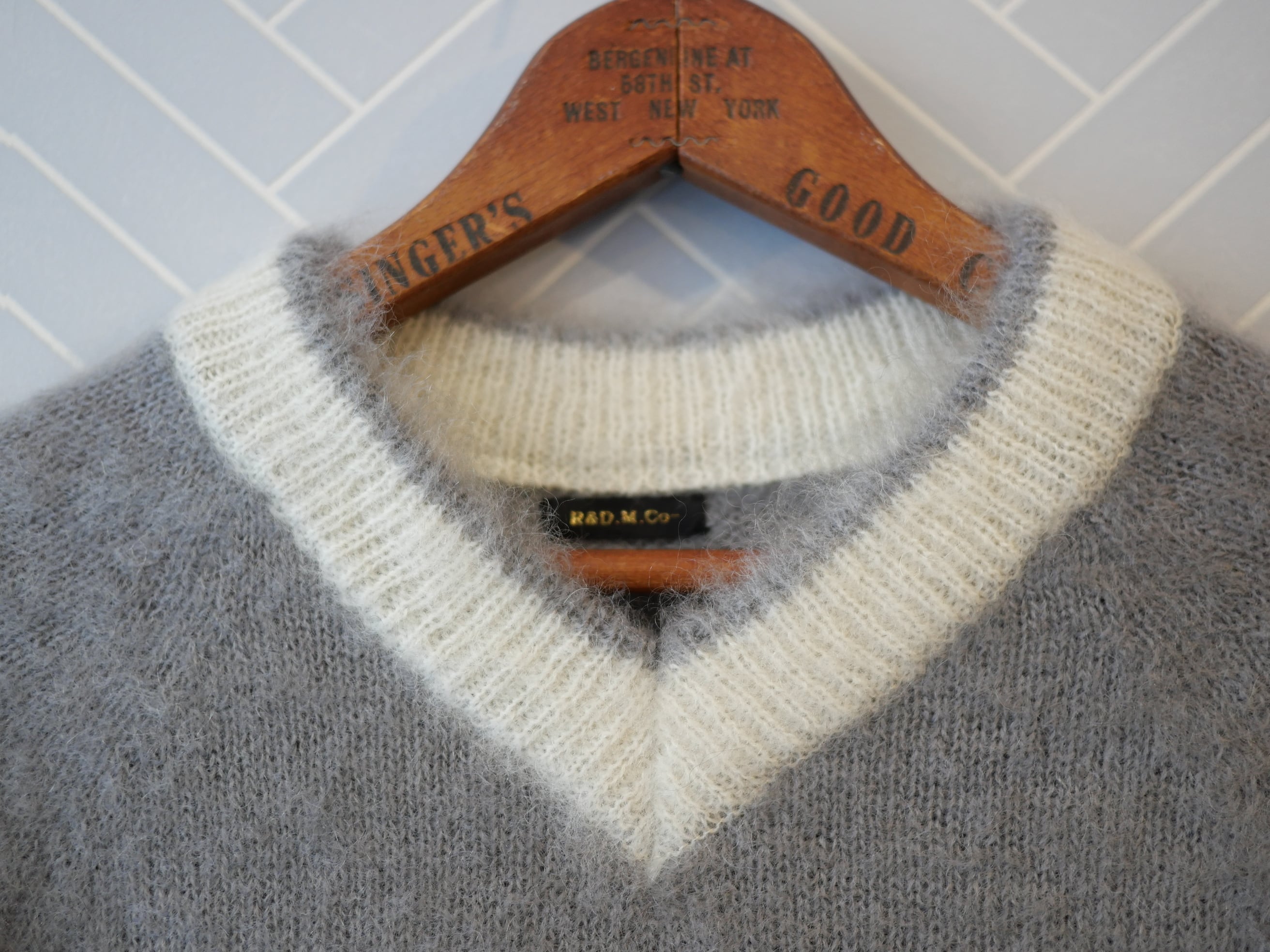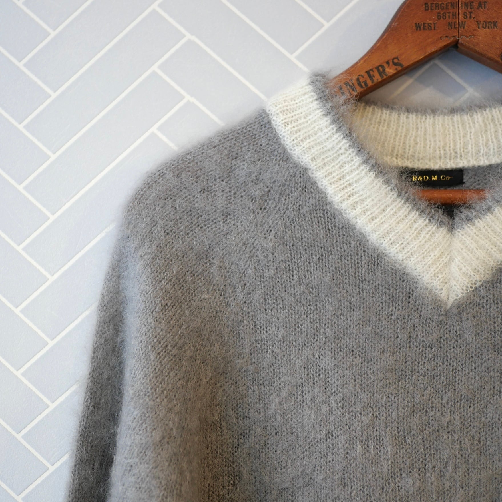 R&D.M.Co- no.7827c MOHAIR CRICKET SWEATER Gray×White