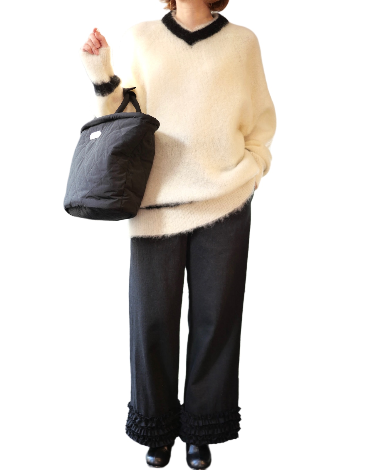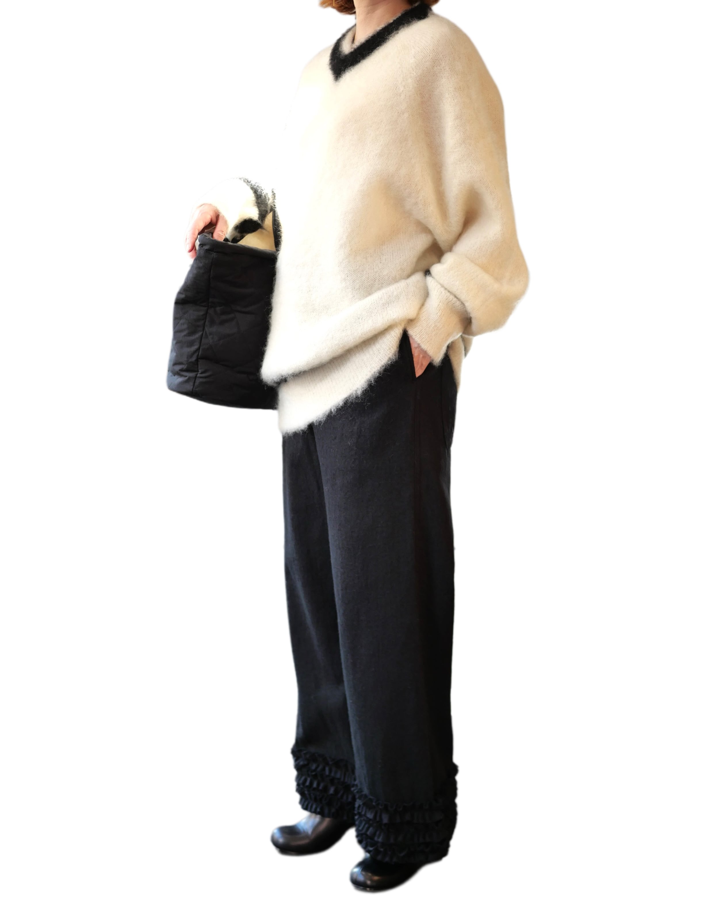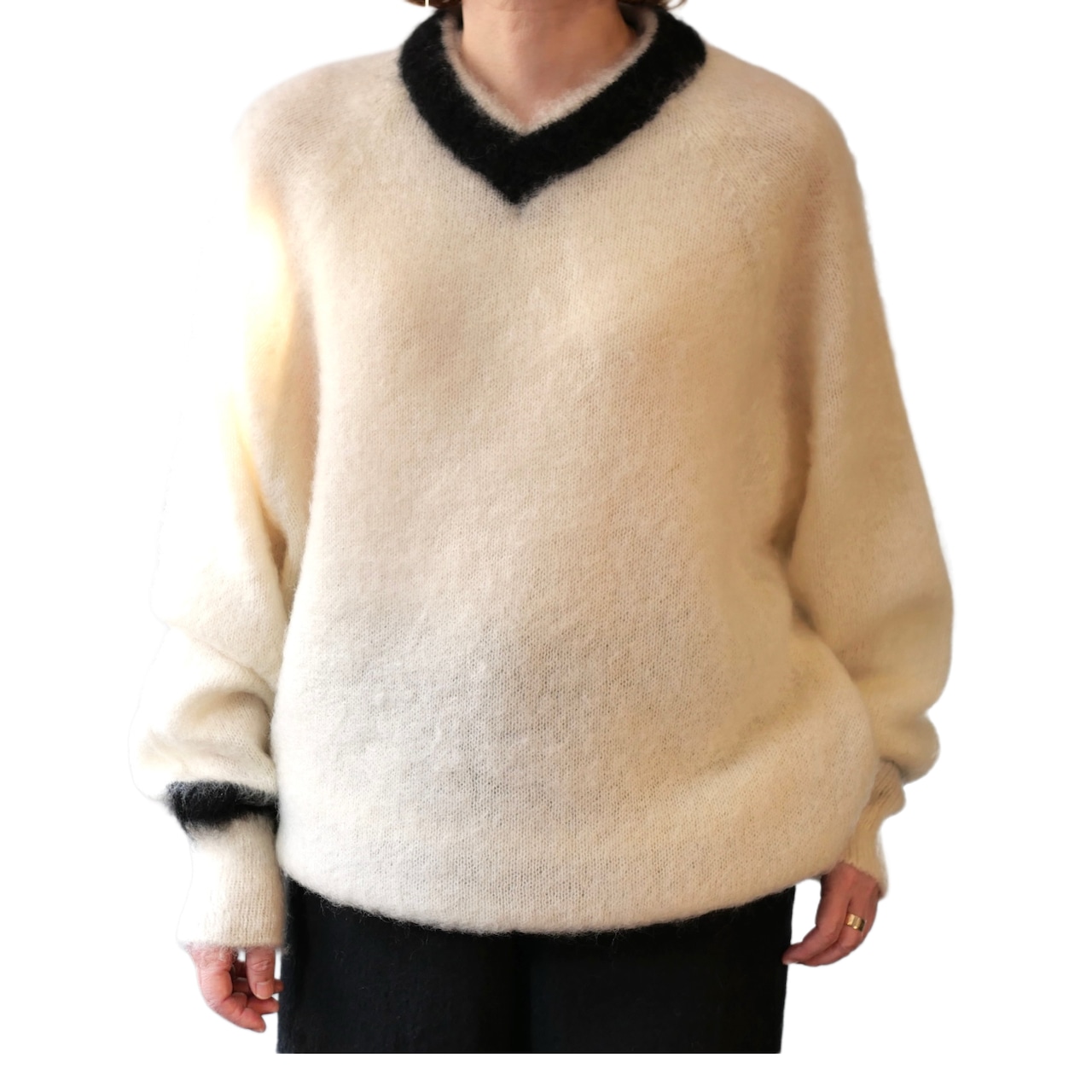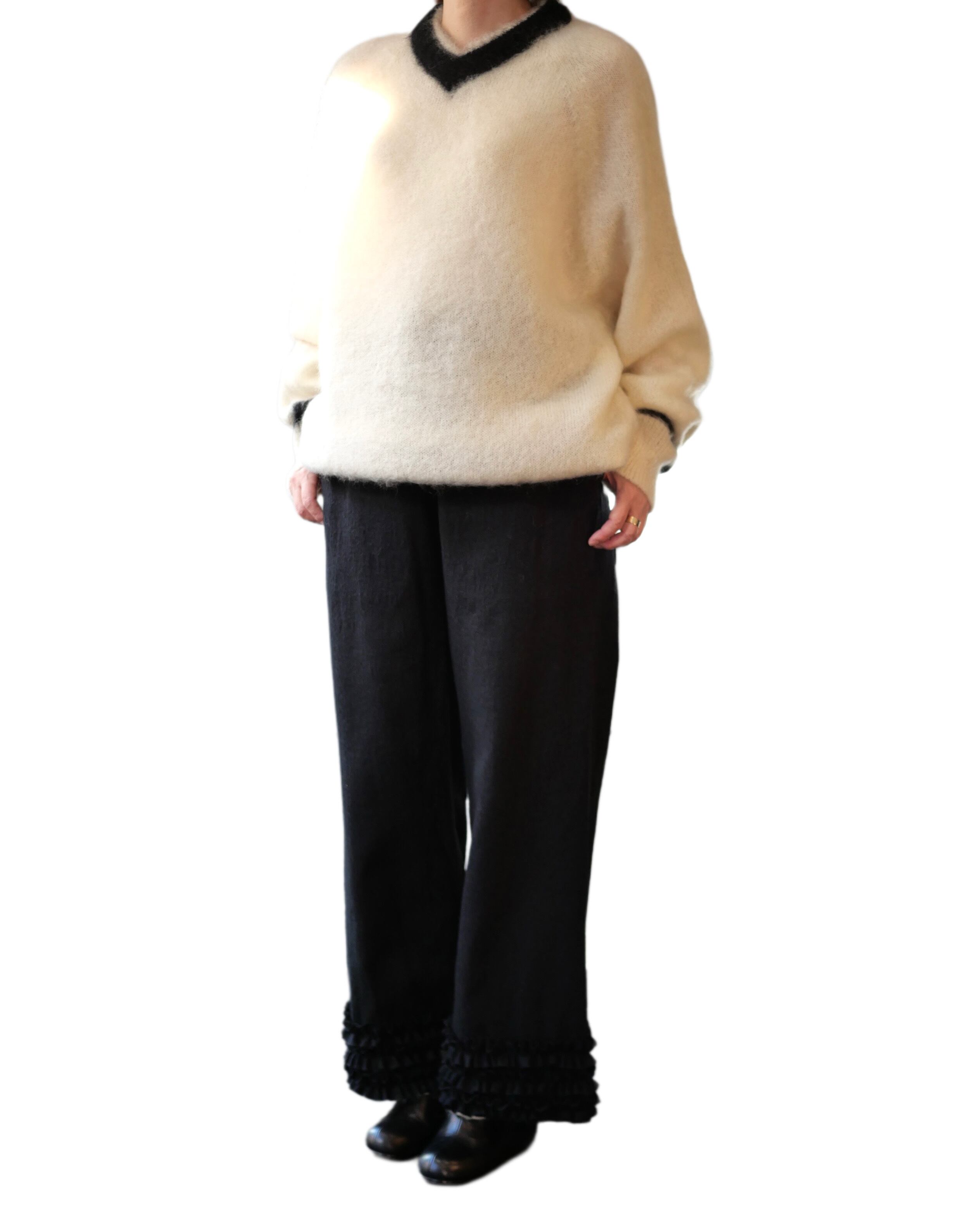 イギリス発祥のスポーツ、「クリケット」で着用される伝統的なセーターを、R&D.M.Co-アレンジでモヘアセーターとして発売です。素肌に着ても良いくらいの肌触りの良さが特徴のモヘア素材。たっぷりとしさサイズ感でゆるゆるにふわっと可愛いセーターです。