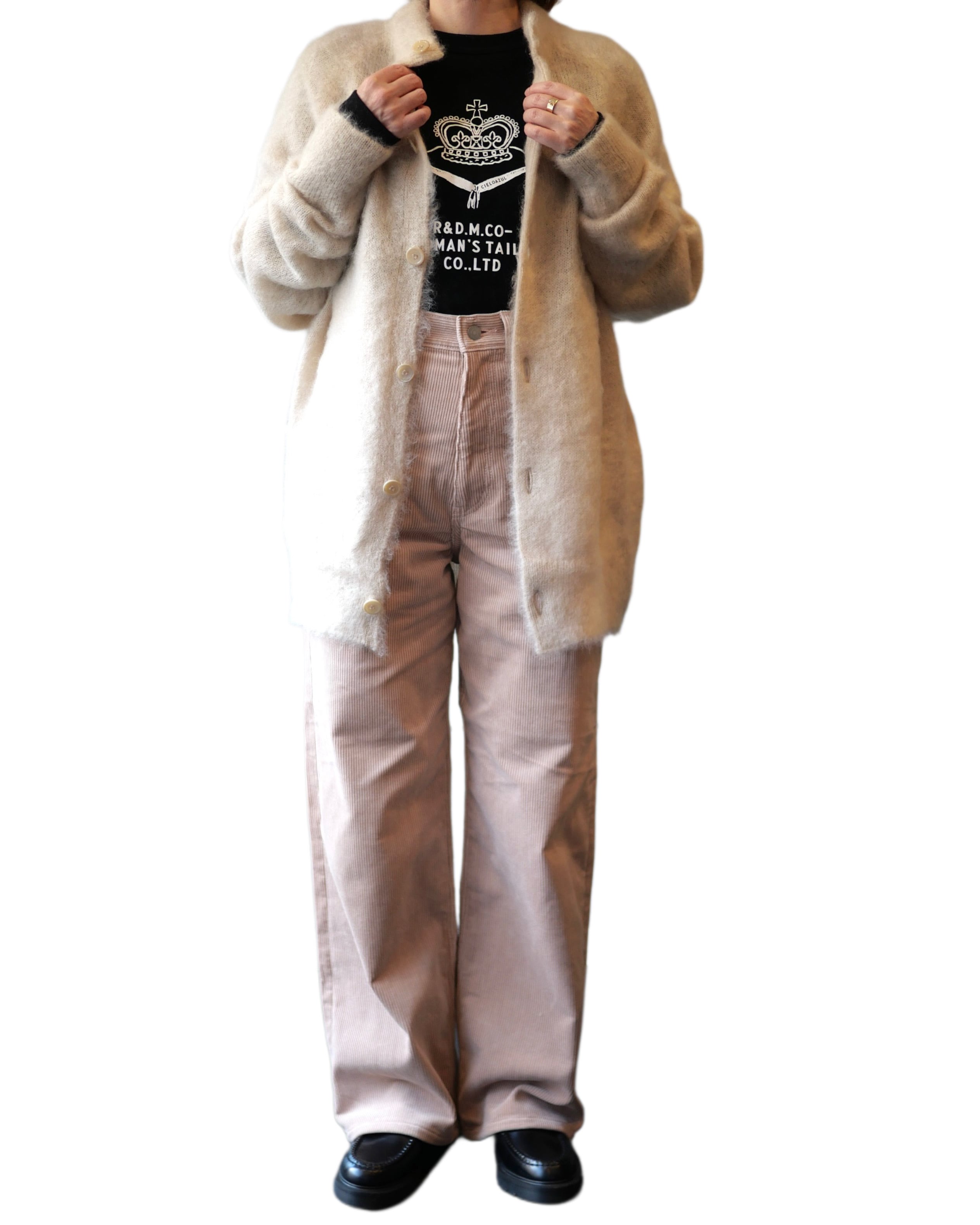 R&D.M.Co- no.7828b MOHAIR CREW NECK CARDIGAN White