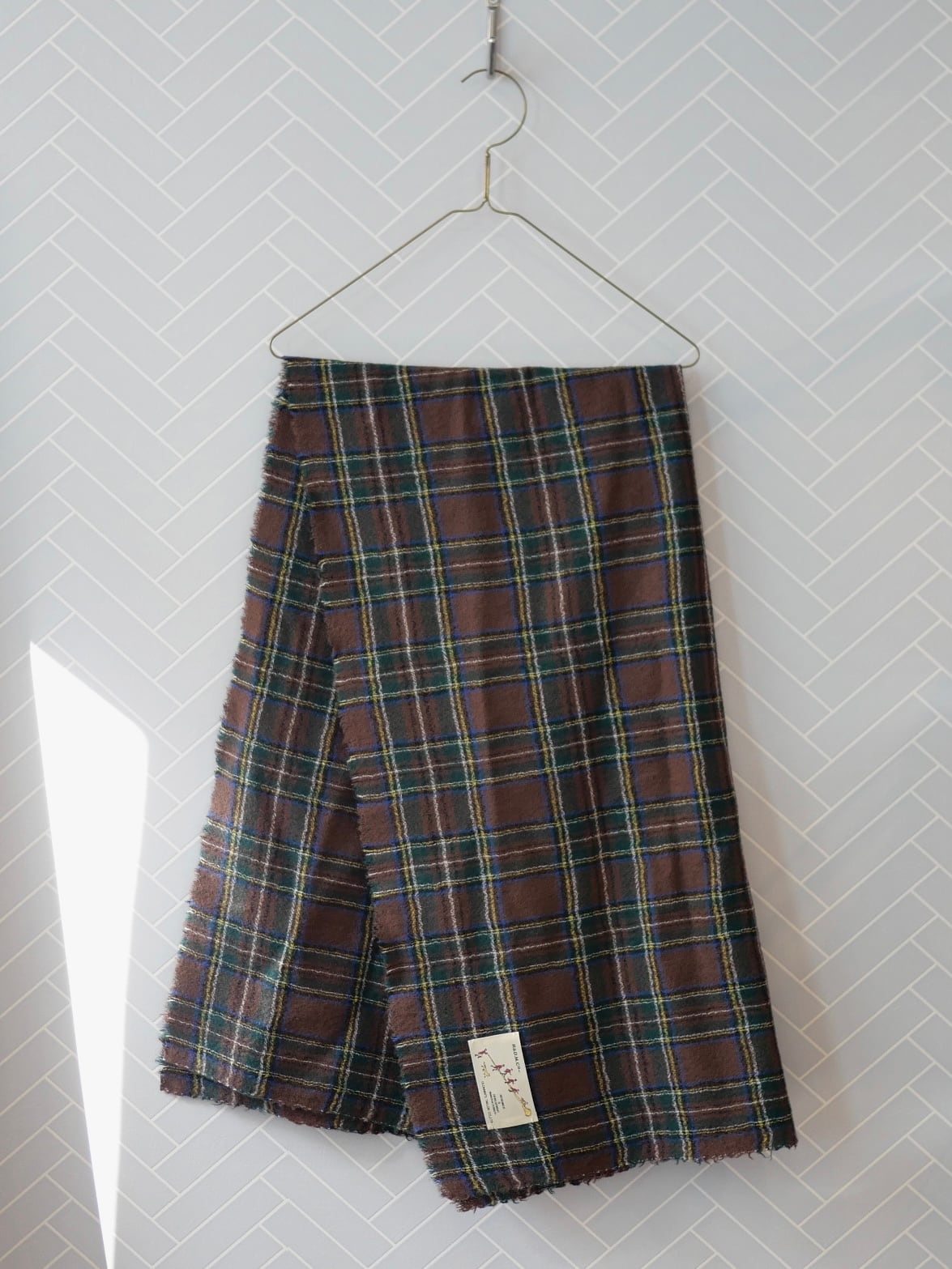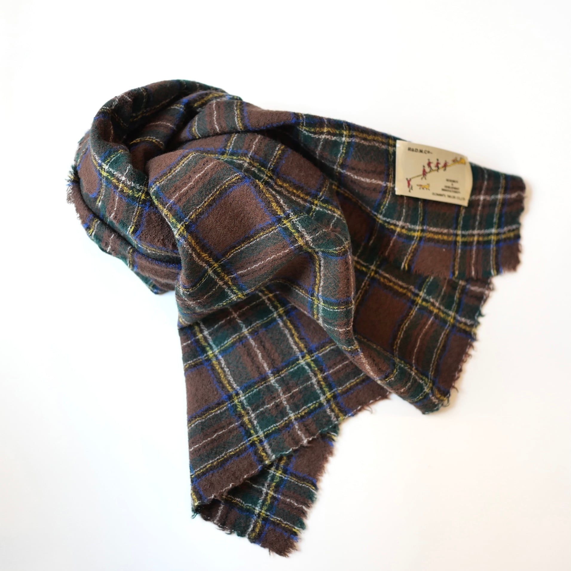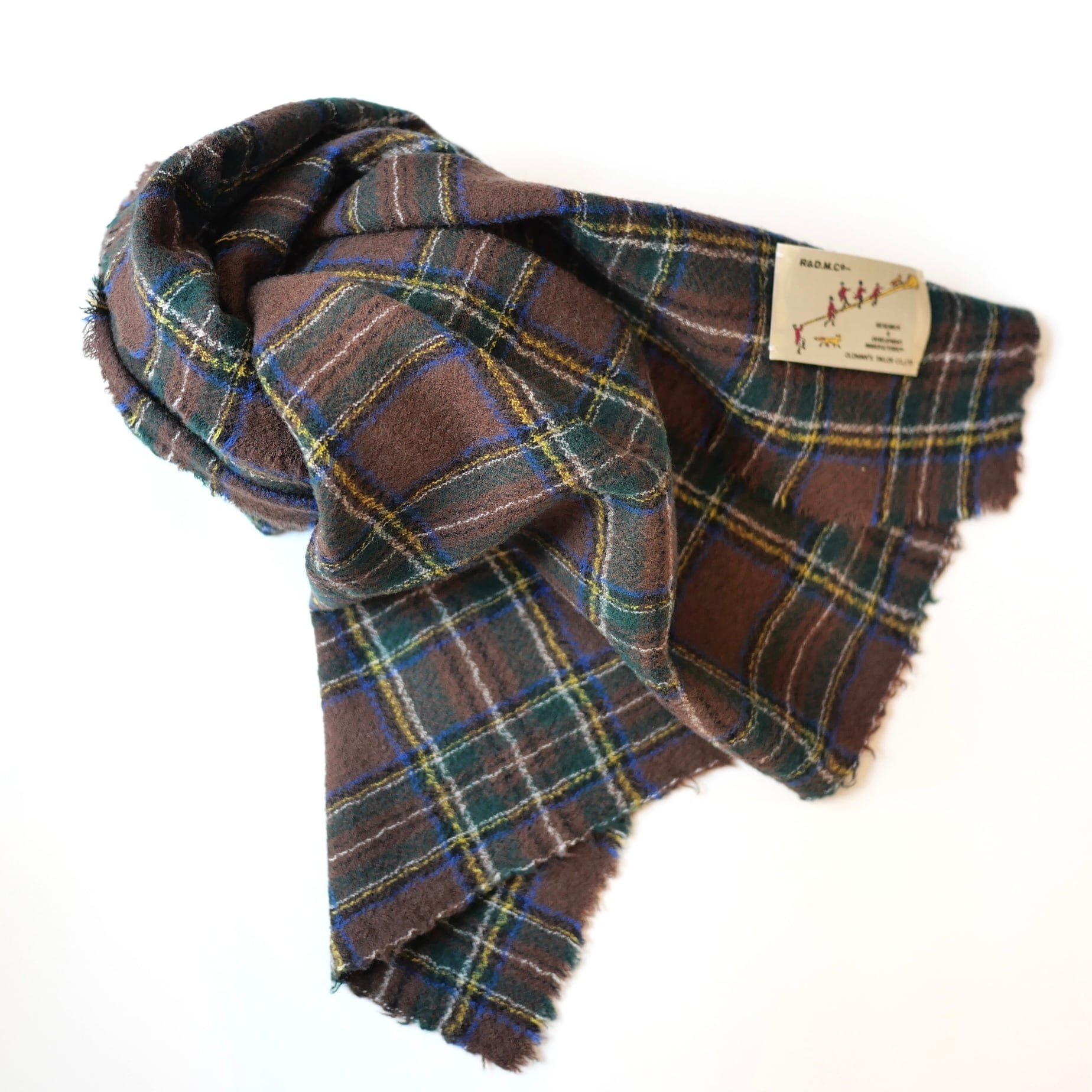 R&D.M.Co- no.7845b WOOL TARTAN CHECK MUFFLER Brown Stewart