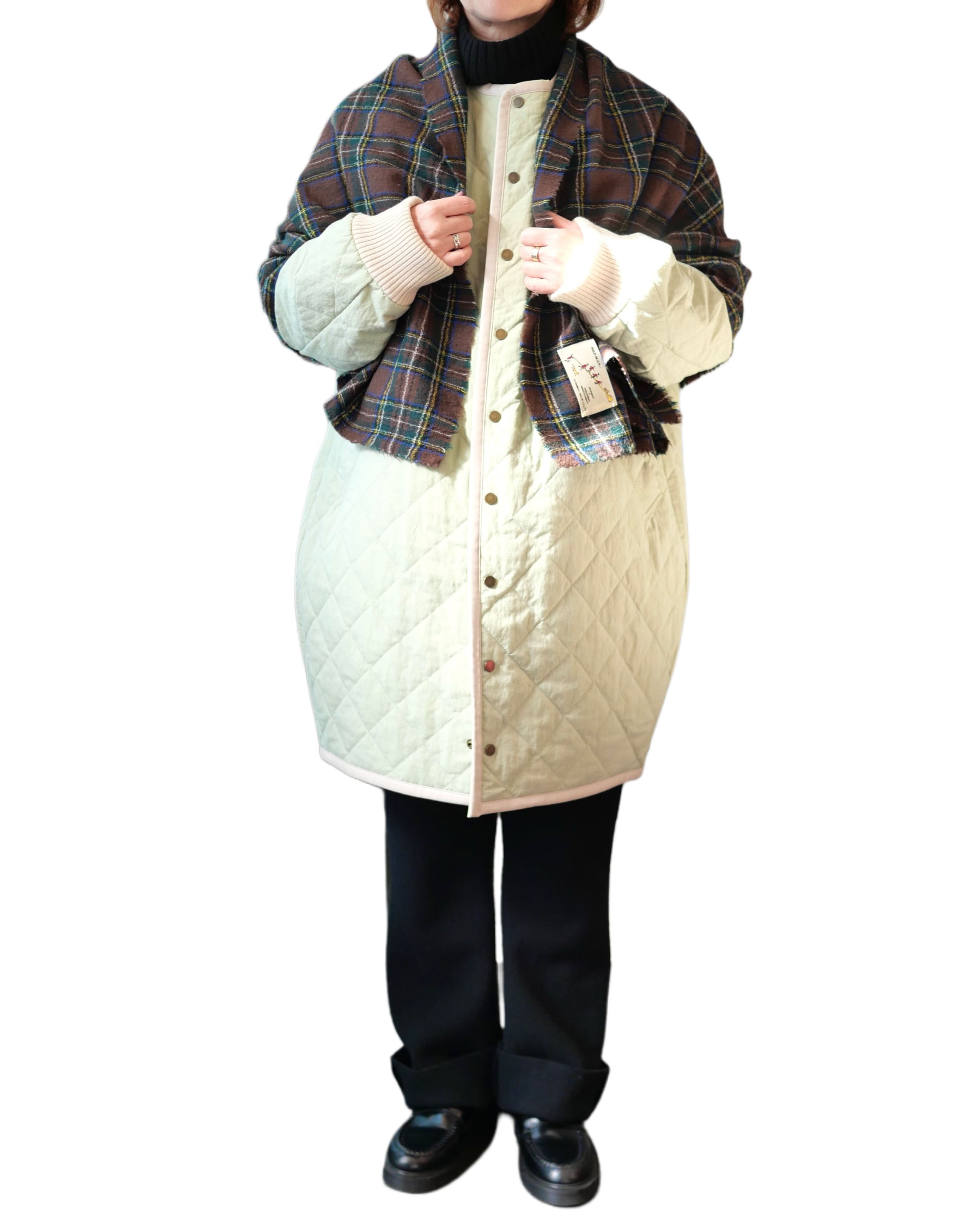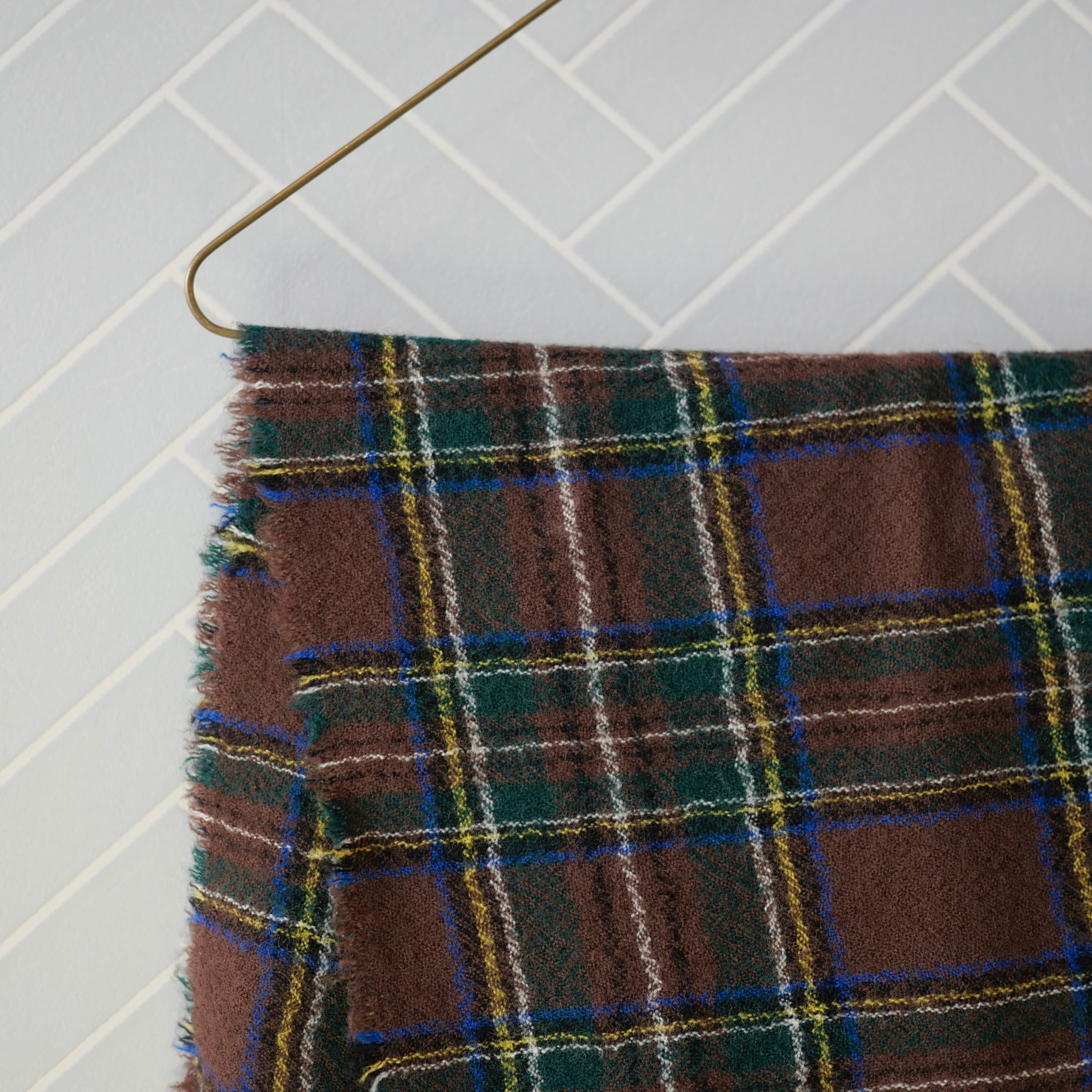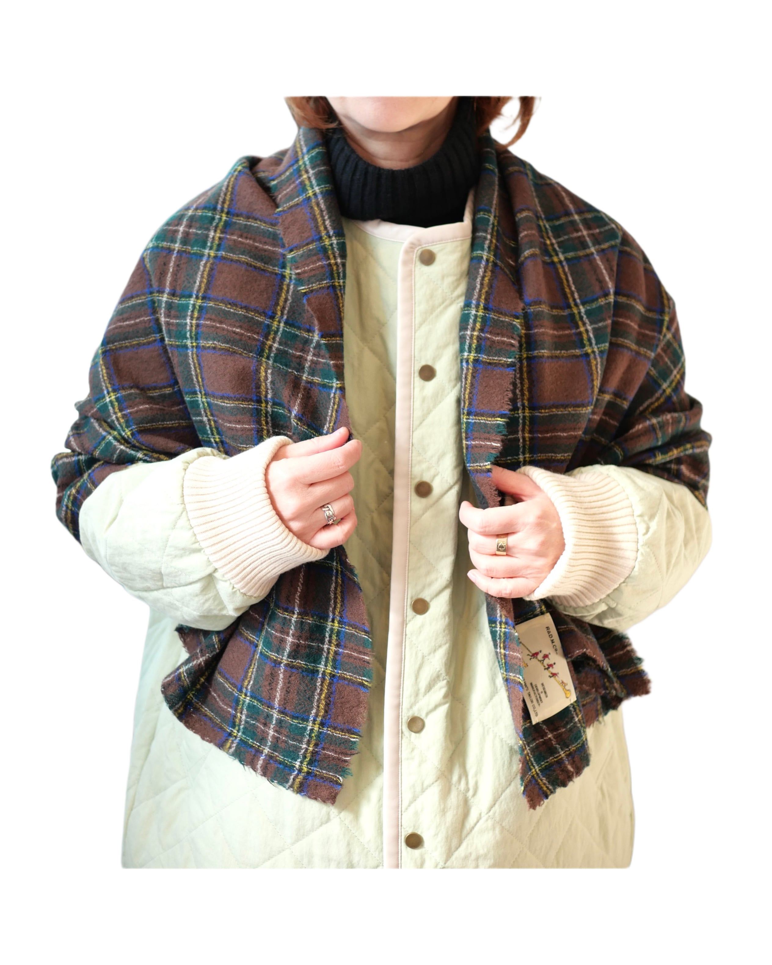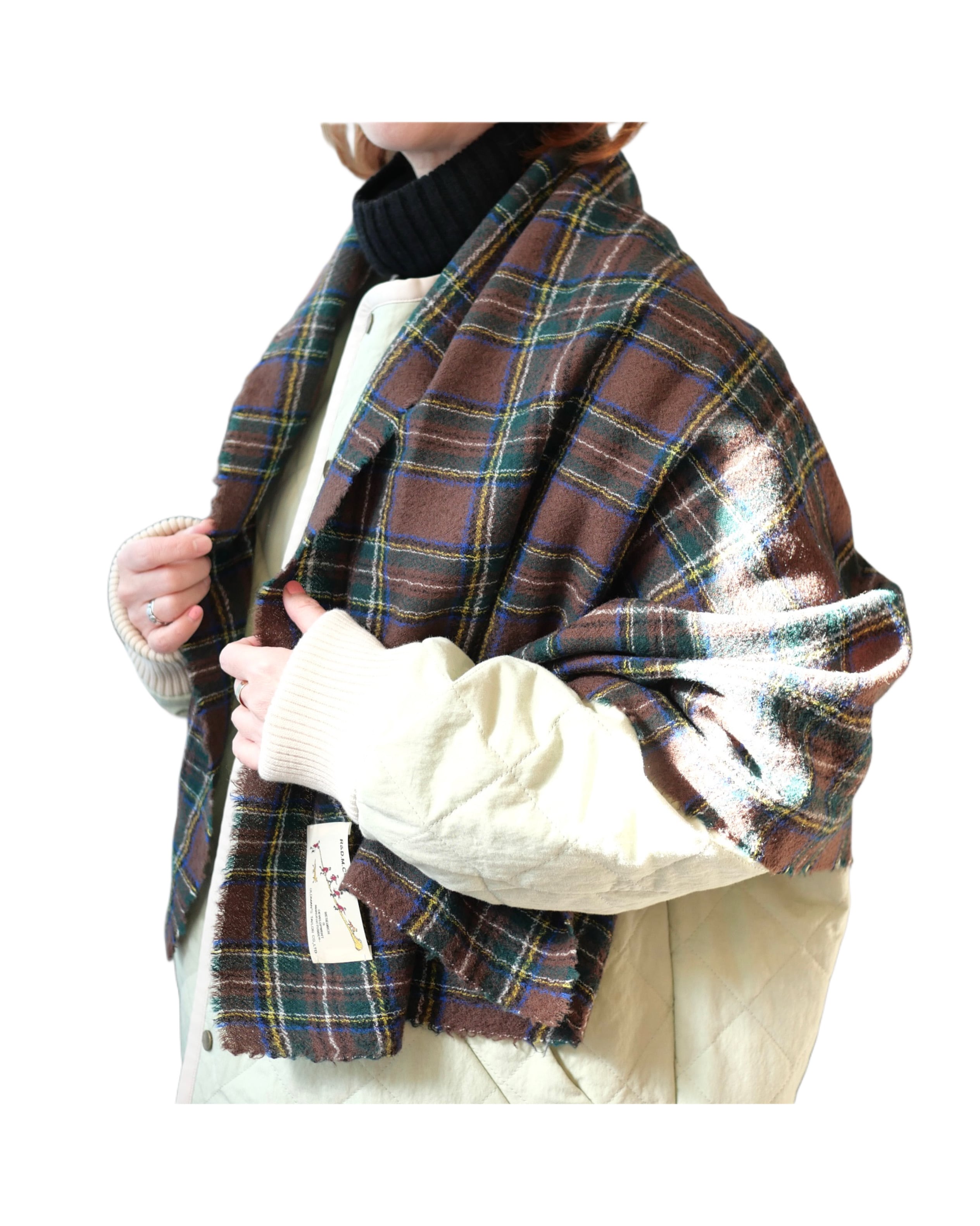 タータンチェックの柔らかいウール素材マフラー。ブランケットよりも小ぶりで巻きやすいサイズ感です。広げてストールとしても使える可愛いアイテムです。