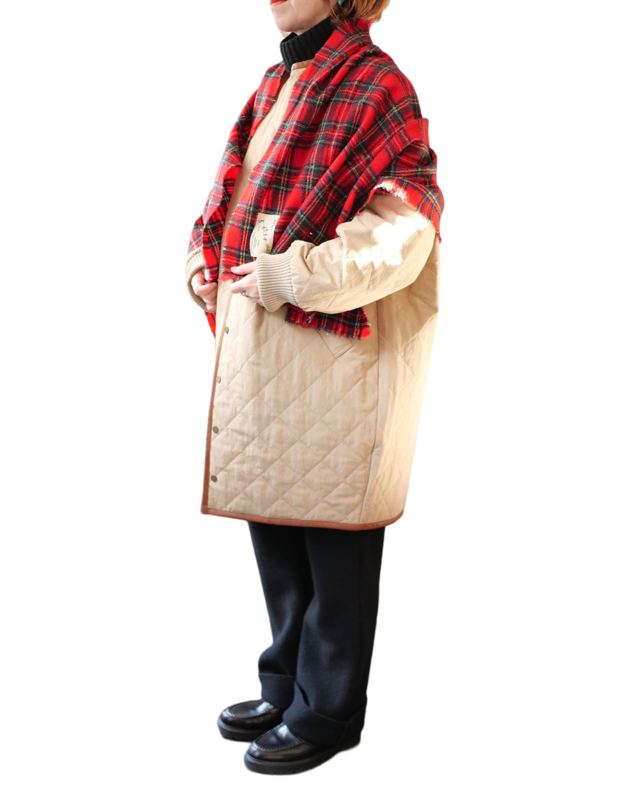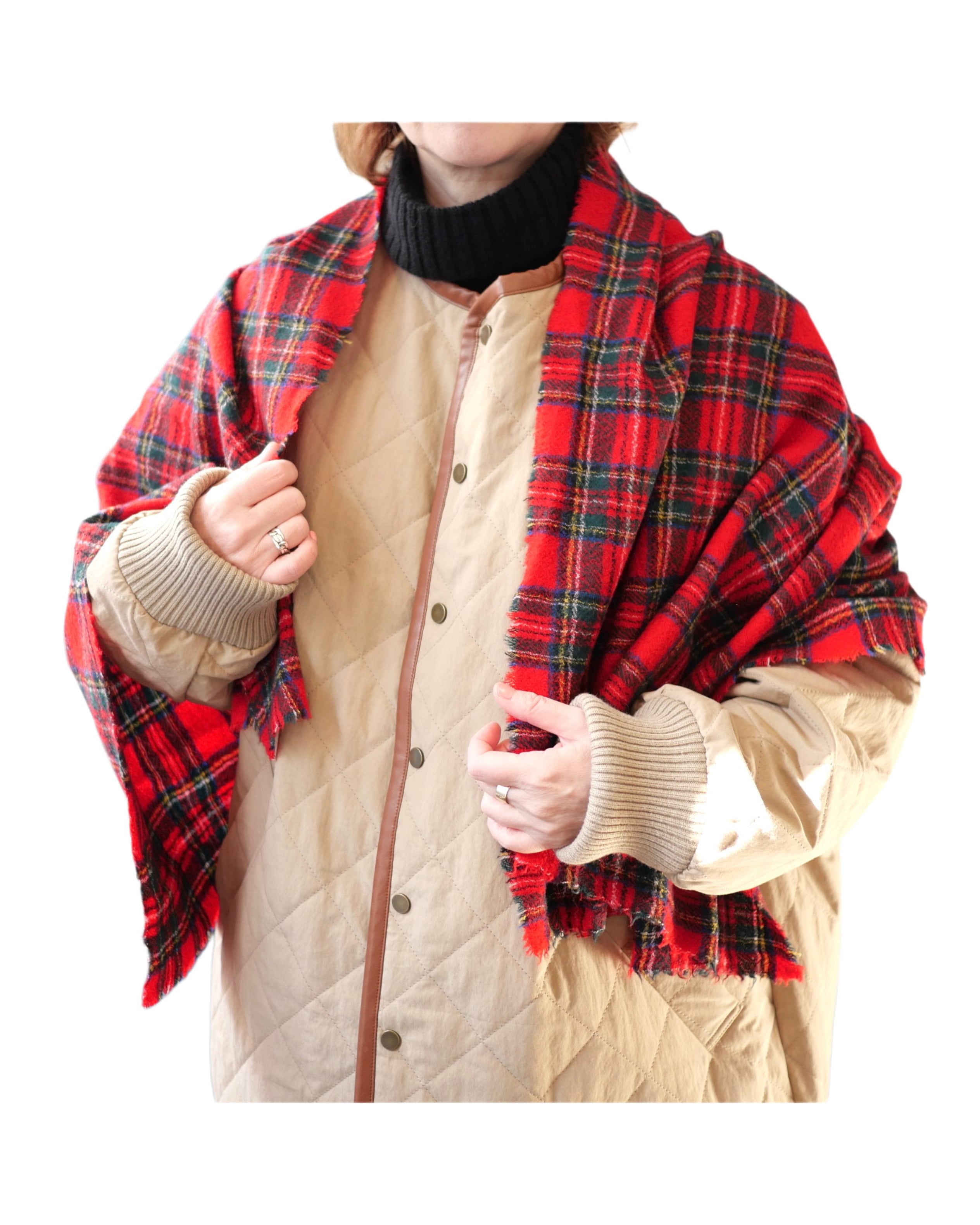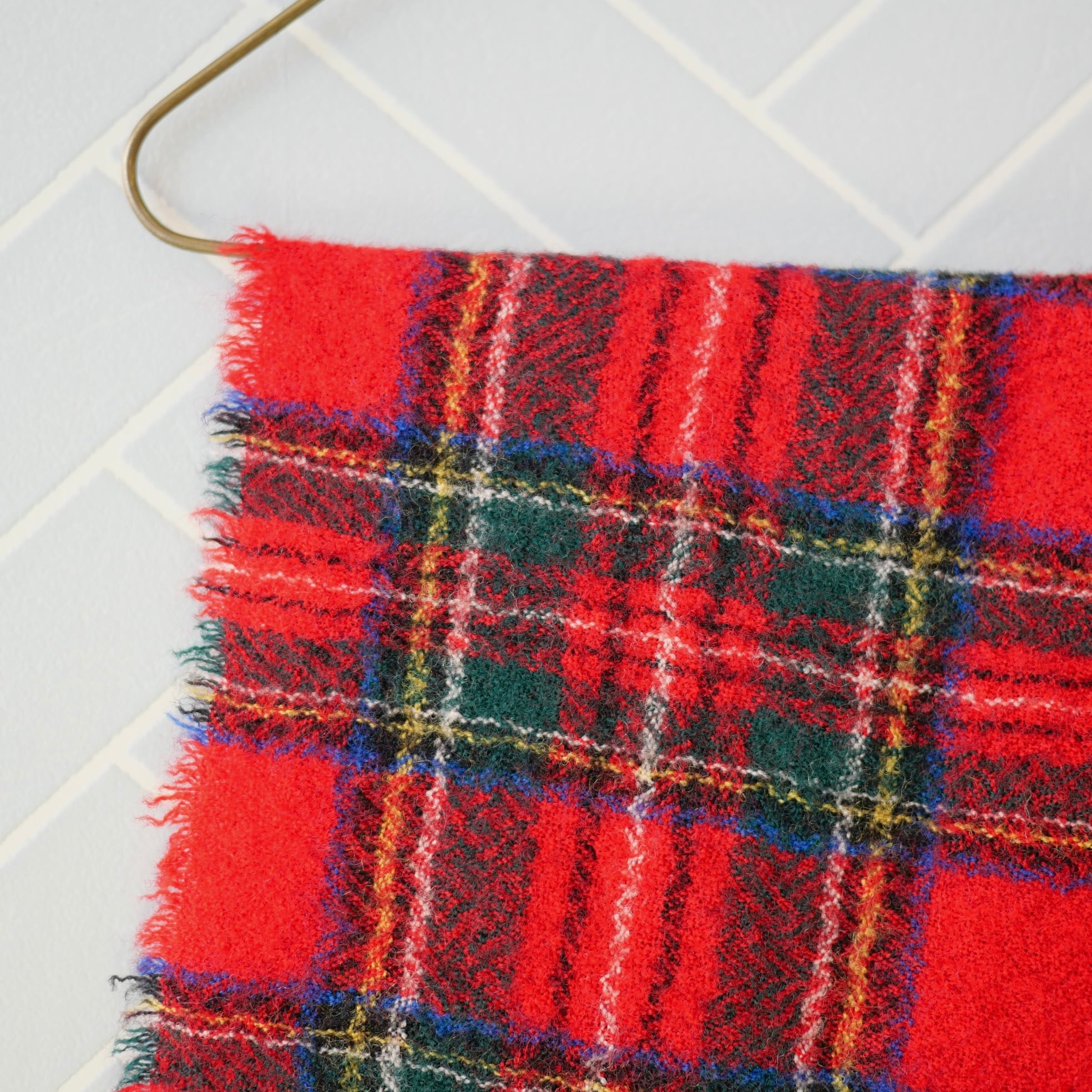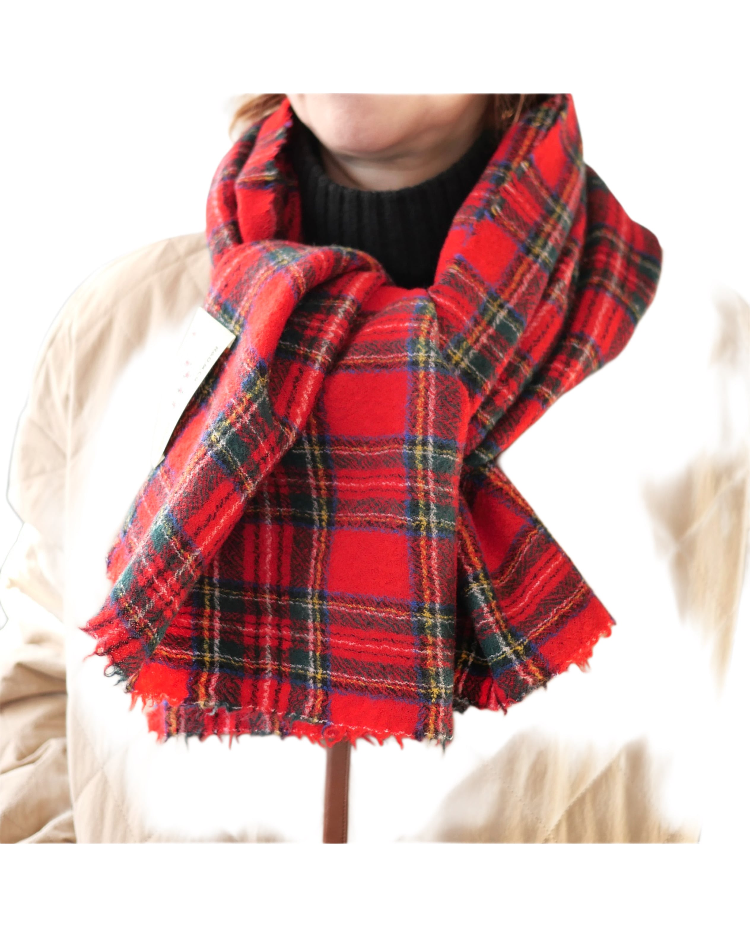 タータンチェックの柔らかいウール素材マフラー。ブランケットよりも小ぶりで巻きやすいサイズ感です。広げてストールとしても使える可愛いアイテムです。