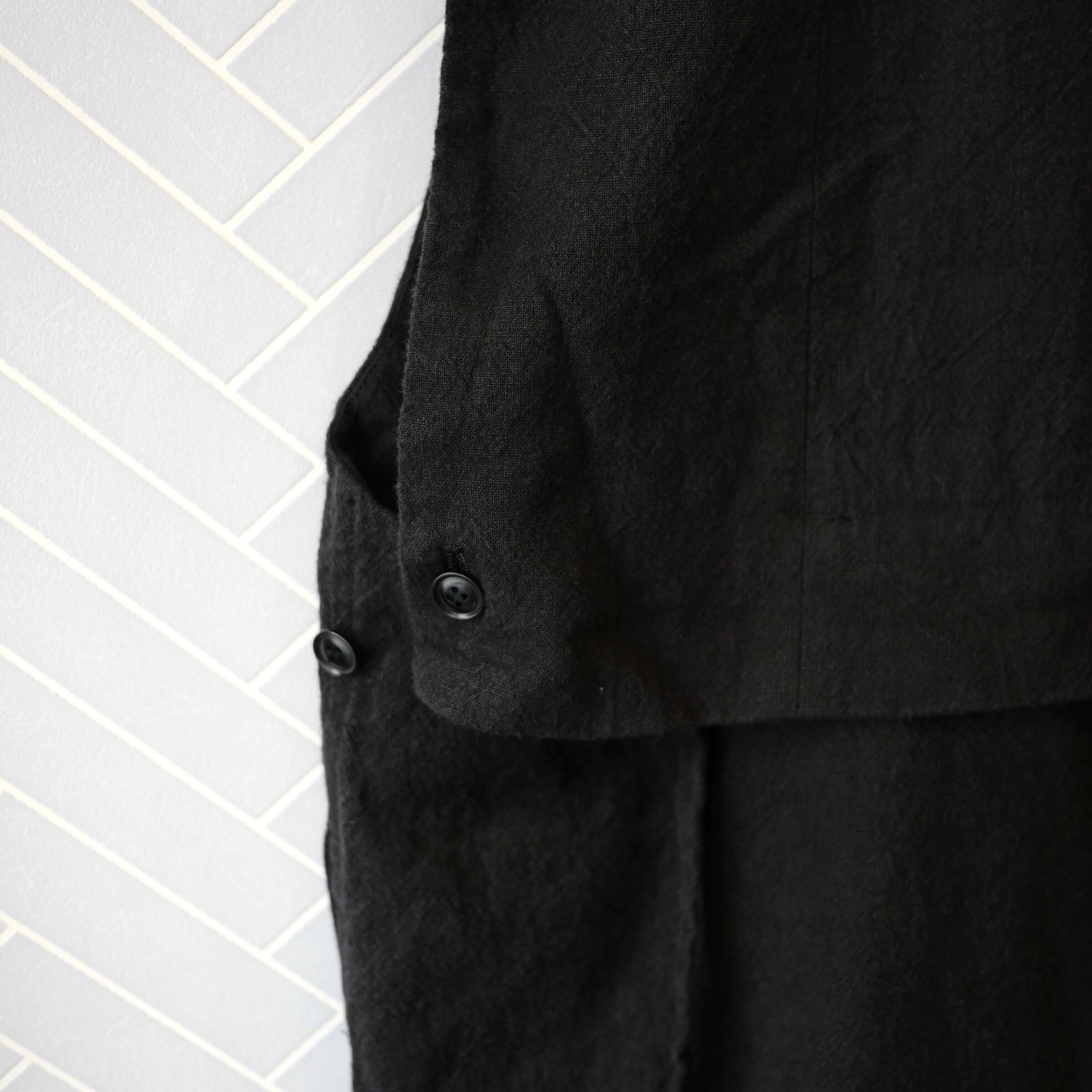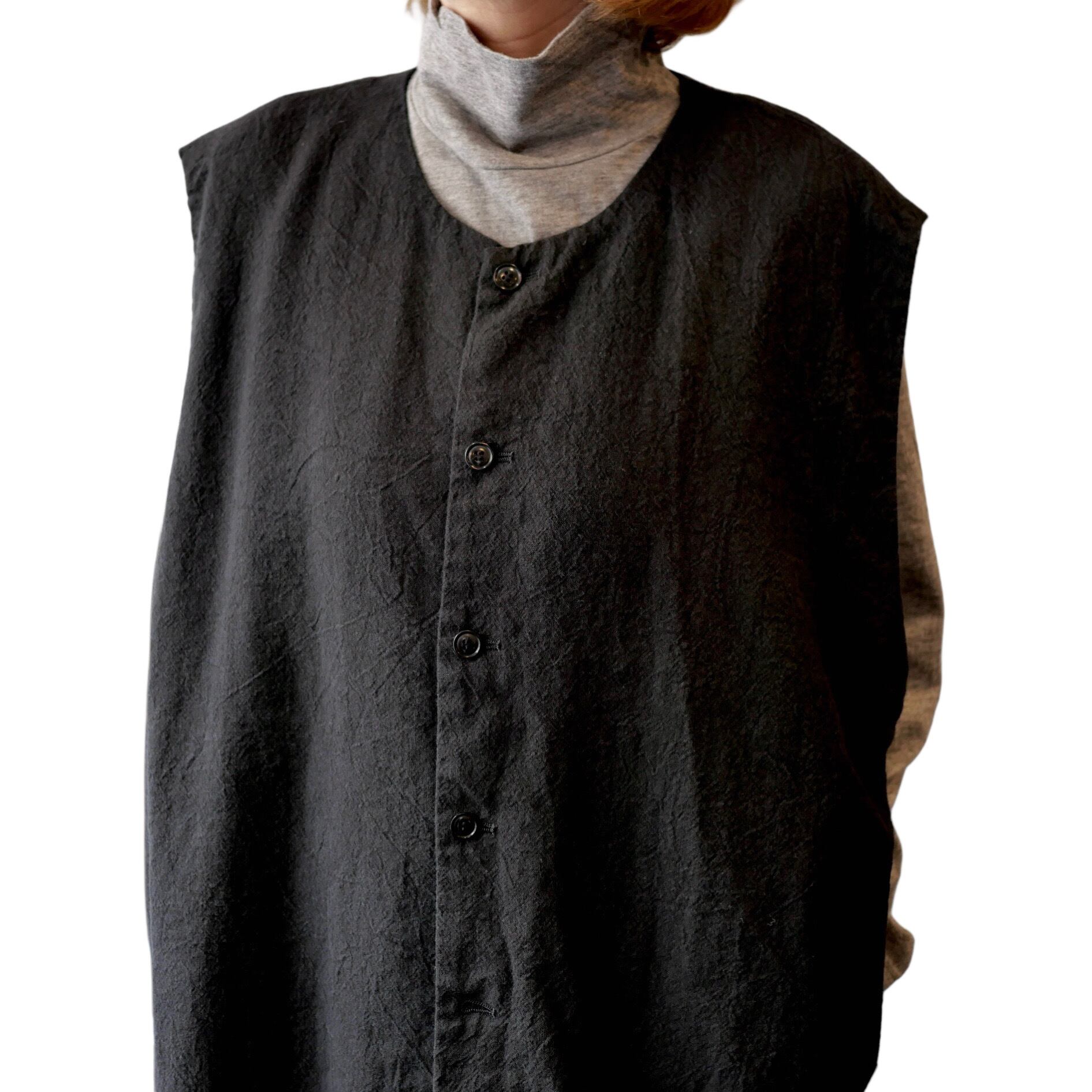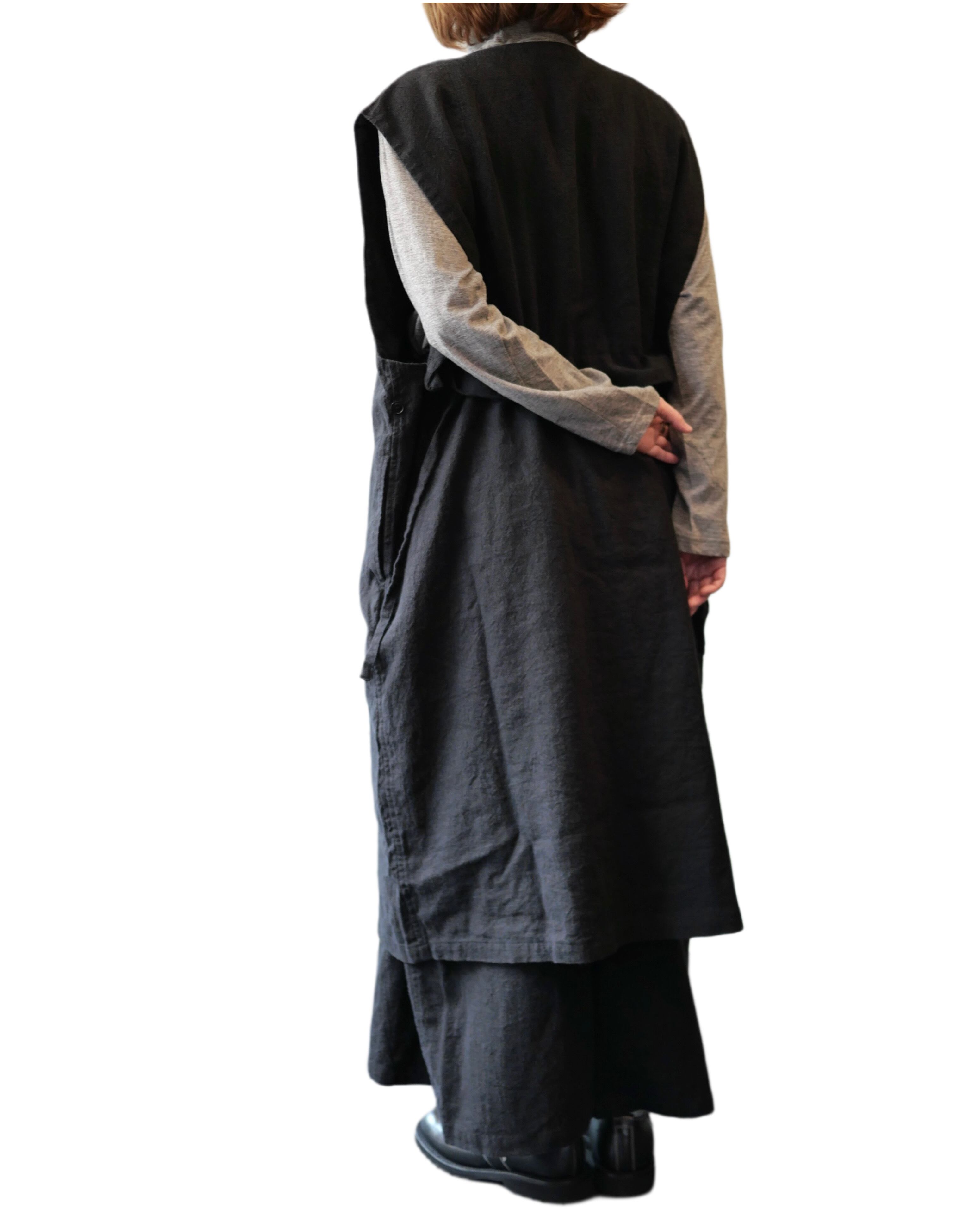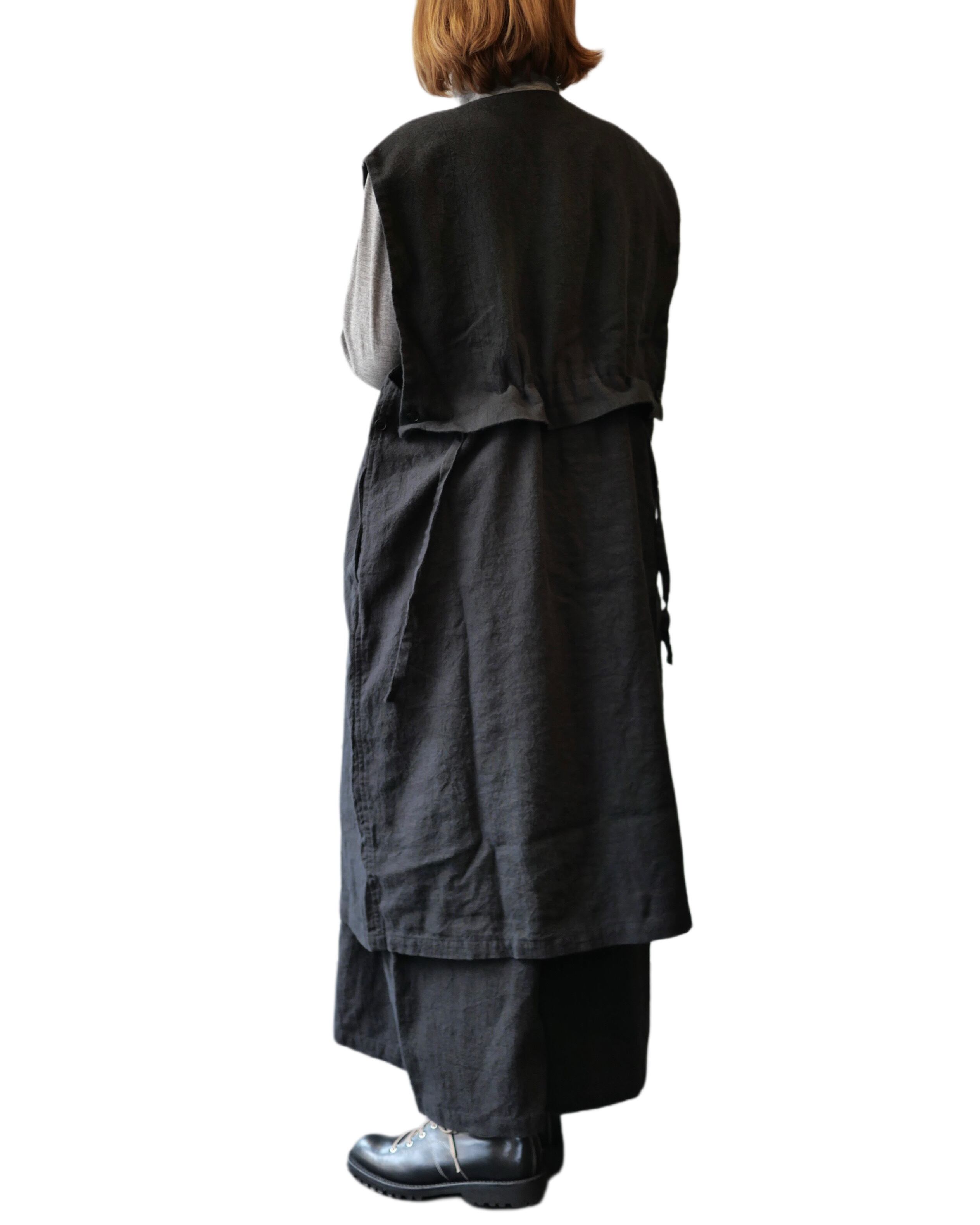 Vlas Blomme Washed Linen Ramie Wool ロングジレ Black