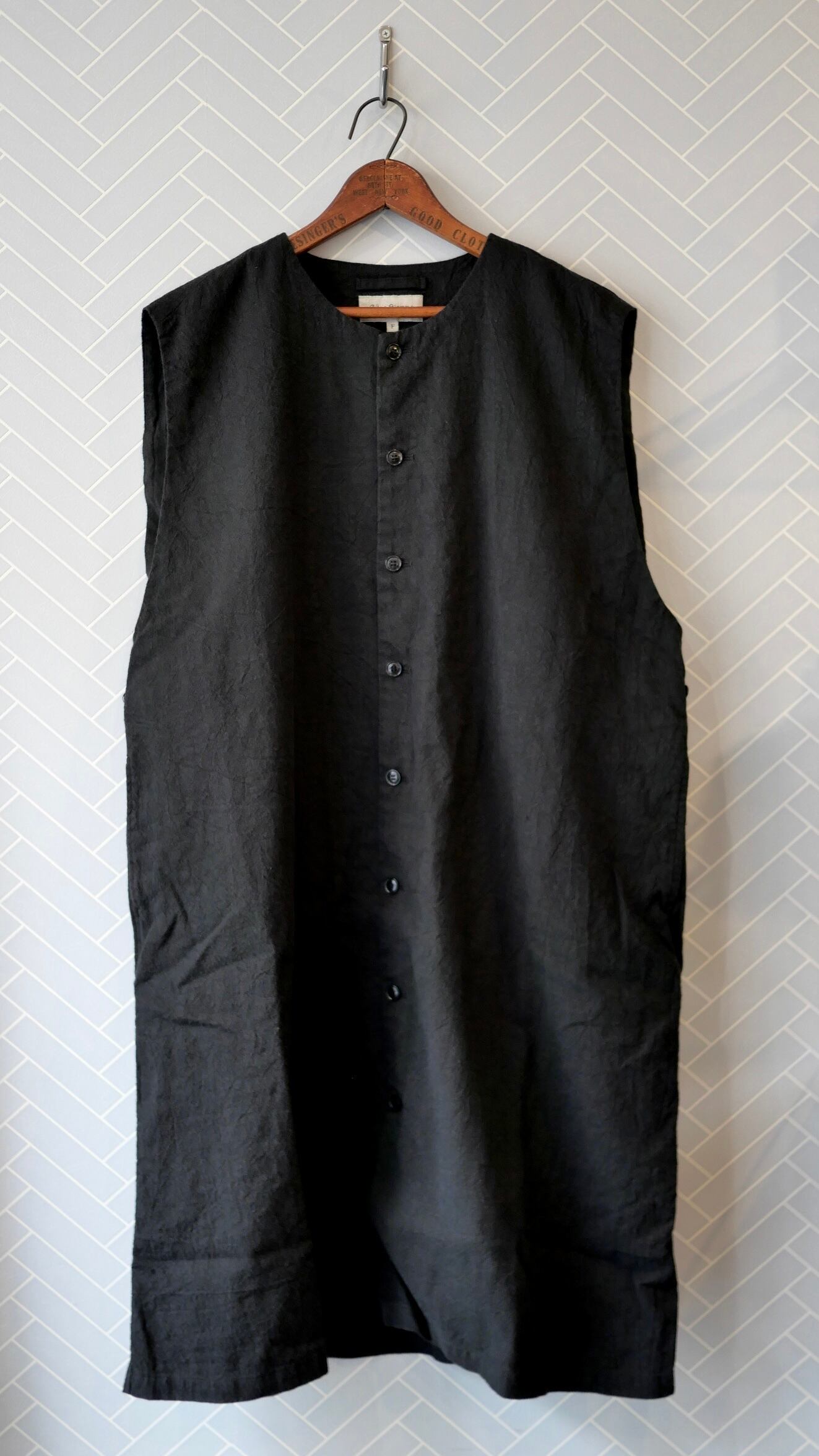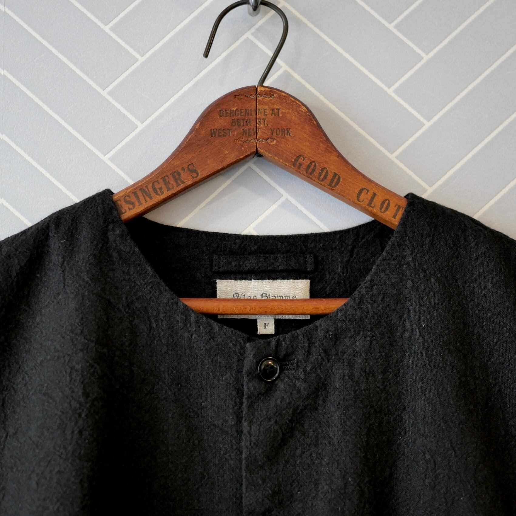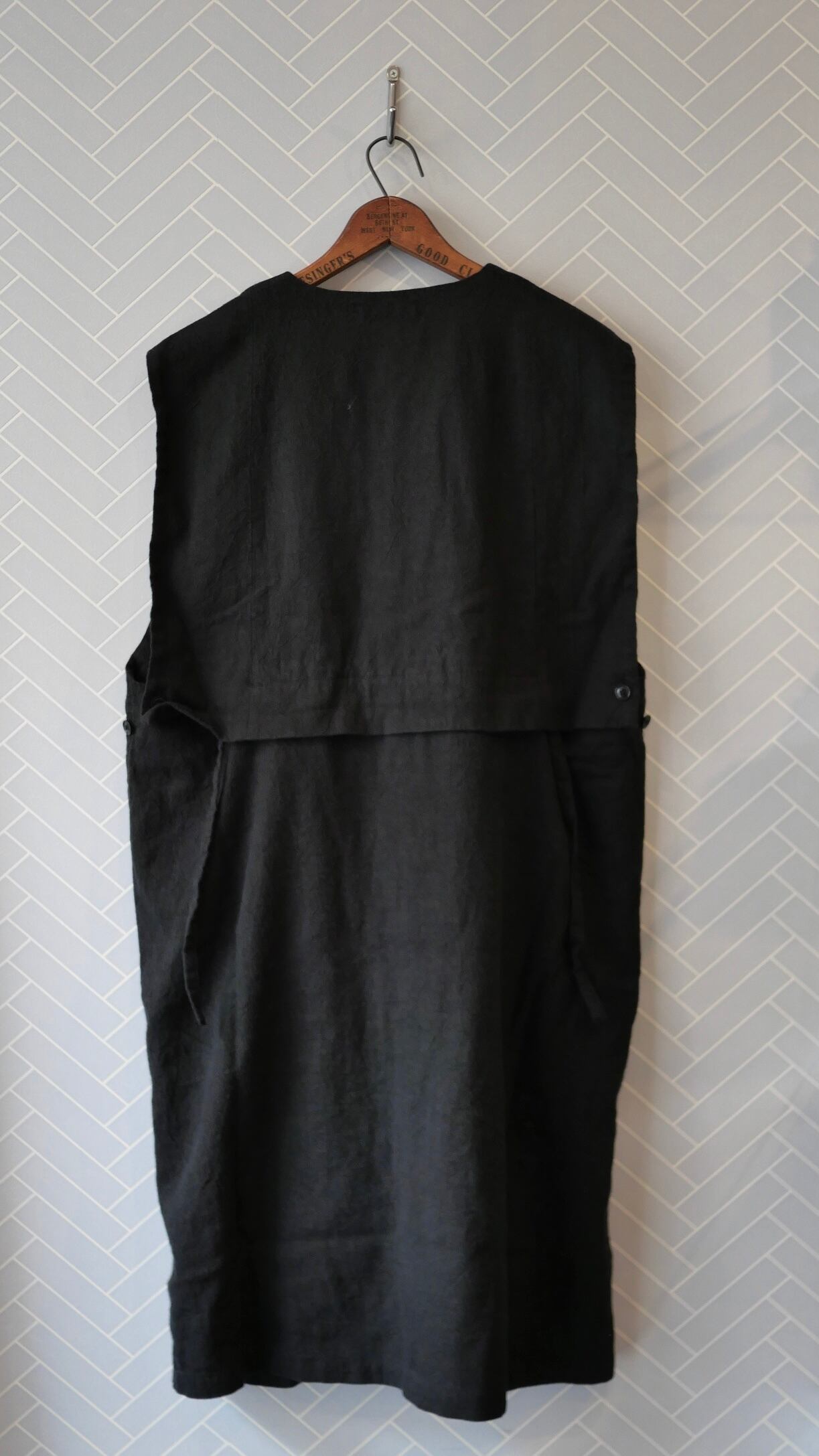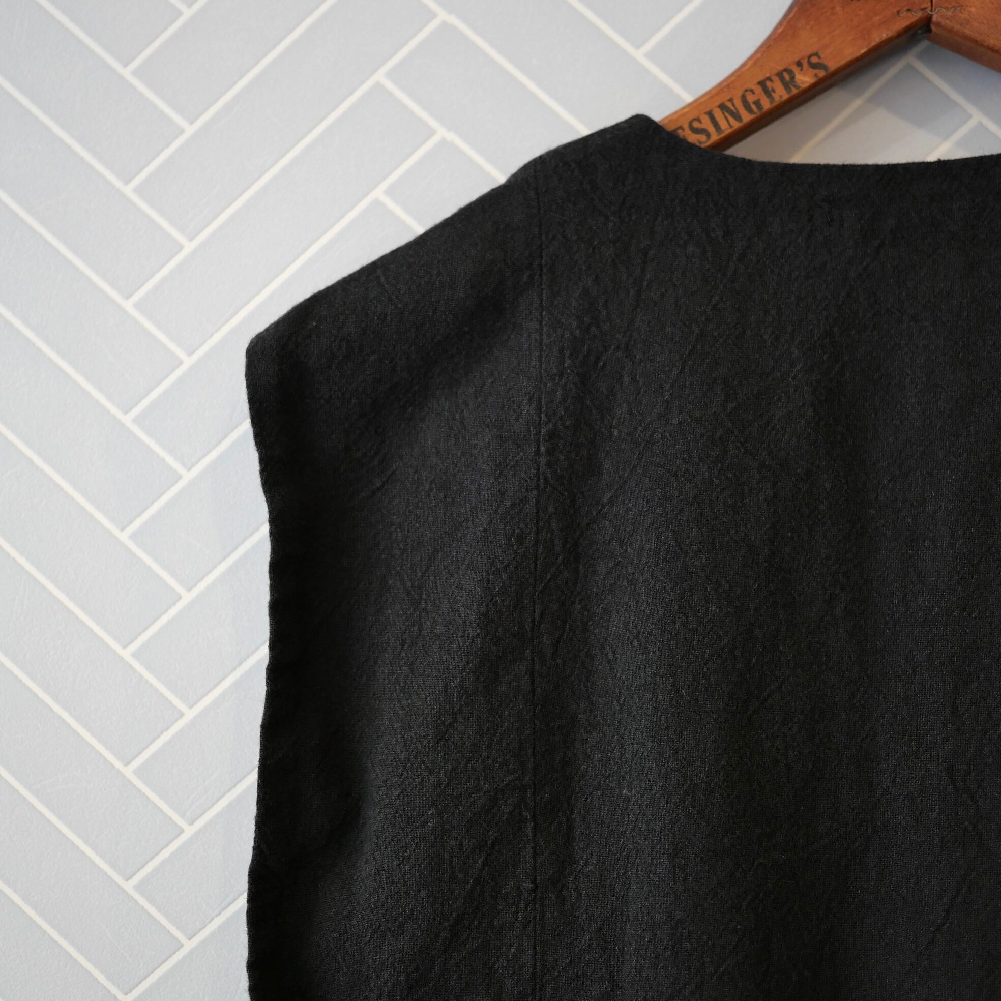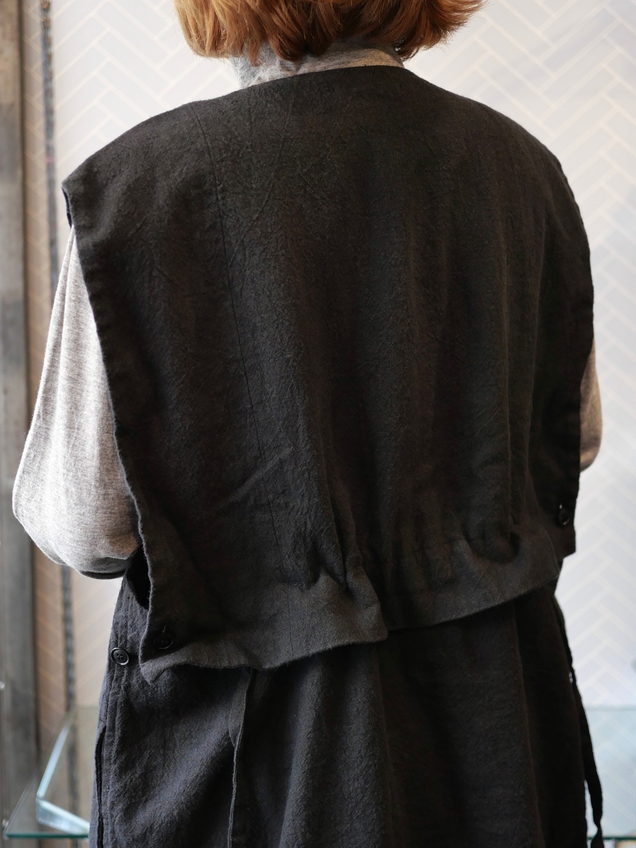 Vlas Blomme Washed Linen Ramie Wool ロングジレ Black