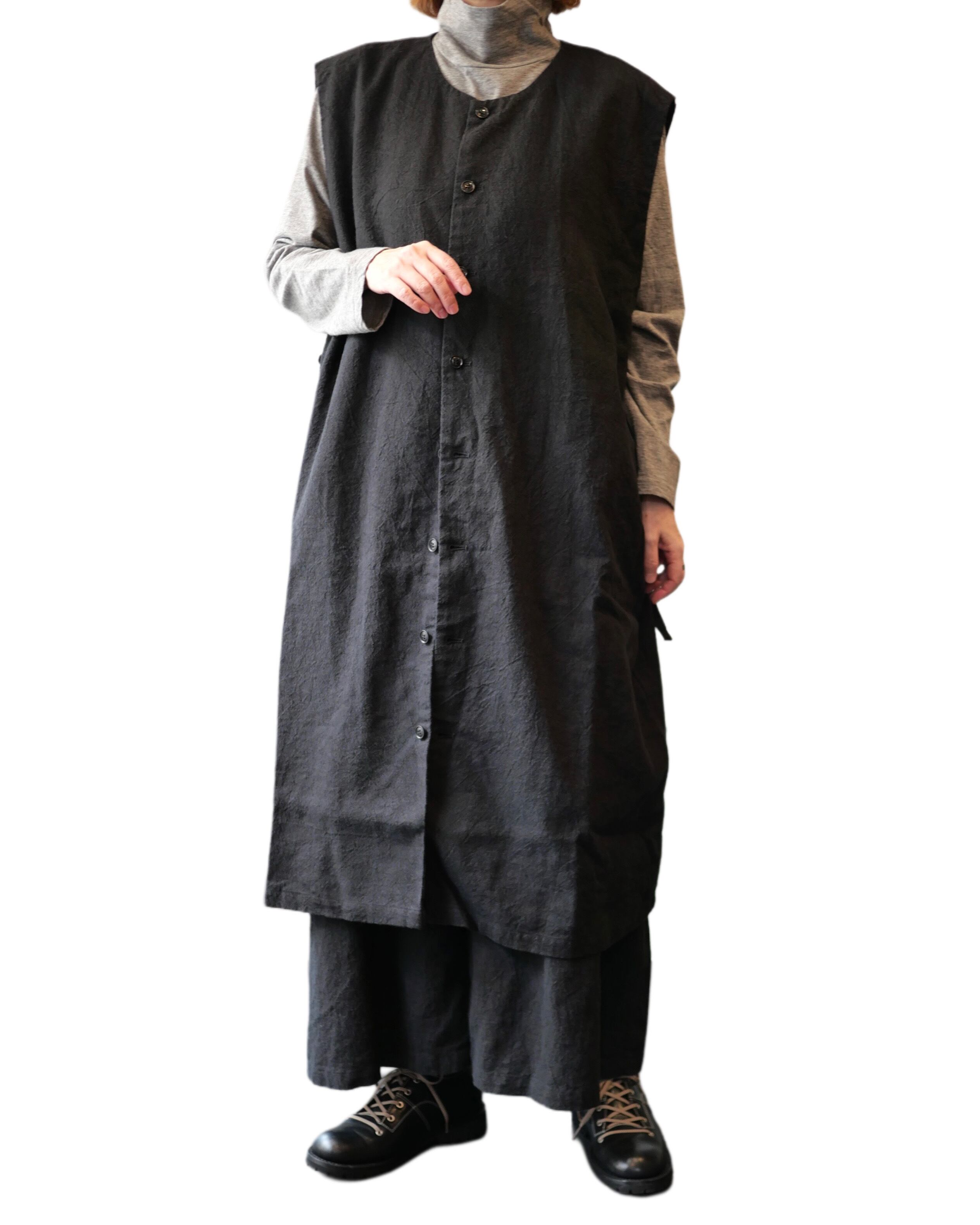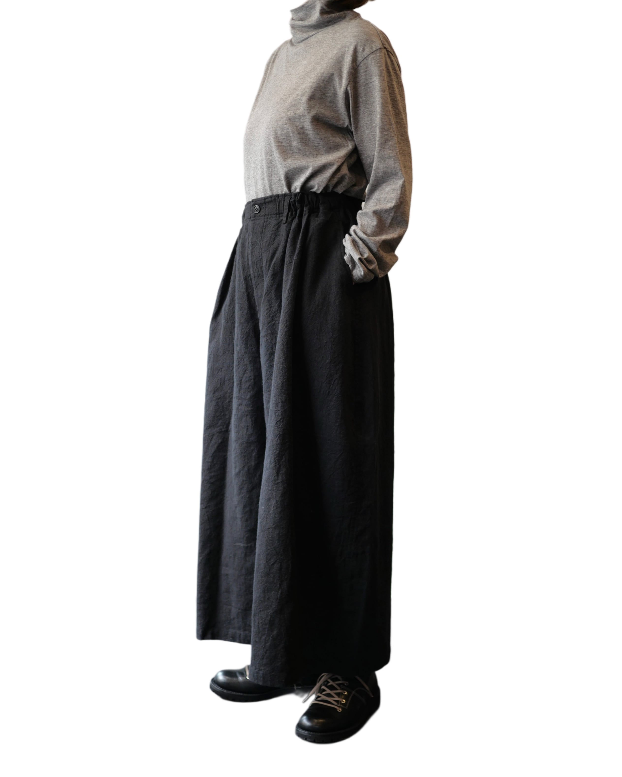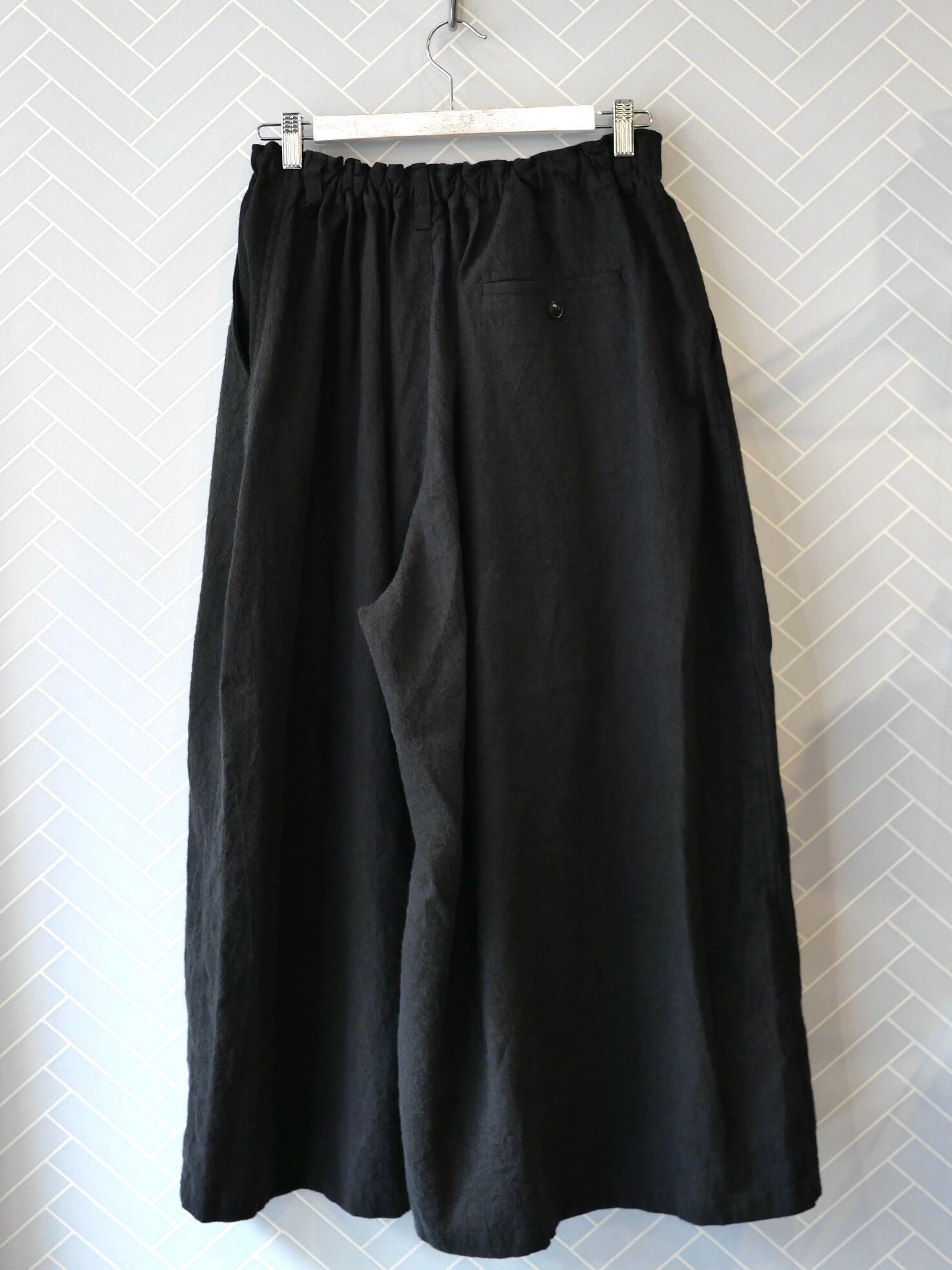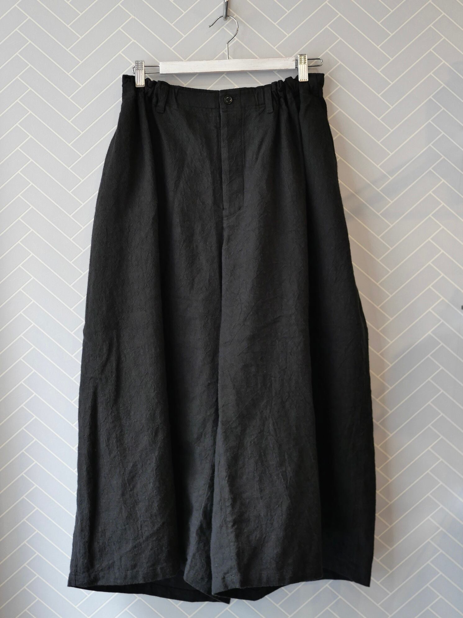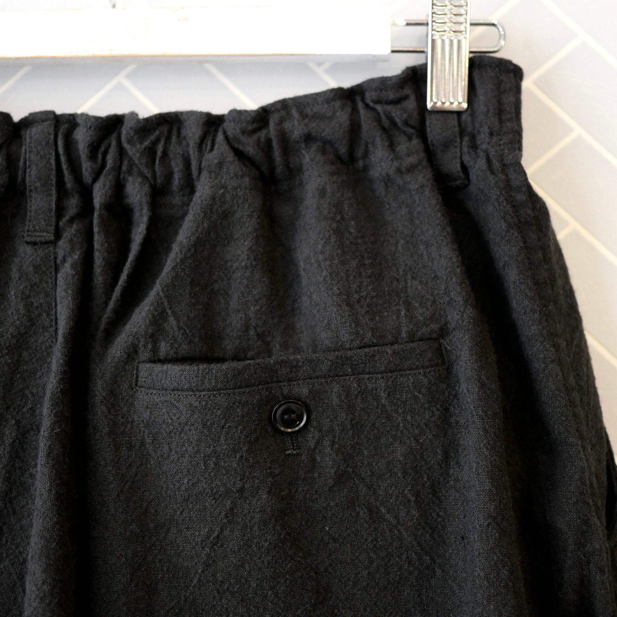 Vlas Blomme Washed Linen Ramie Wool カーブパンツ Black