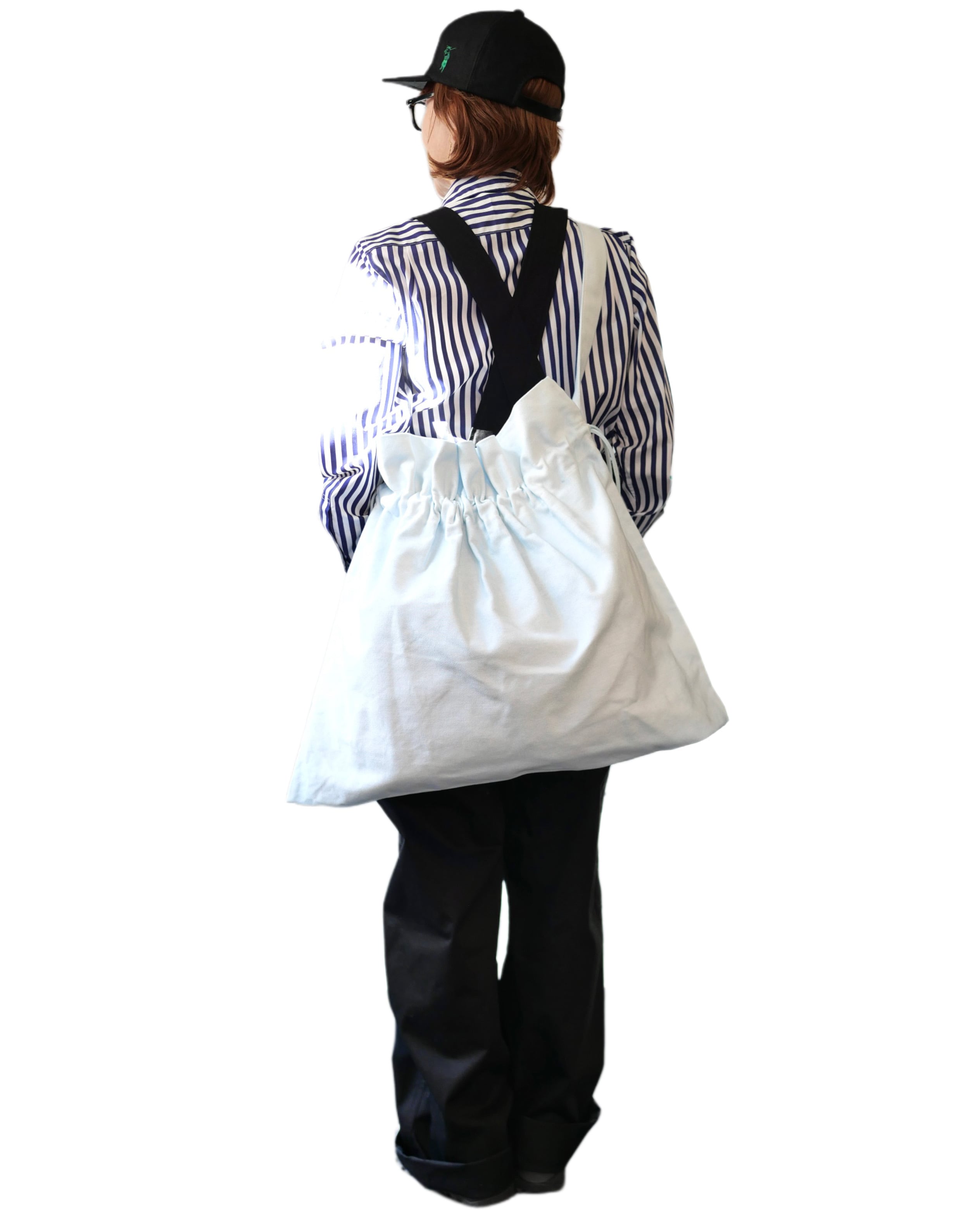 キャンバス素材の簡素なバック、しっかりとした厚い生地で型崩れしない質実剛健な作りです。斜めにかけると不思議と安定するデザイン、表側だけ立ち上がるギャザーで中身が見えにくく出し入れもしやすい作りとなっています。
