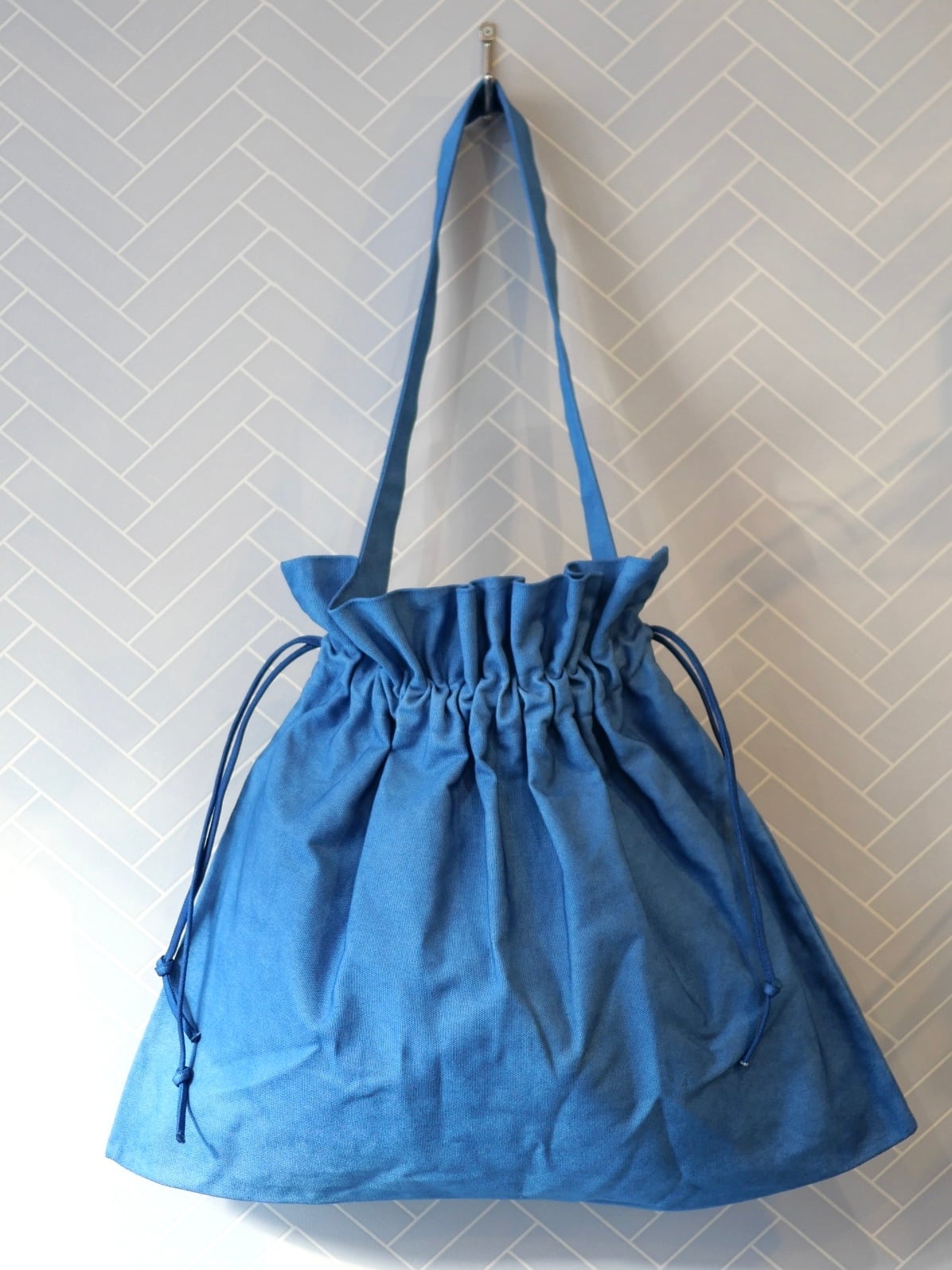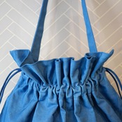 キャンバス素材の簡素なバック、しっかりとした厚い生地で型崩れしない質実剛健な作りです。斜めにかけると不思議と安定するデザイン、表側だけ立ち上がるギャザーで中身が見えにくく出し入れもしやすい作りとなっています。