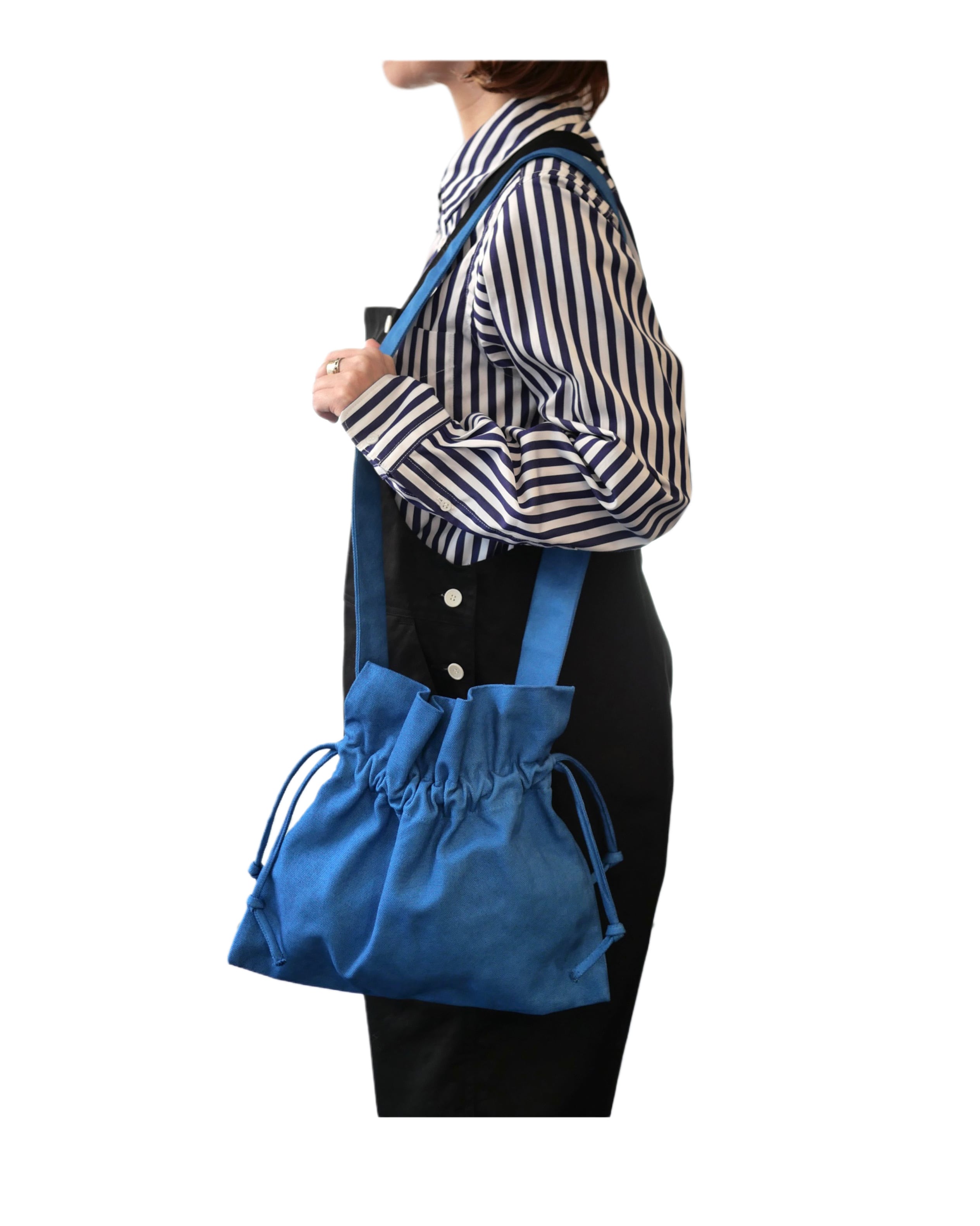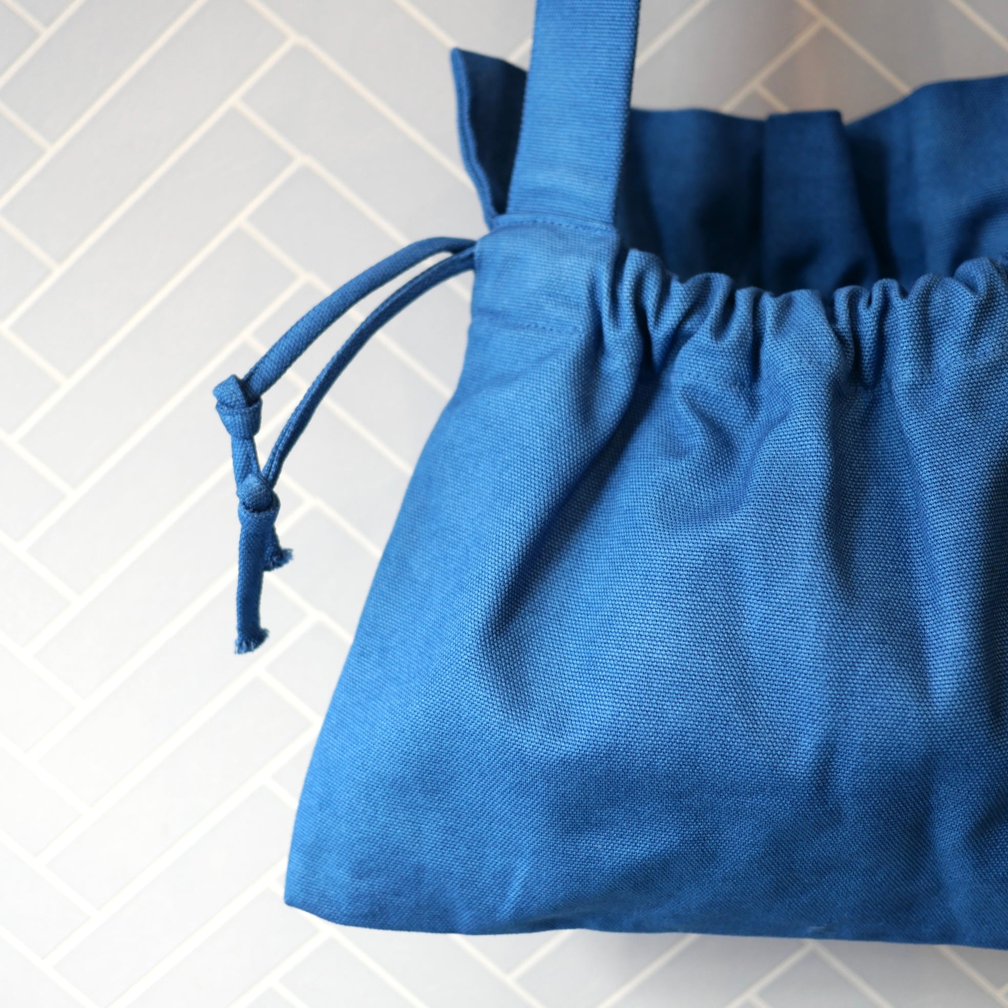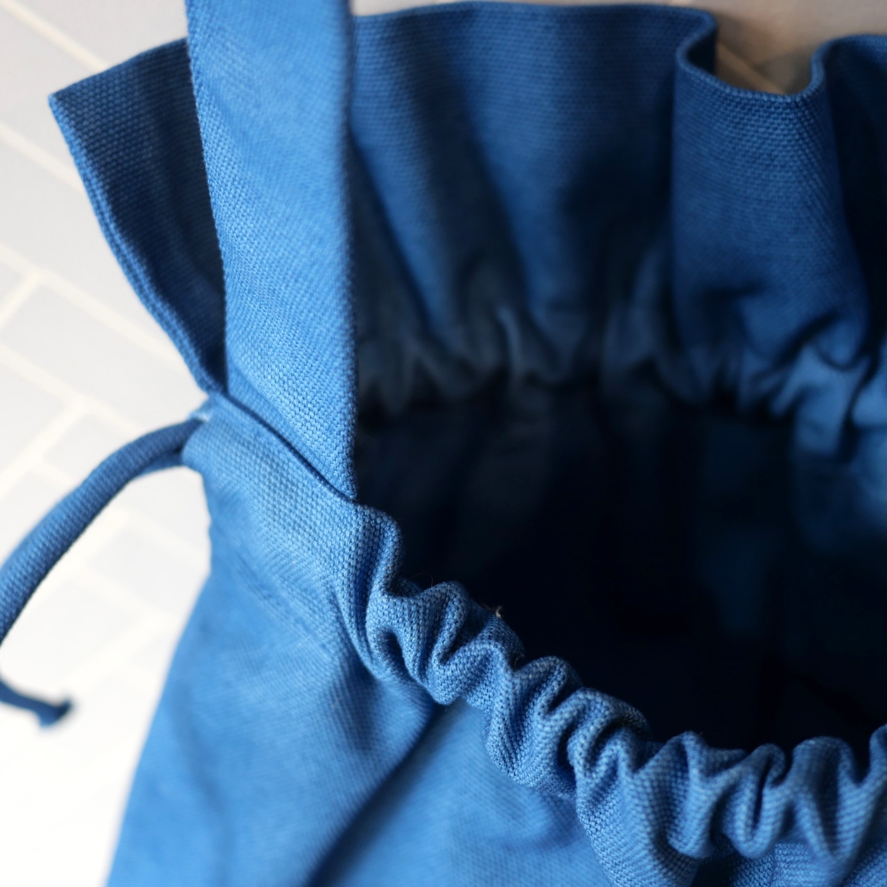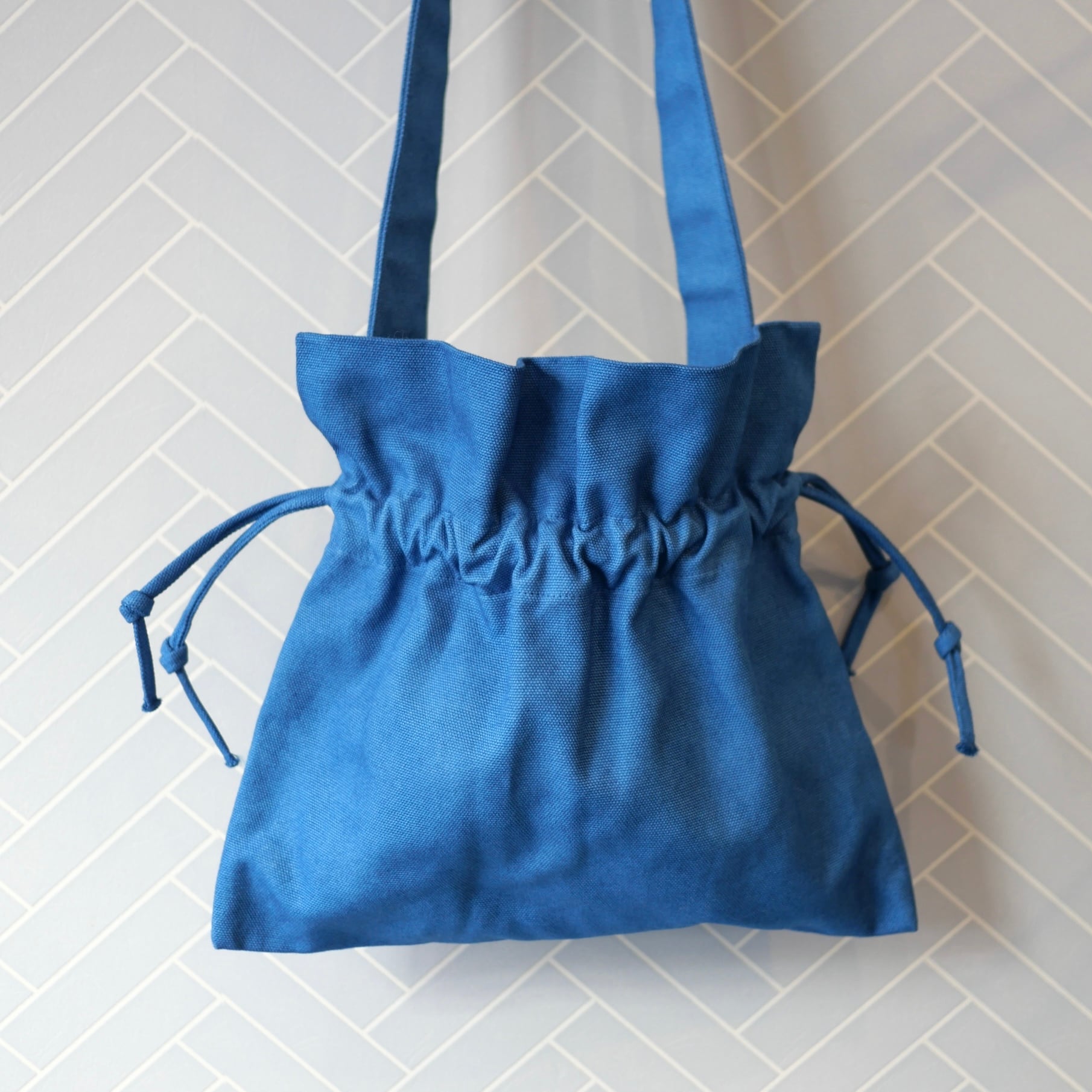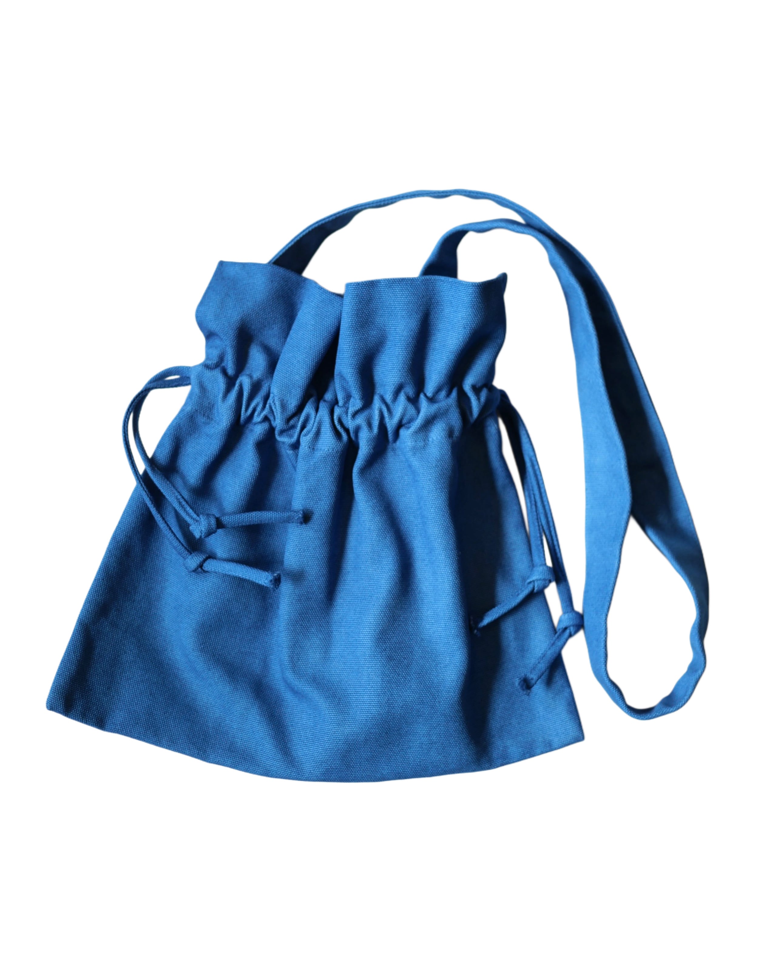 キャンバス素材の簡素なバック、しっかりとした厚い生地で型崩れしない質実剛健な作りです。斜めにかけると不思議と安定するデザイン、表側だけ立ち上がるギャザーで中身が見えにくく出し入れもしやすい作りとなっています。