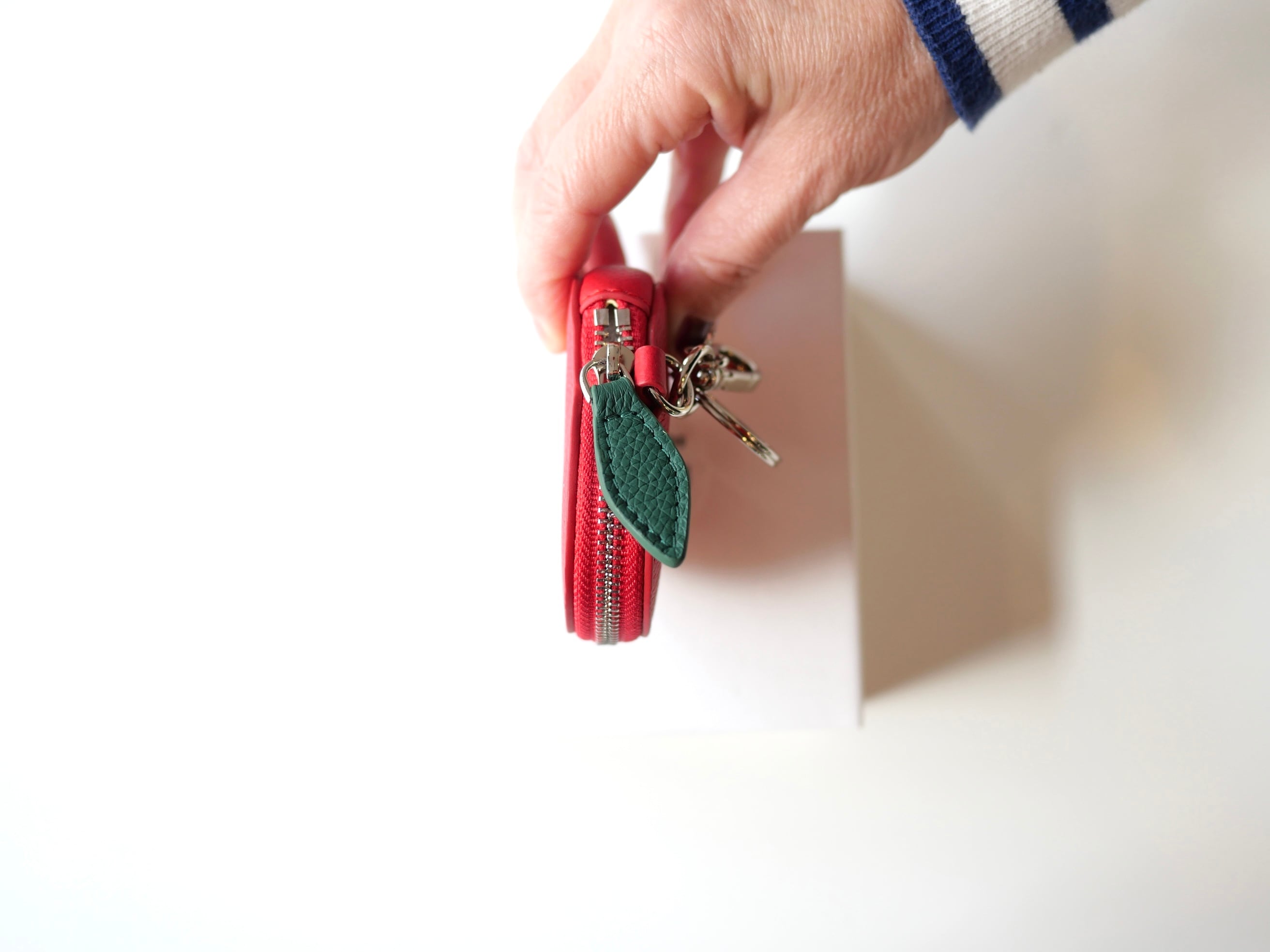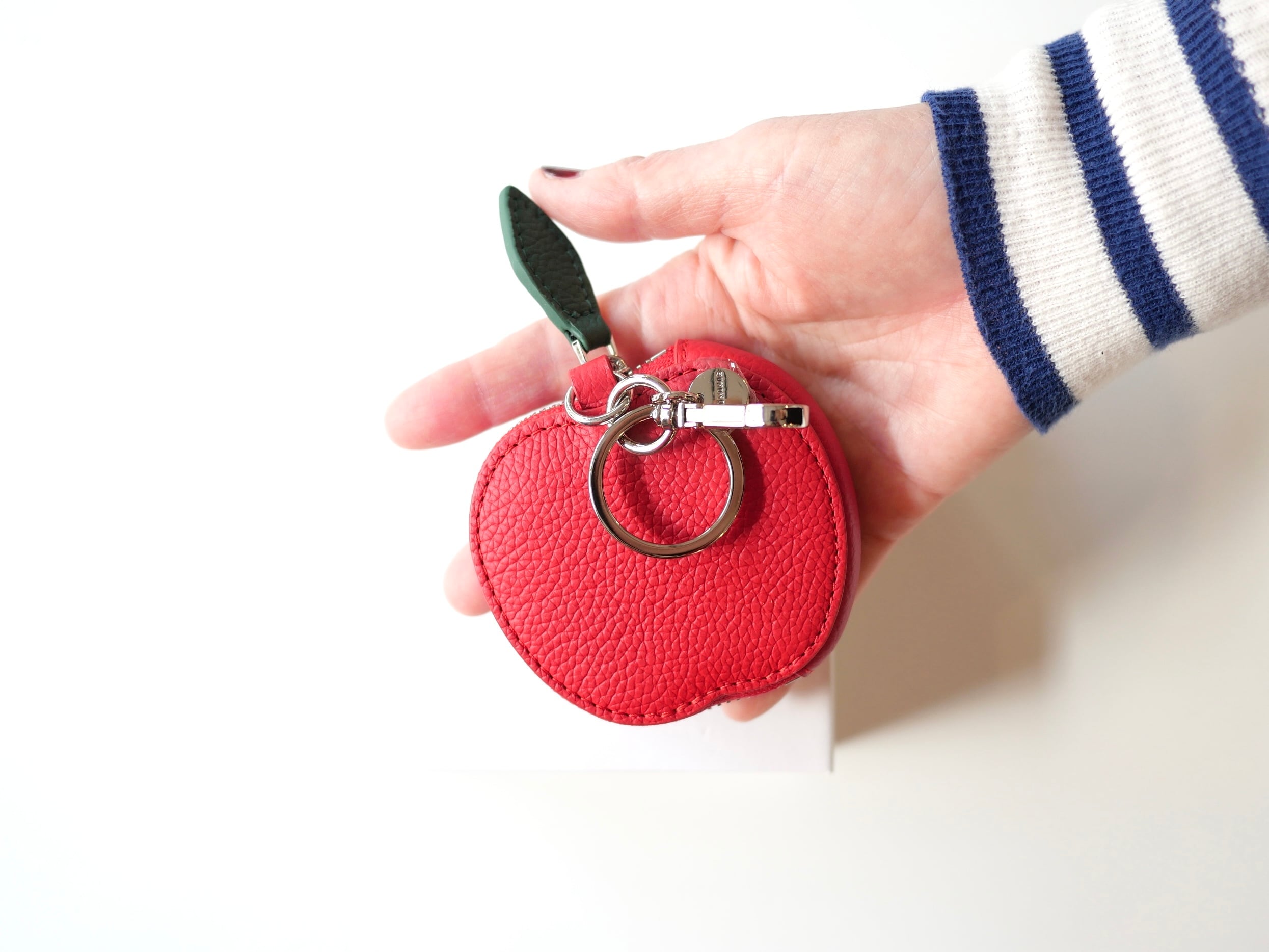 赤いりんご、中のレザーはりんごの身の色になっています。