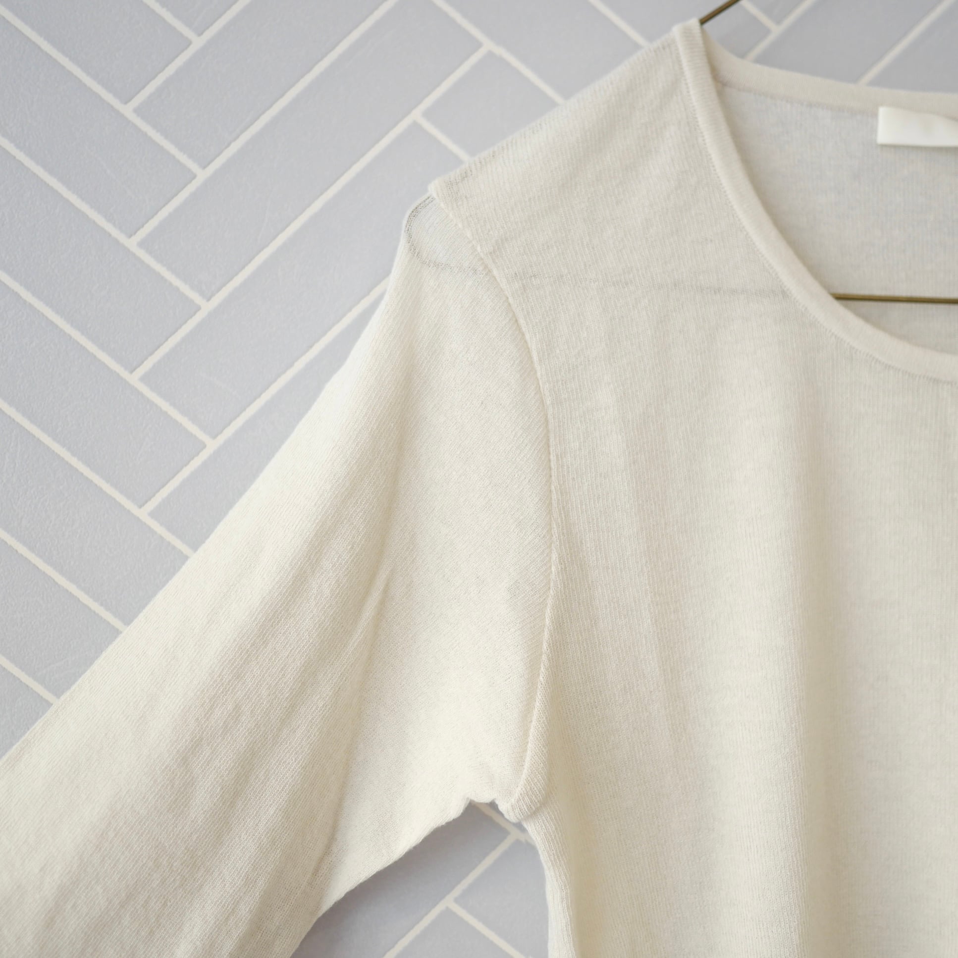 程よいフィット感とさらりとした着心地のシリーズ。首周りのゆったりとしたプルオーバーは、寒い時期はニットのインナーとして最適です。薄手で伸びが良く、ベストやカーディガンにも重ねてお使いいただけます。