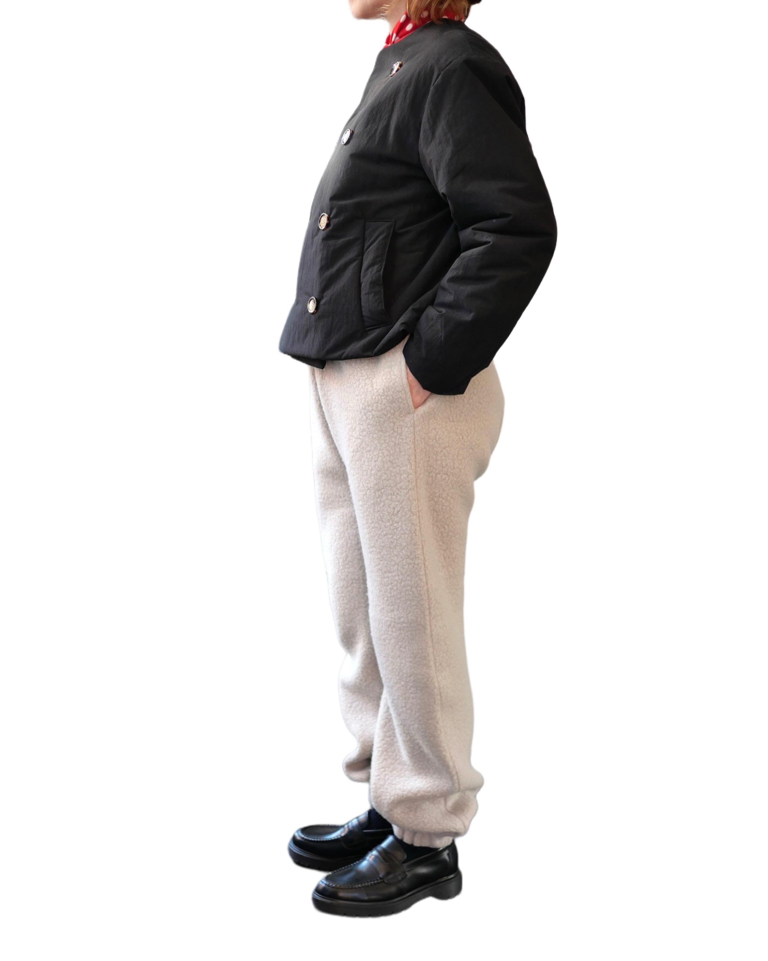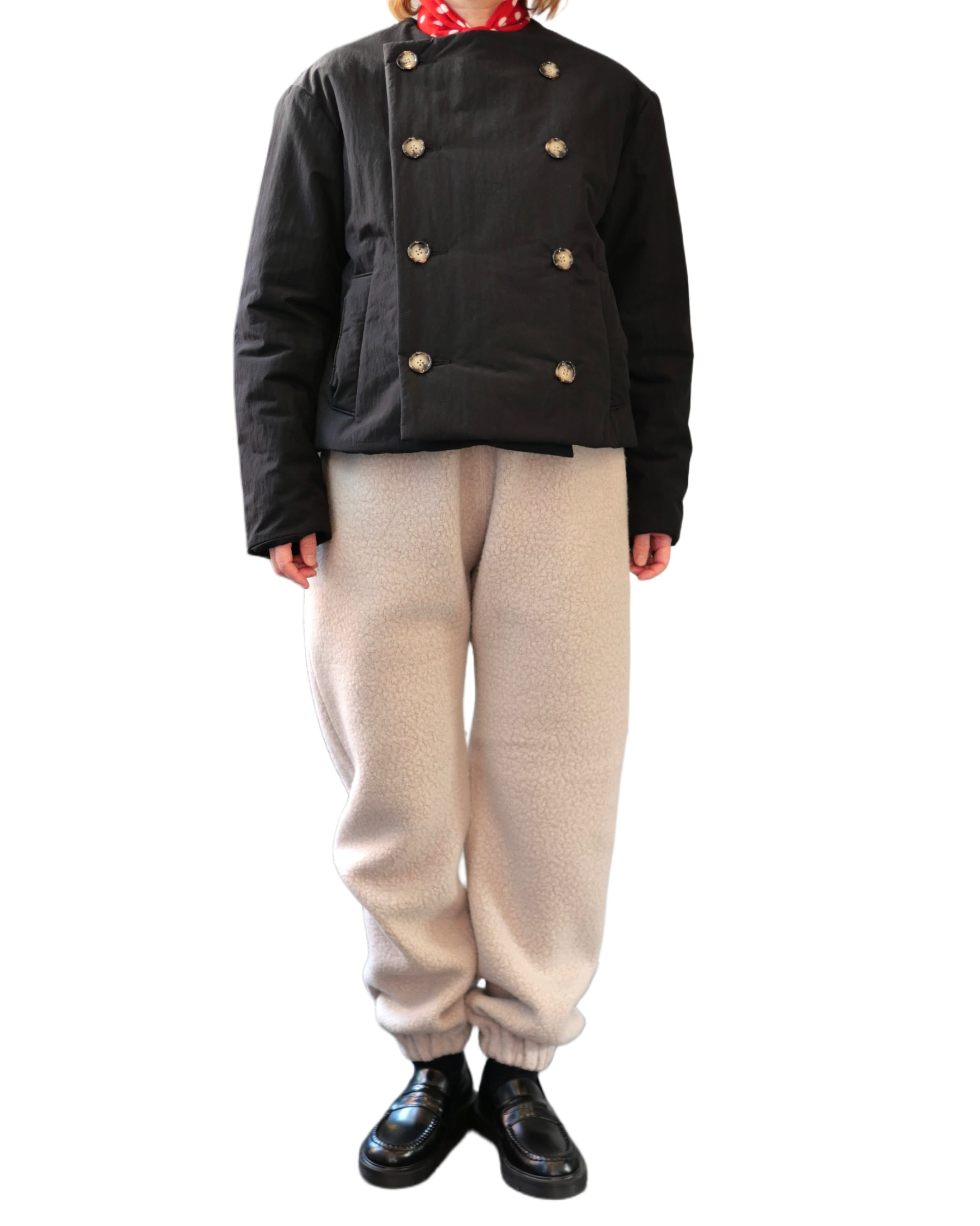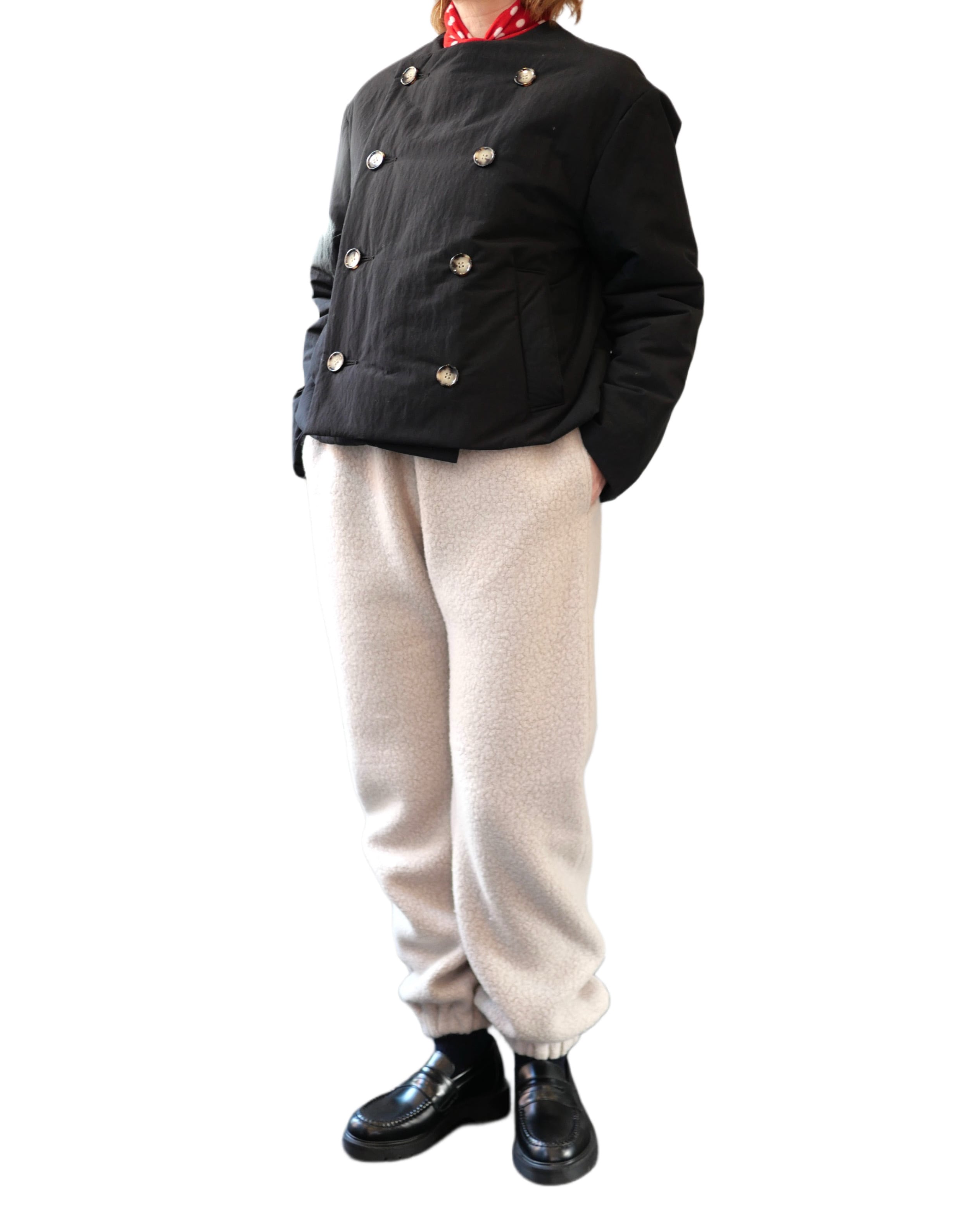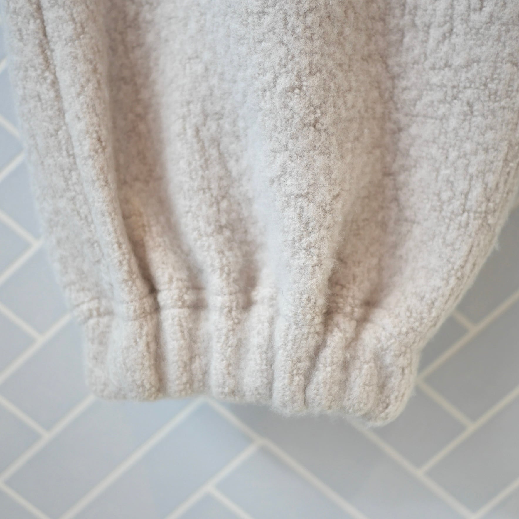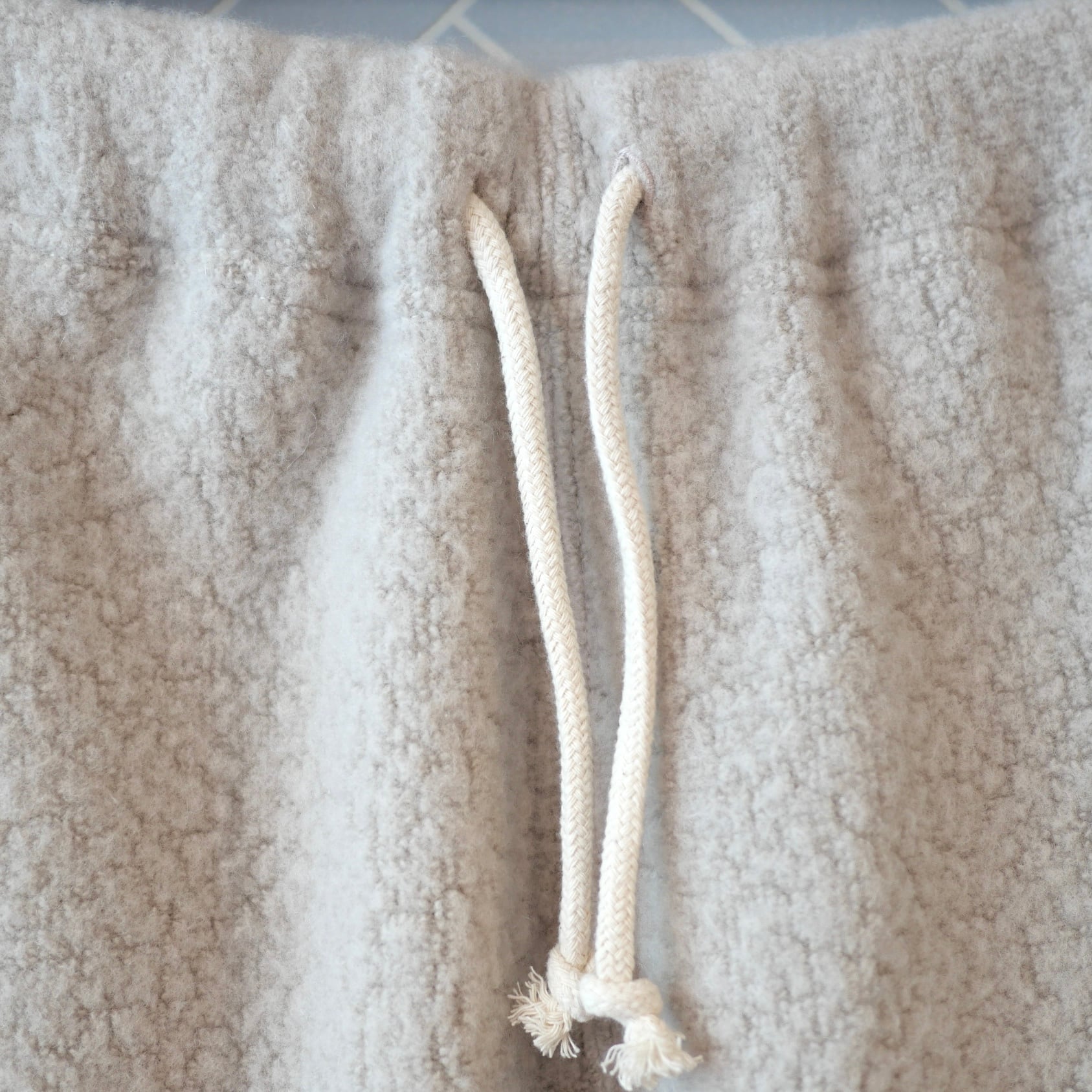 もこもこの羊みたいな生地、「シープボア」でできたスウェットパンツ。形の良いスウェット型なので色んなトップスと合わせていただけます。なんといってもとても暖かいので、寒がりさん、気温の低いところにお住まいの方に大変おすすめです。ゆったりめのフリーサイズになっています。