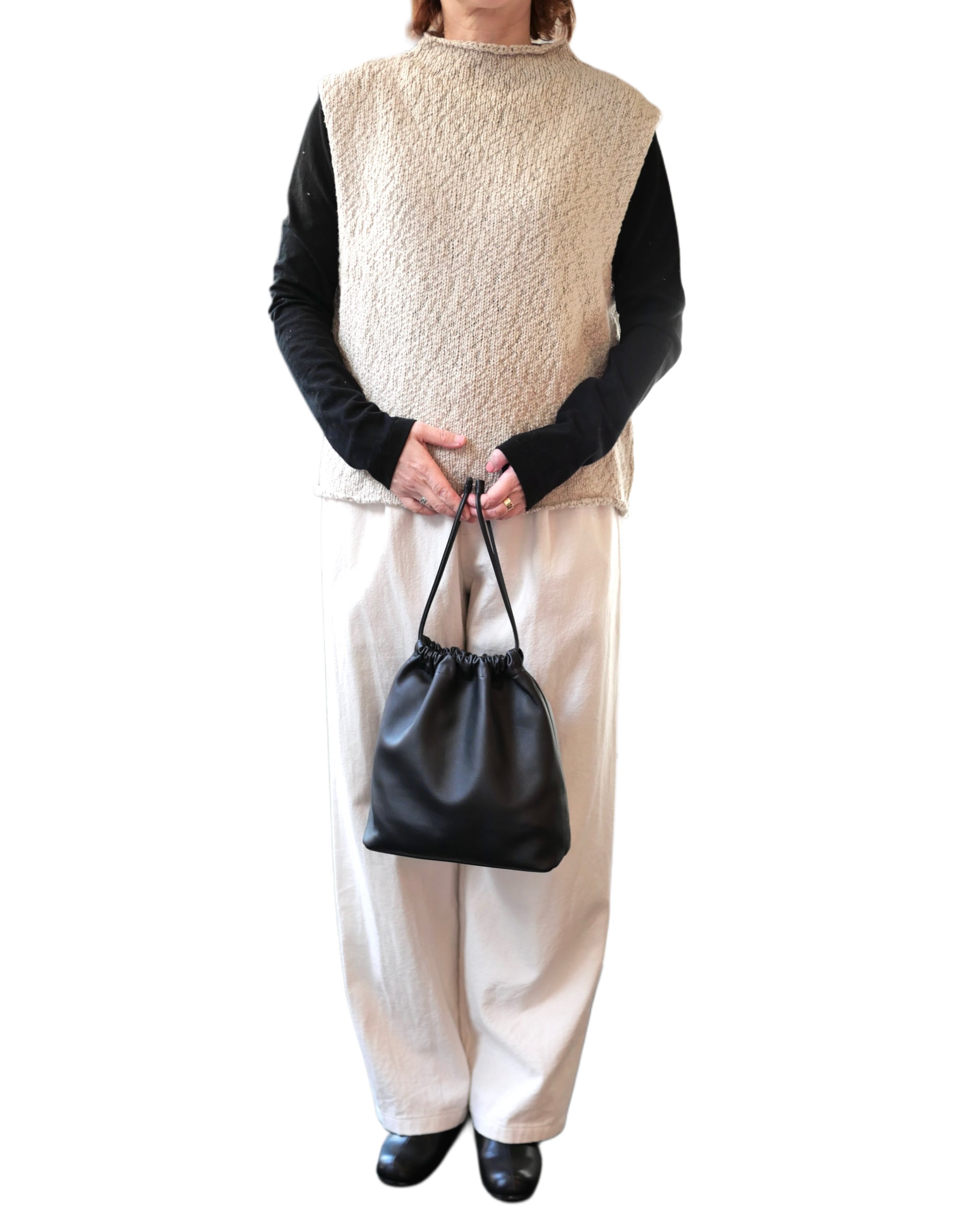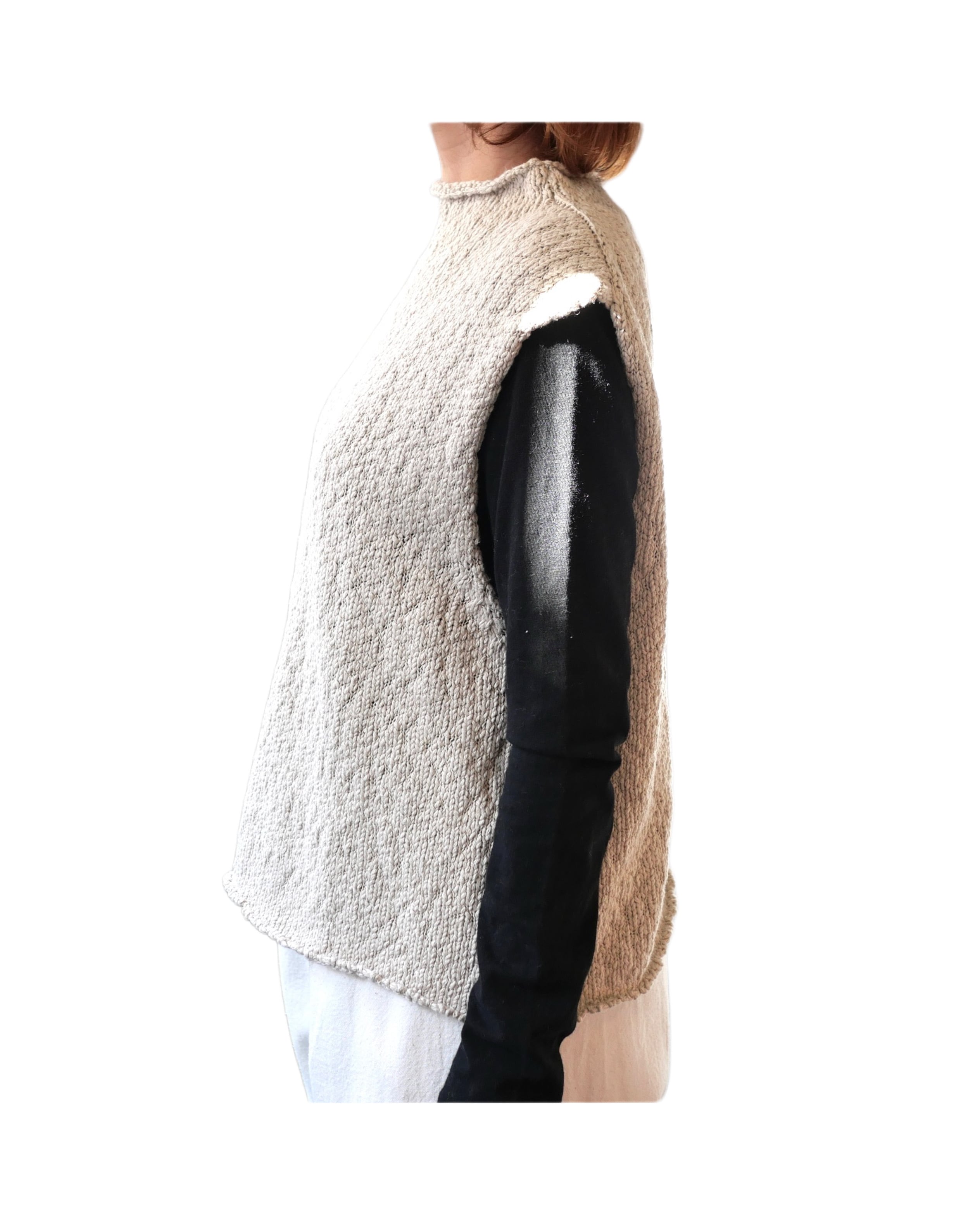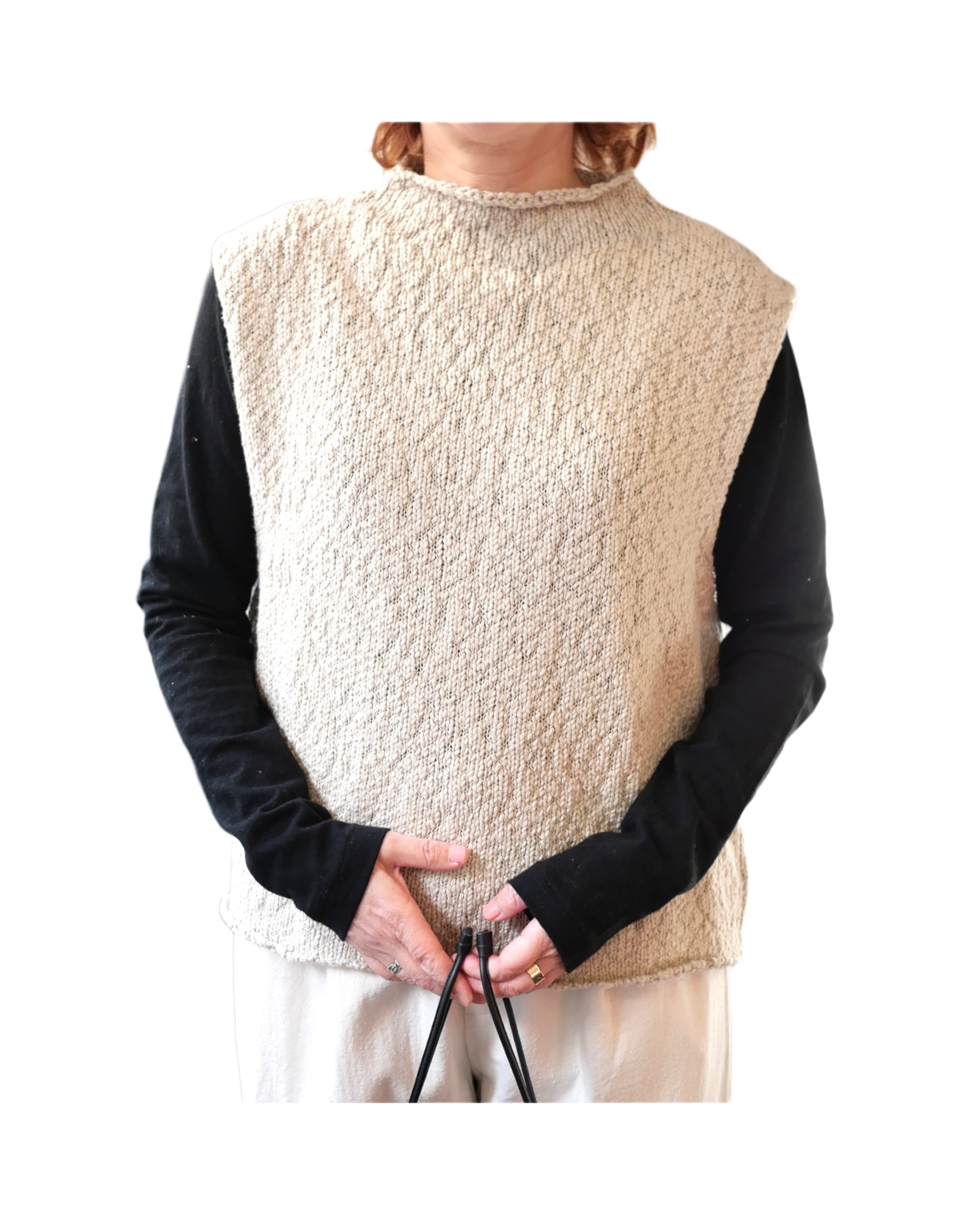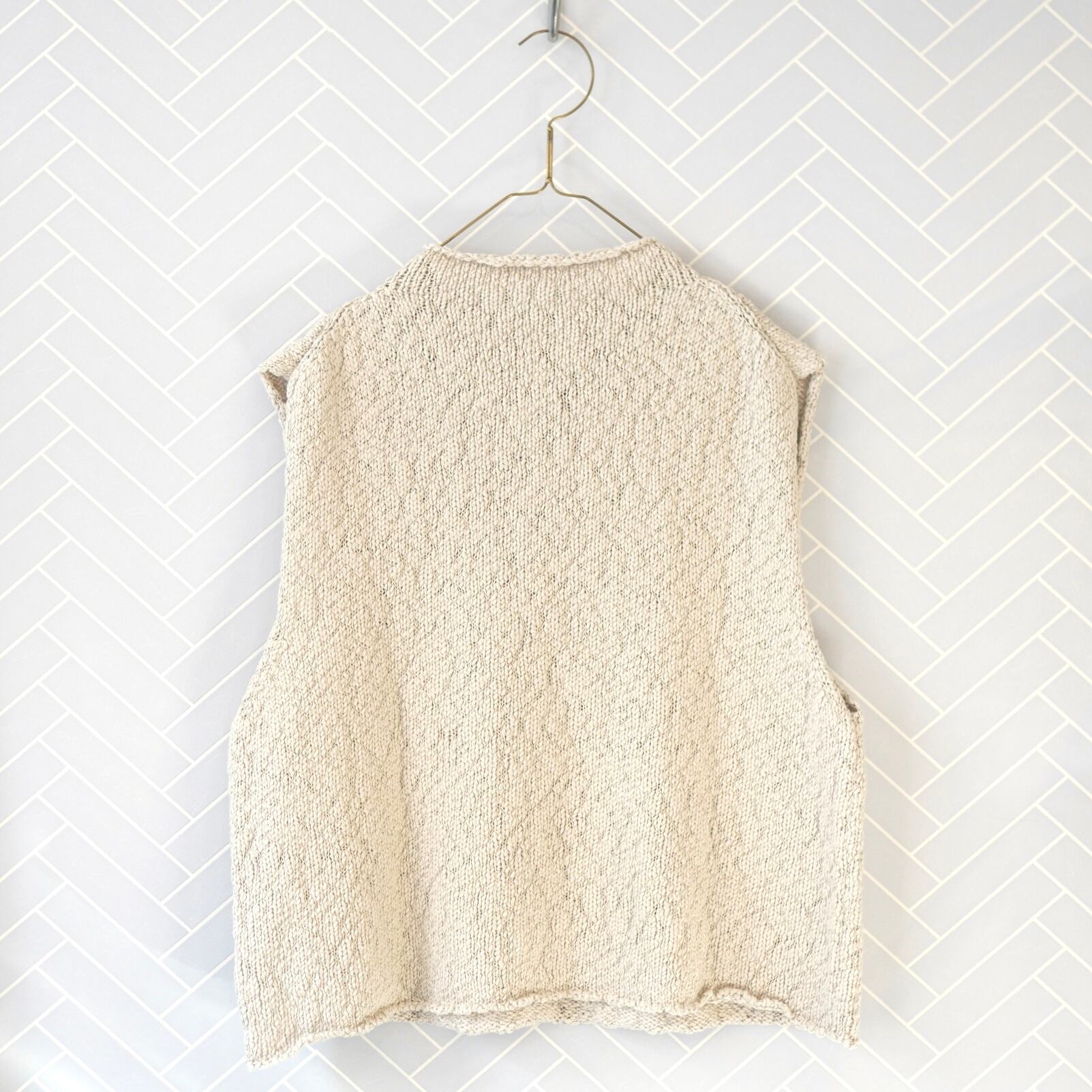 オーガニックコットンのふくらみのある糸を使用した、軽く柔らかな風合いが特徴的な素材。シンプルに着こなしても存在感のある表情豊かなニットベストです。