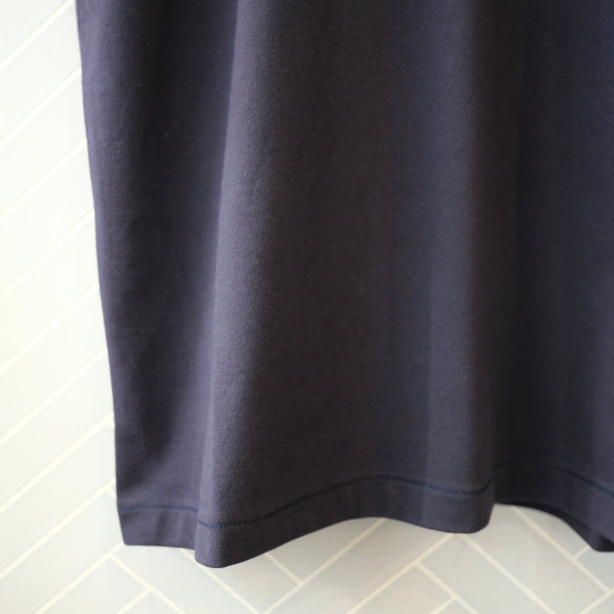 OLDMANSTAILOR 定番のスヴィンコットンTシャツ。スヴィンコットンは繊維が長く耐久性に優れた素材。シルクのような光沢と滑らかな肌触りが特徴的です。メンズTシャツらしい肉厚さがあり、透けにくいのも嬉しいポイントです。