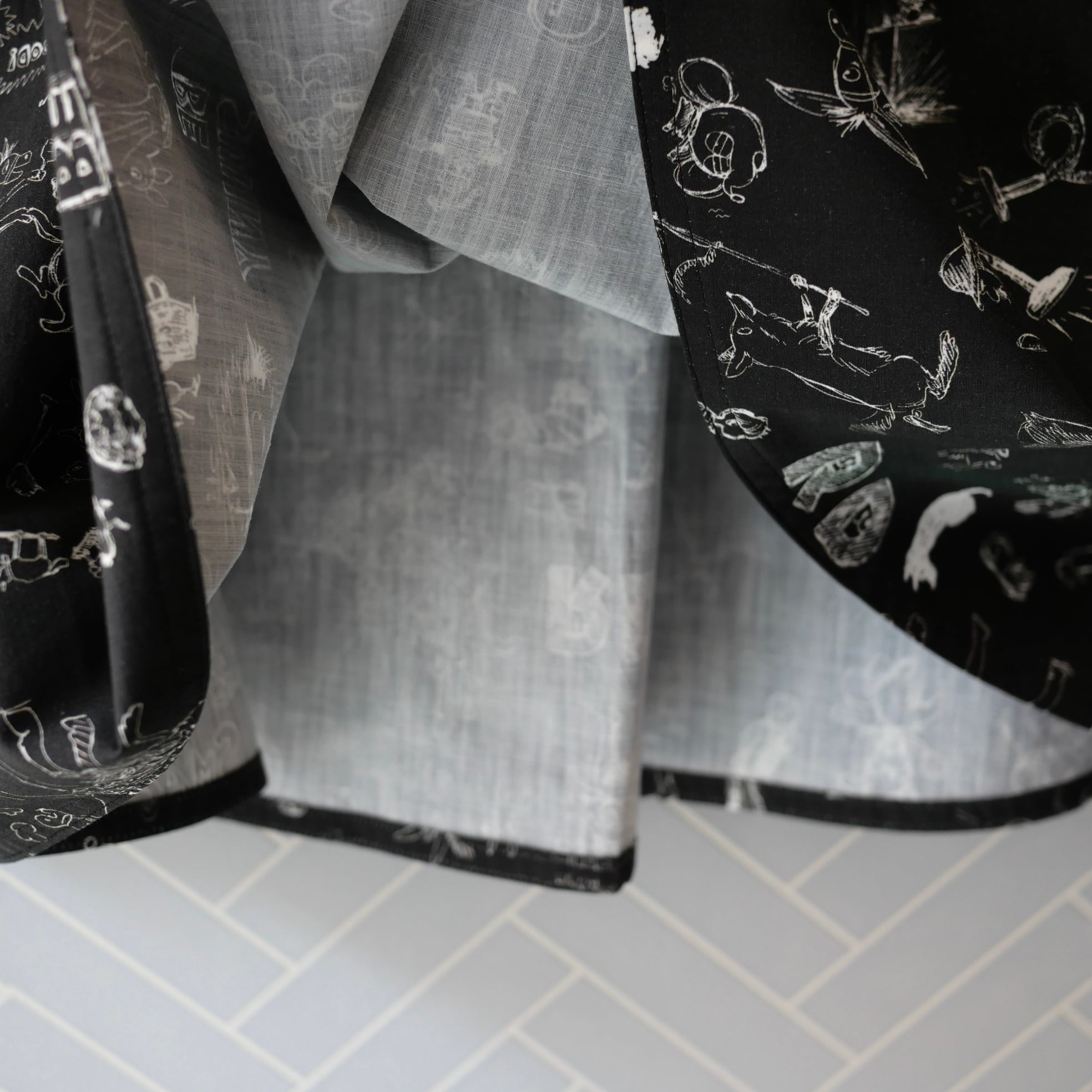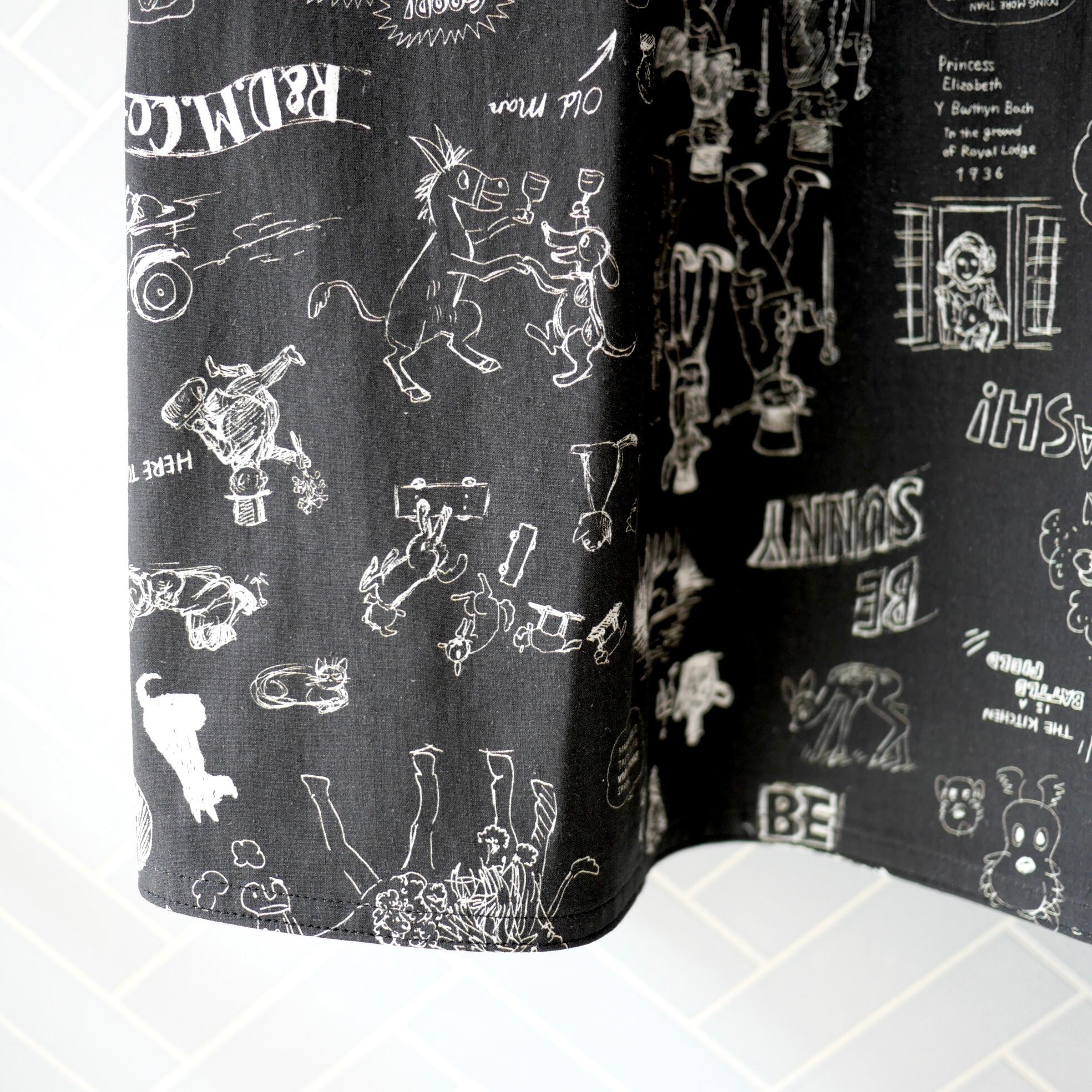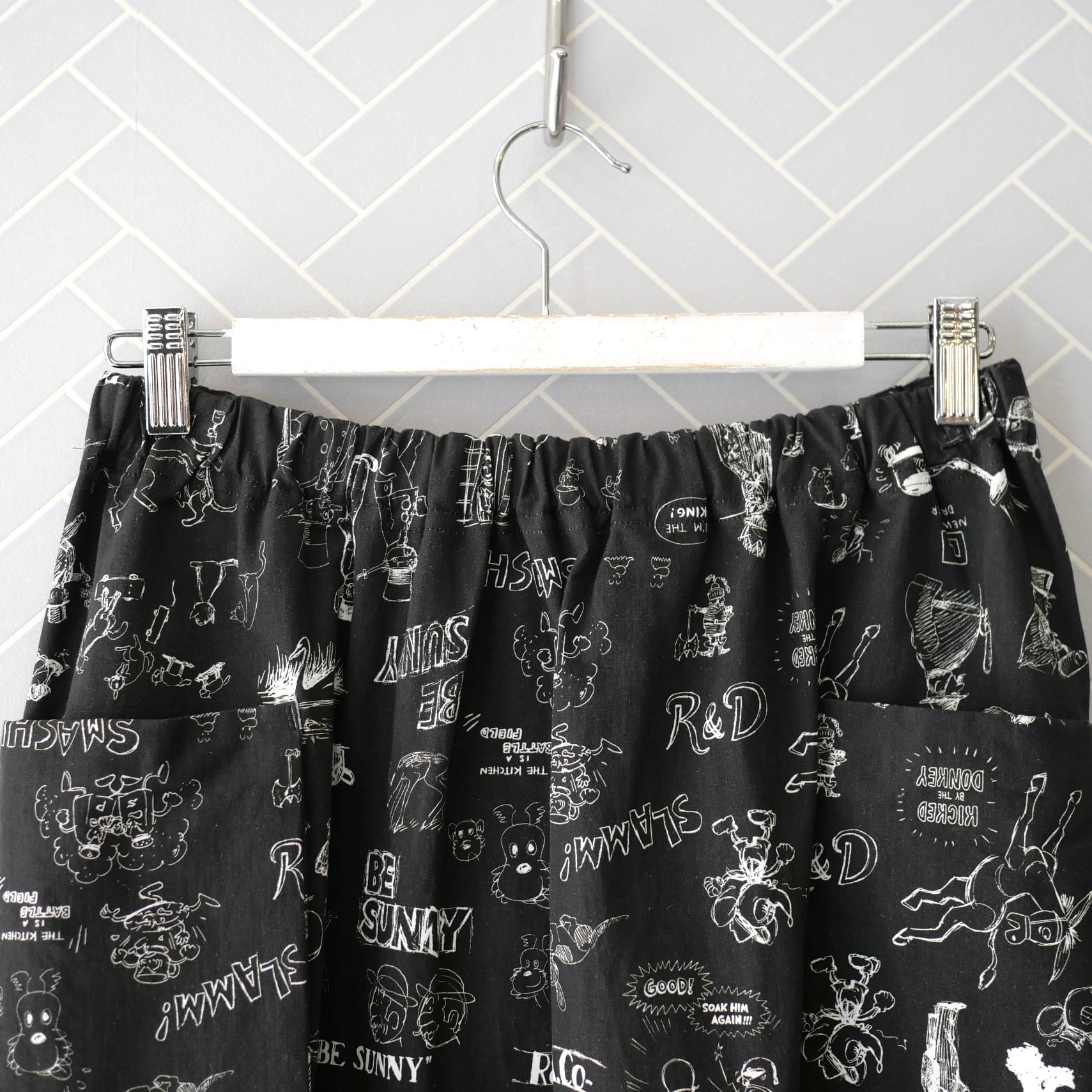 2026春の新柄「グラフィティー」。いろんな柄やキャラクターの落書きがそのまま柄の名前になっています。鉛筆画タッチの繊細な描写や、力強い陰影が高密度コットン生地に表現されています。その期の限定の生地を使ったポケットスカート。使用された生地の中に可愛い柄を存分に楽しむ事が出来、贅沢なボトムスに仕上がっています。おさえめなフレアと、サイドポケットの立体感の効果で、スッキリとしたスタイリングに仕上がります。