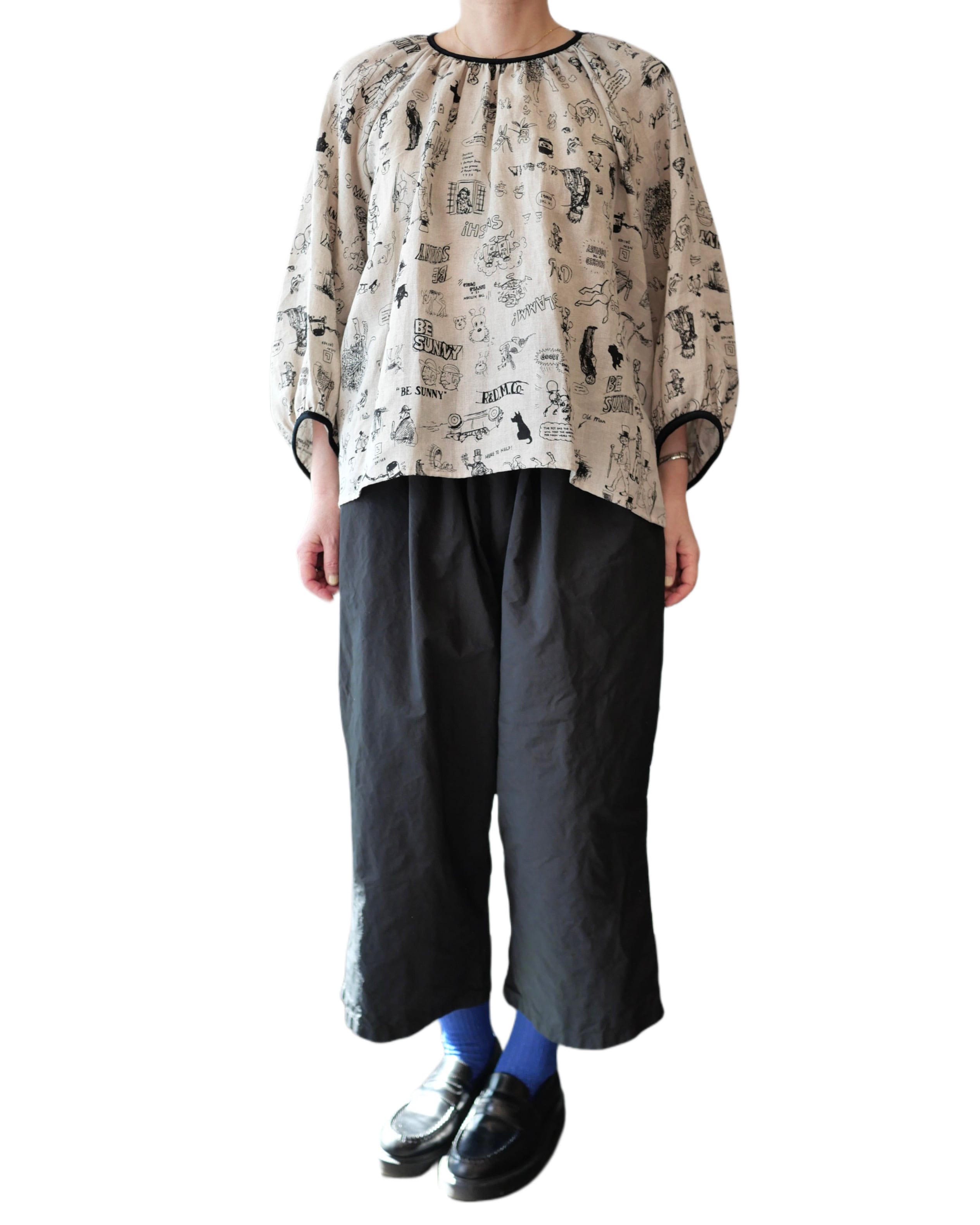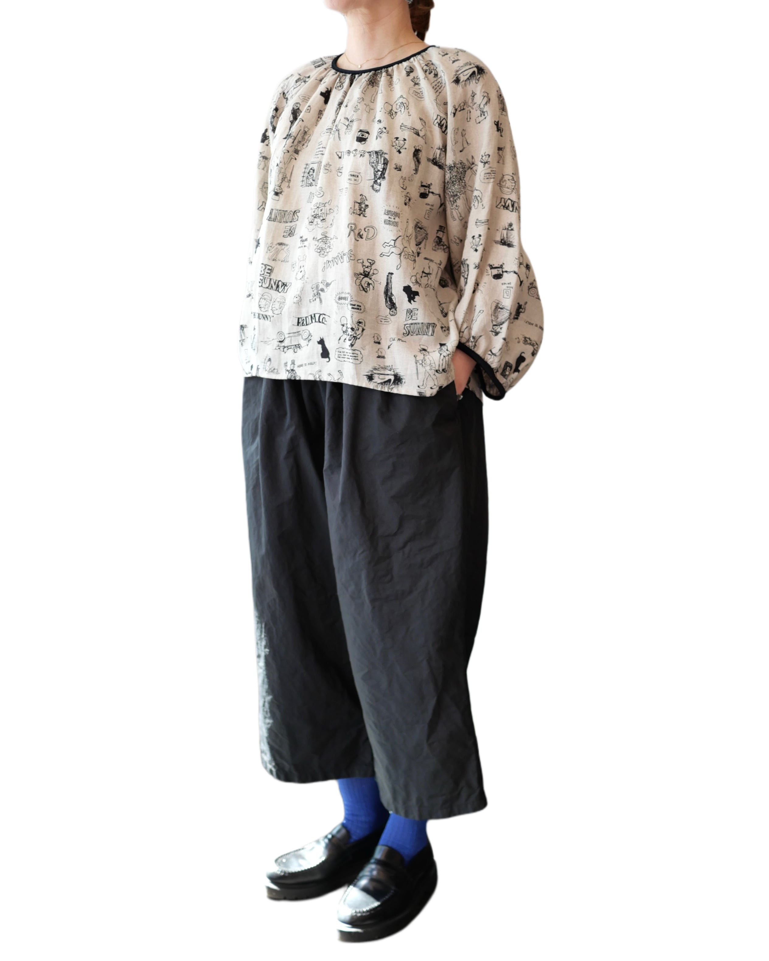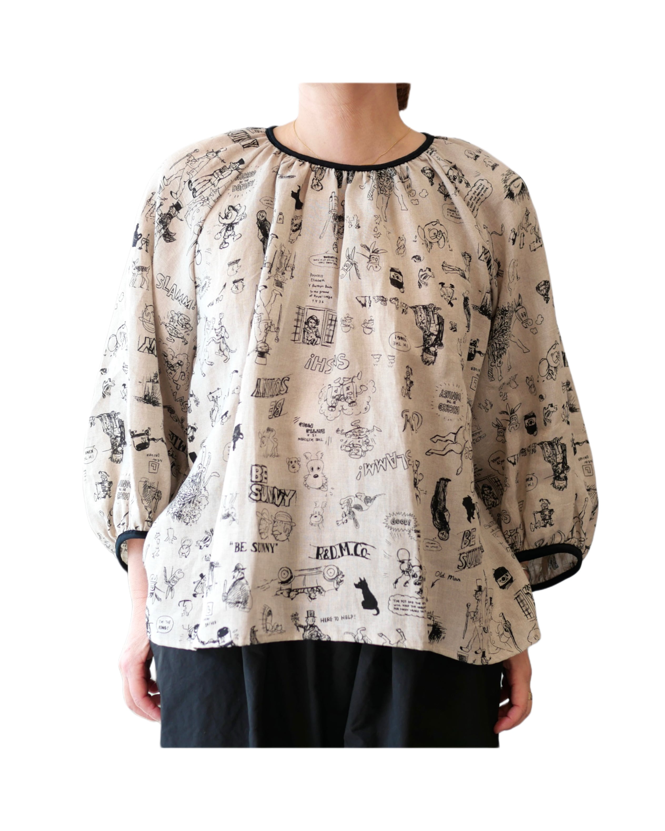 R&D.M.Co- no.7956a GRAFFITI GATHER SMOCK Flax