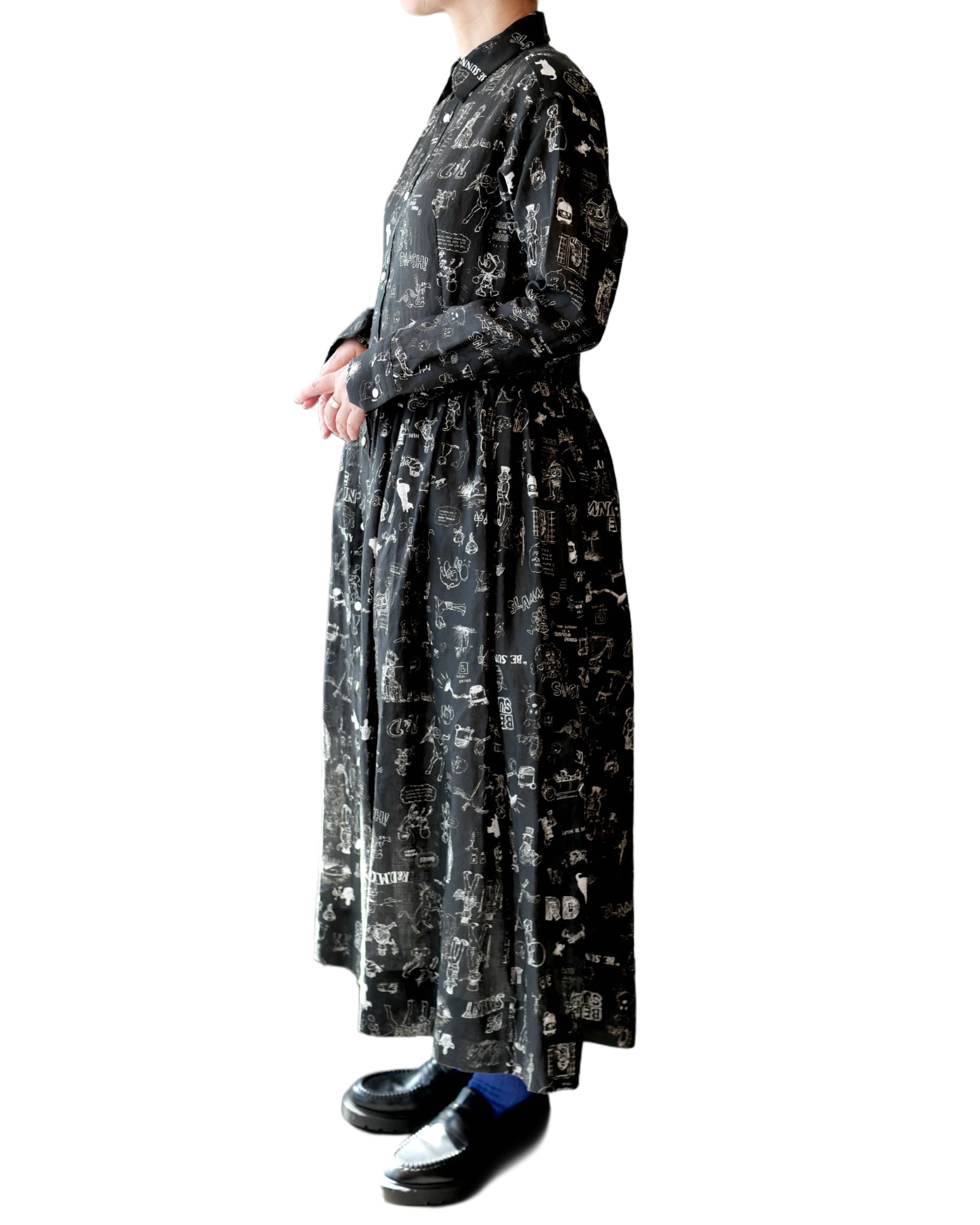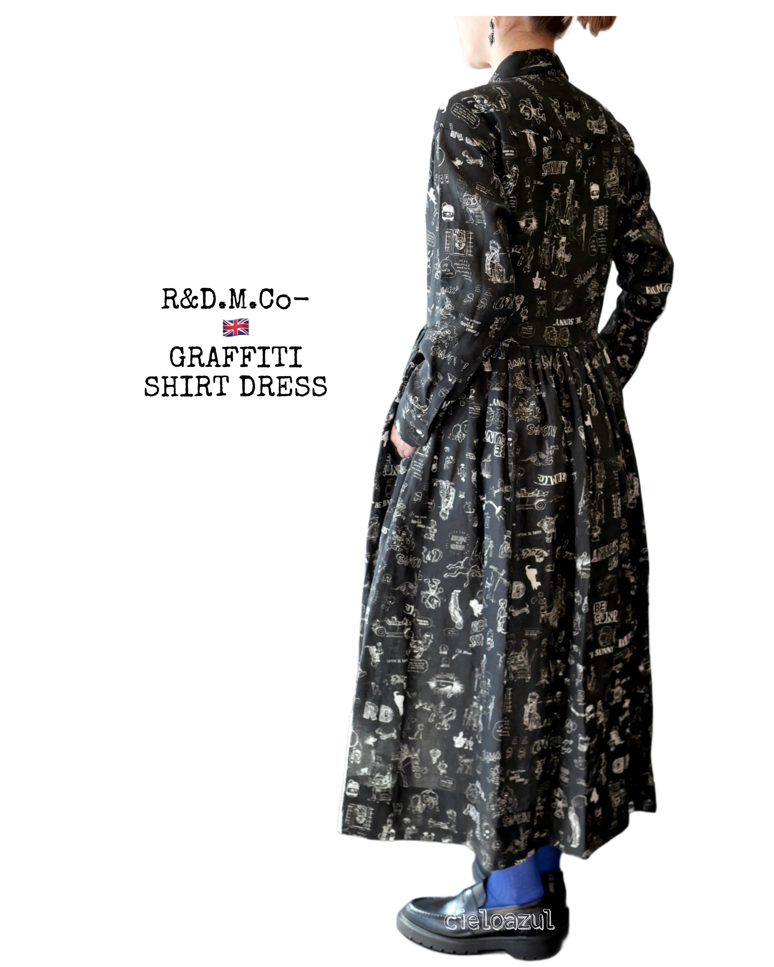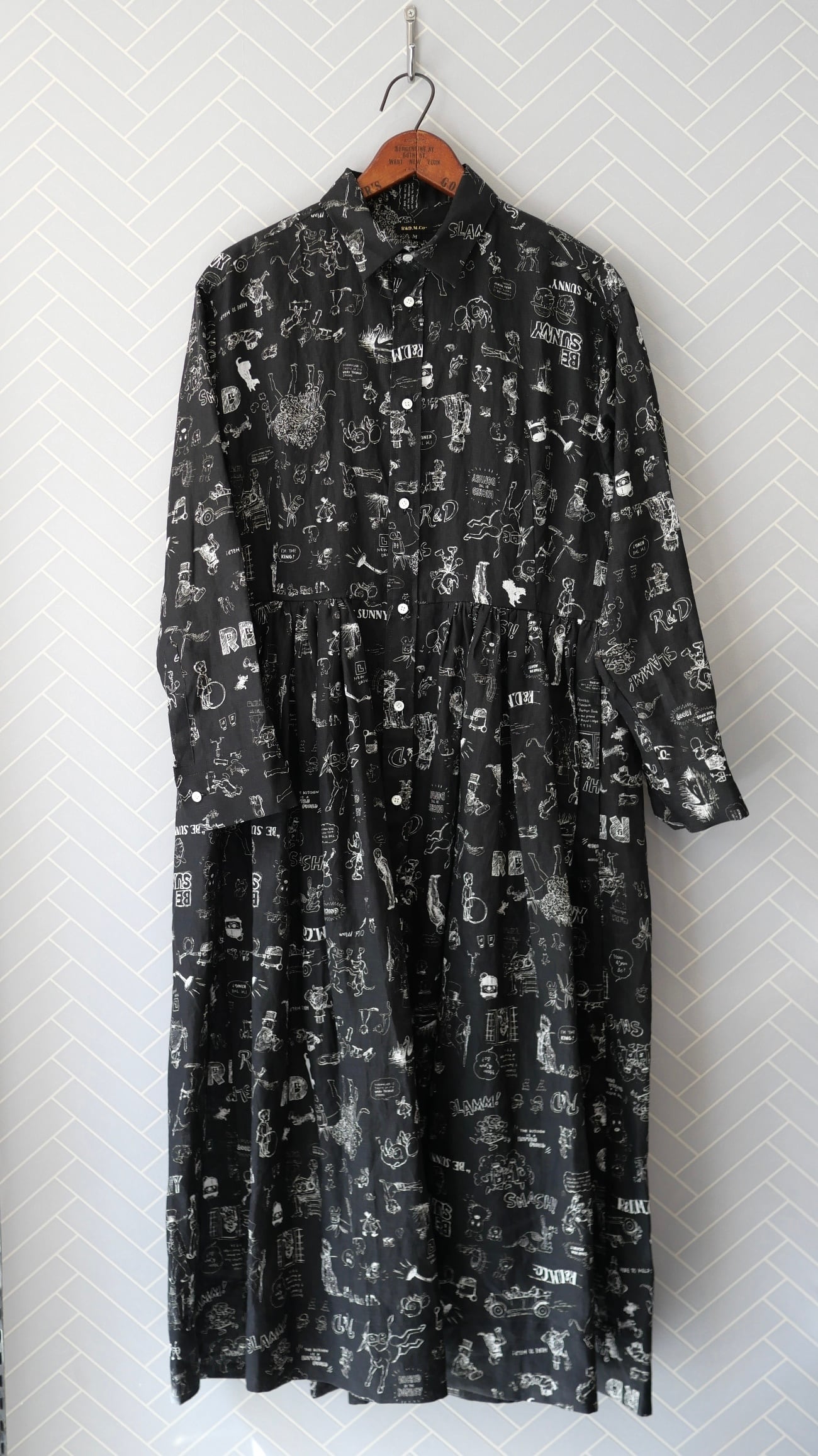 R&D.M.Co- no.7958b GRAFFITI SHIRT DRESS Black