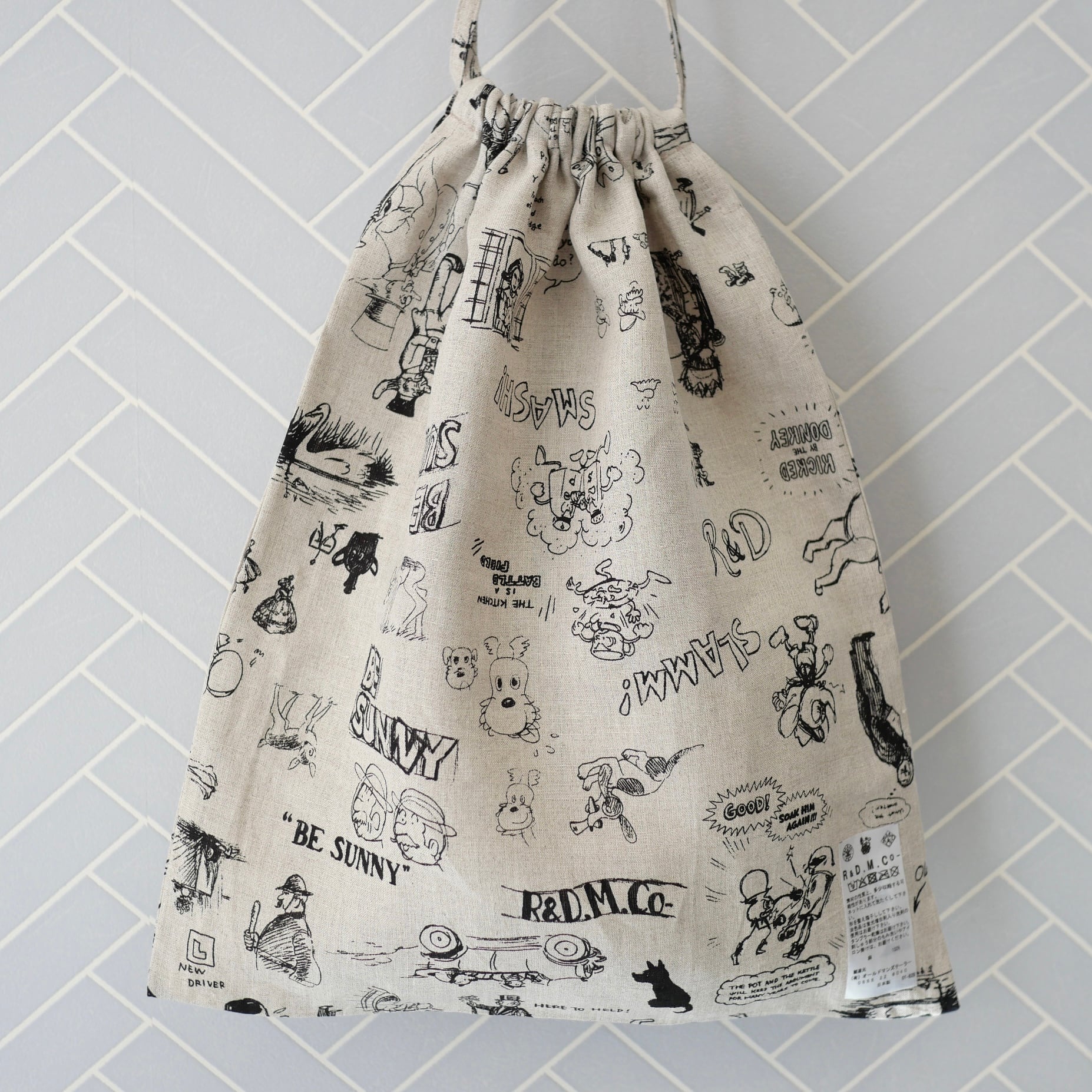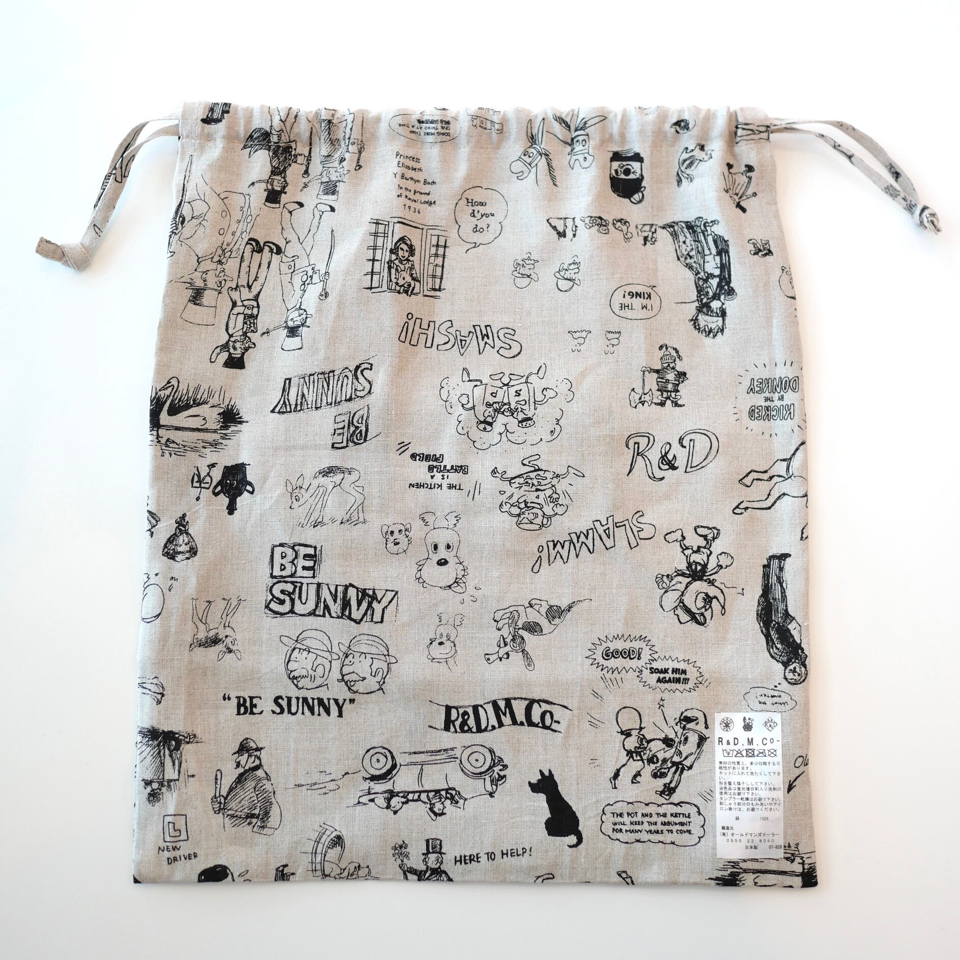 R&D.M.Co- no.7959a GRAFFITI DRAWSTRING BAG (L)Flax