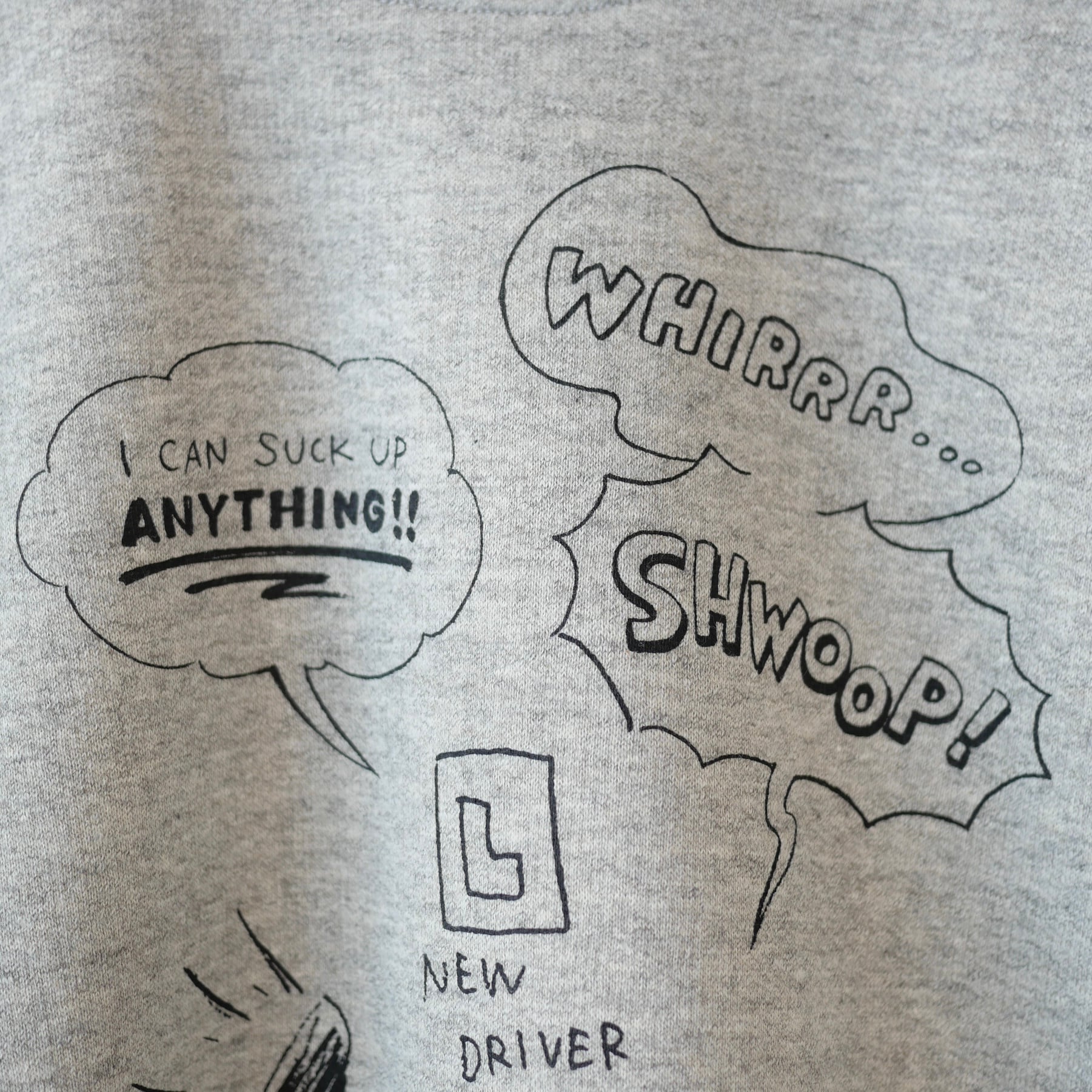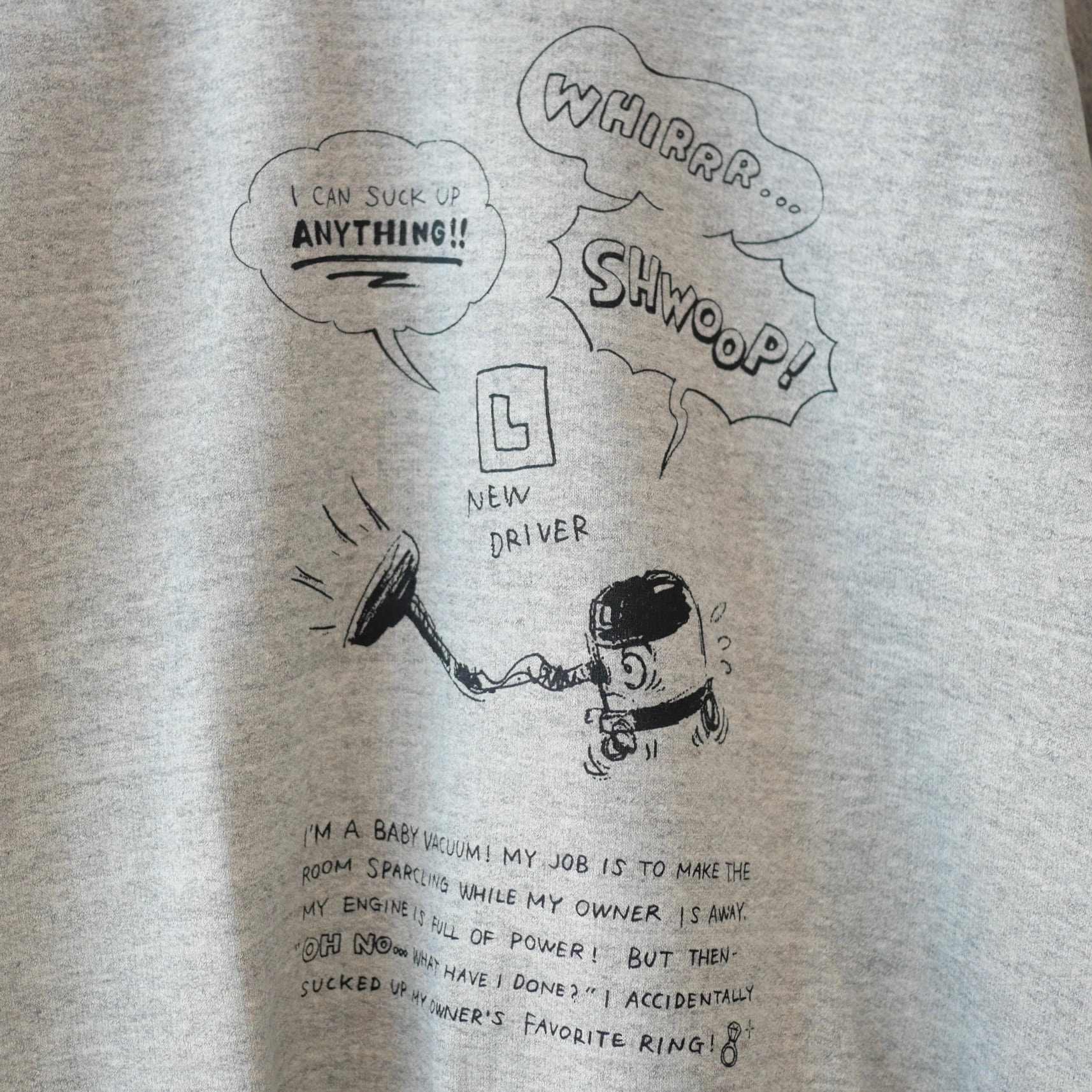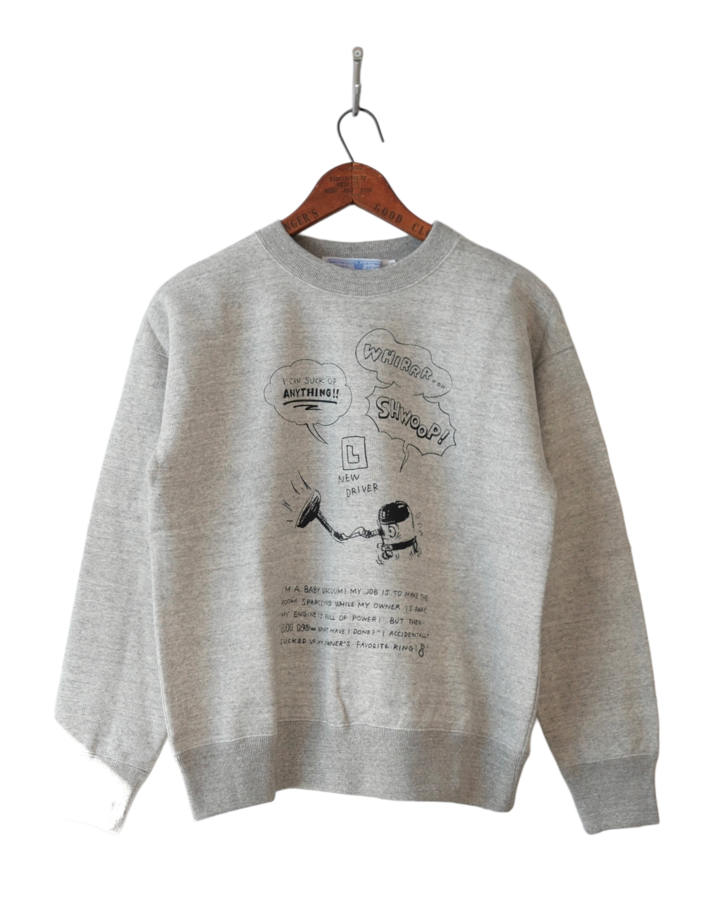R&D.M.Co-の新キャラクター「バキュームボーイ」のスウェットシャツ。アメコミのようなタッチの掃除機ボーイ柄が可愛いです。裏起毛の柔らかく暖かい素材がニットのような着心地です。
