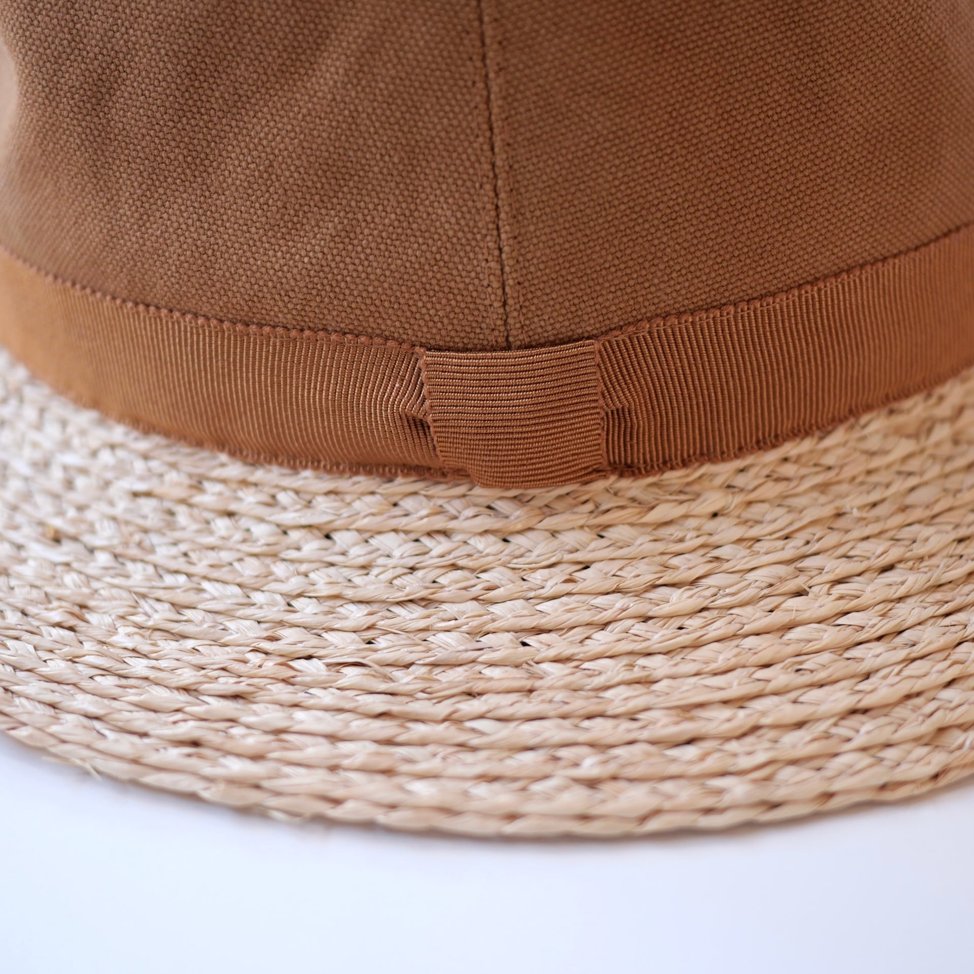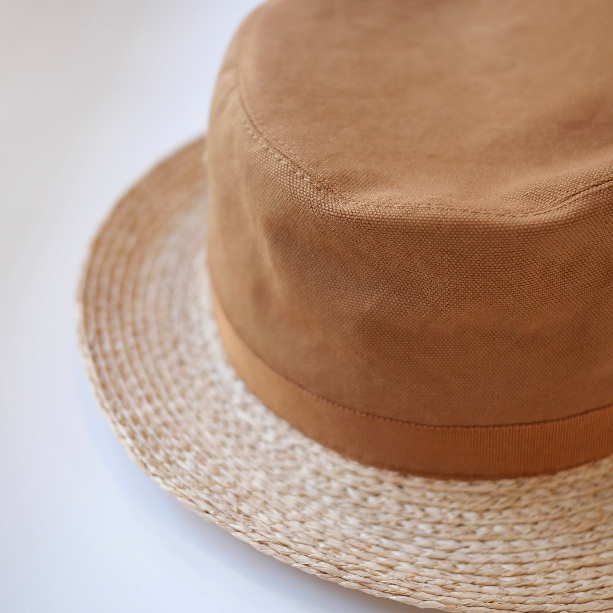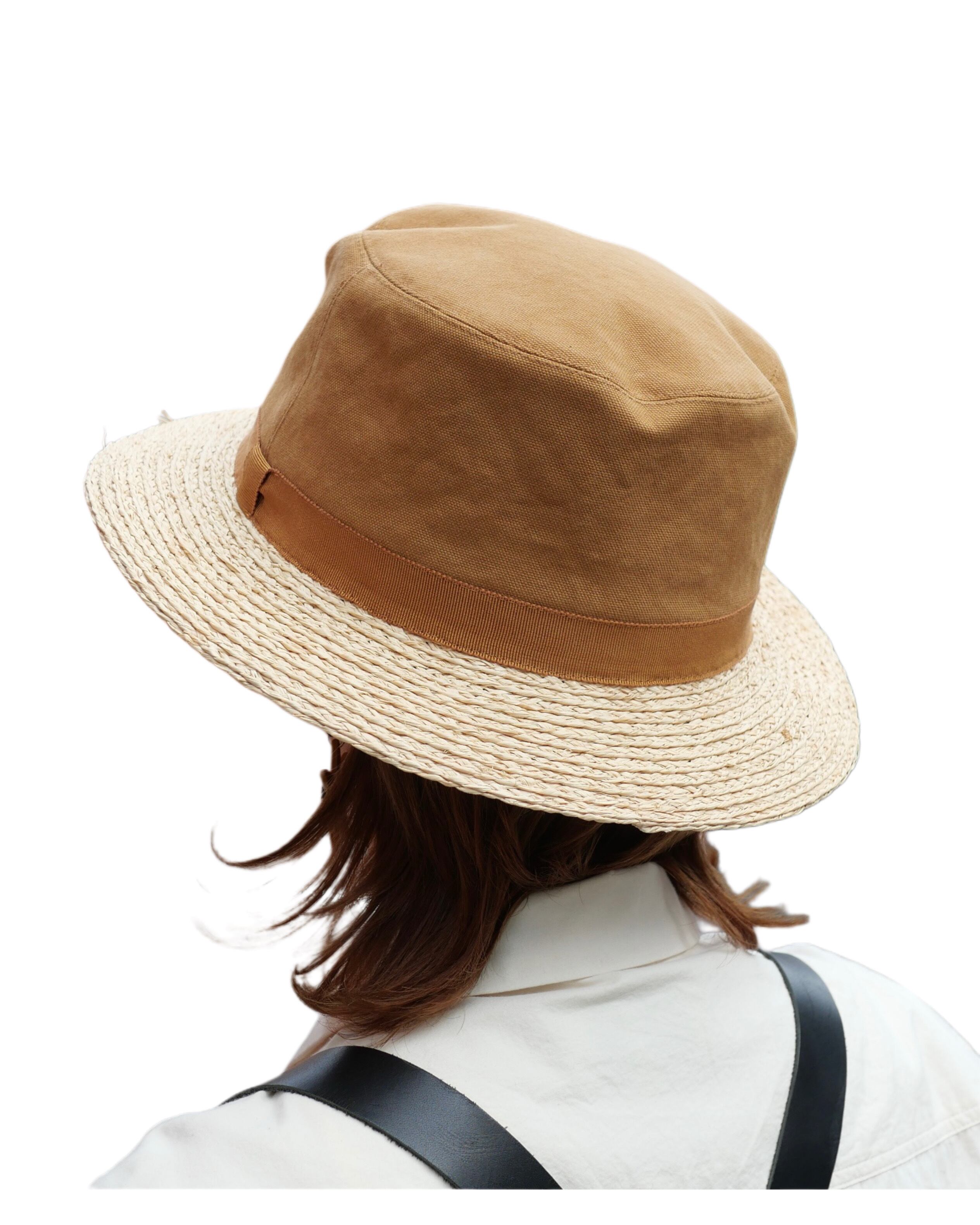 ラフィアとコットンキャンバス生地を使ったハットです。日本製の帽子ブランド「Sashiki 」の新作です。